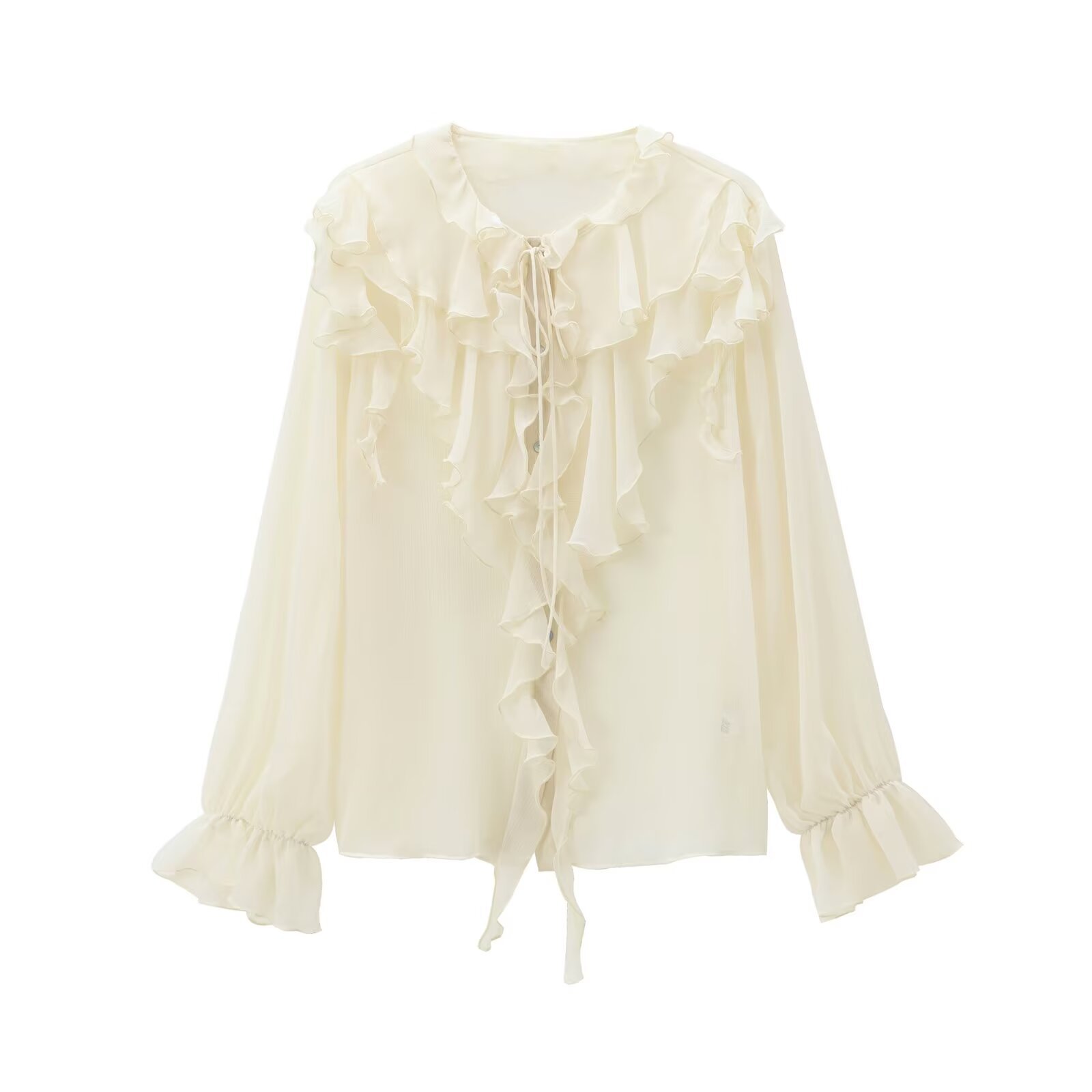 MSD8538RI 가을 새로운 유럽과 미국의 국경 여성 패션 활과 적층 장식 셔츠스토어 가기