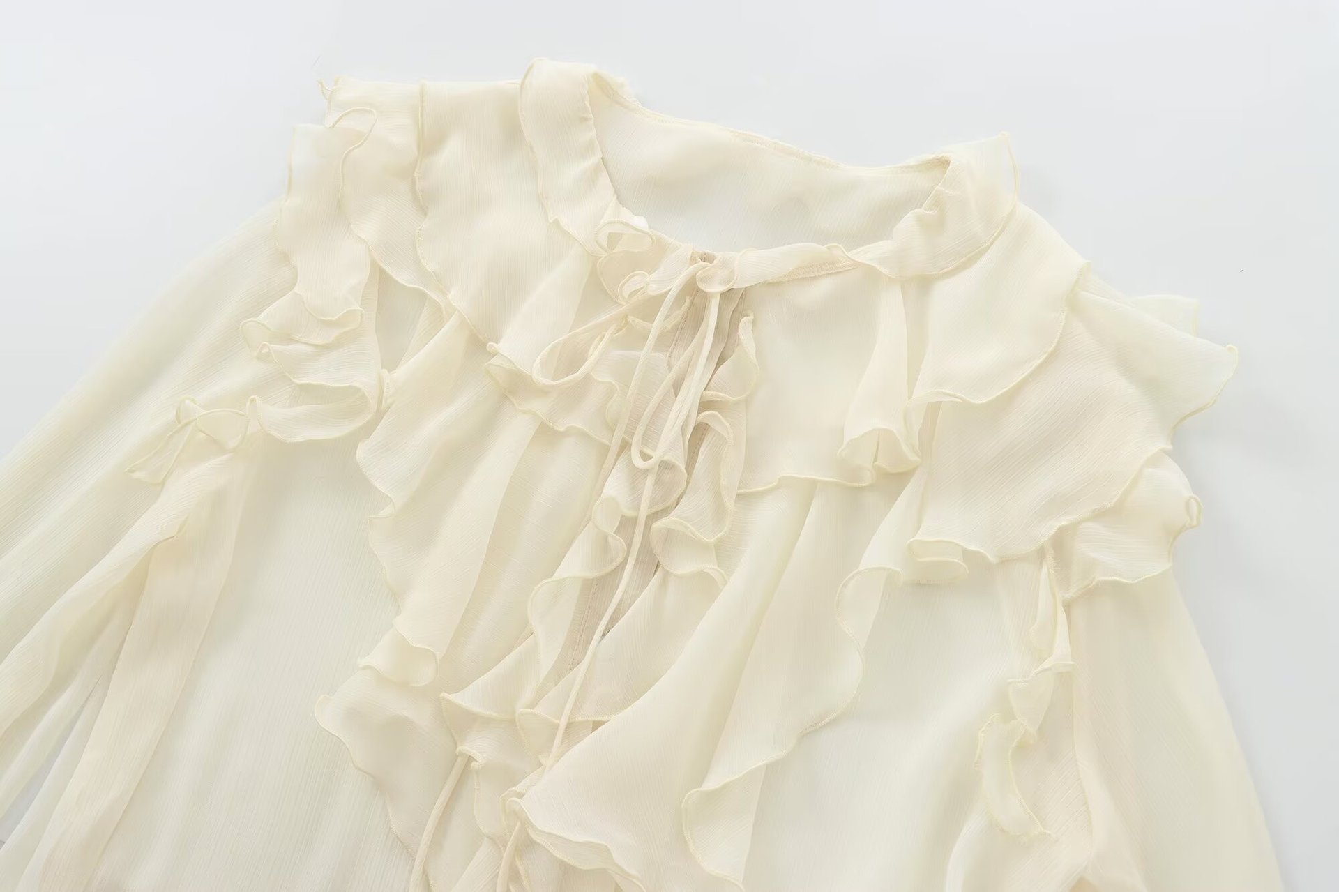MSD8538RI 가을 새로운 유럽과 미국의 국경 여성 패션 활과 적층 장식 셔츠
