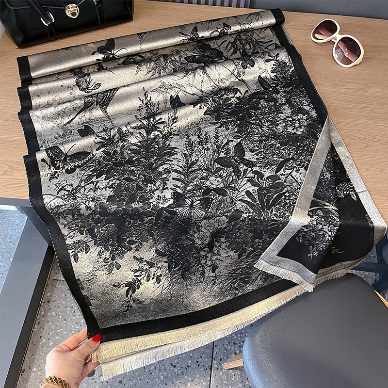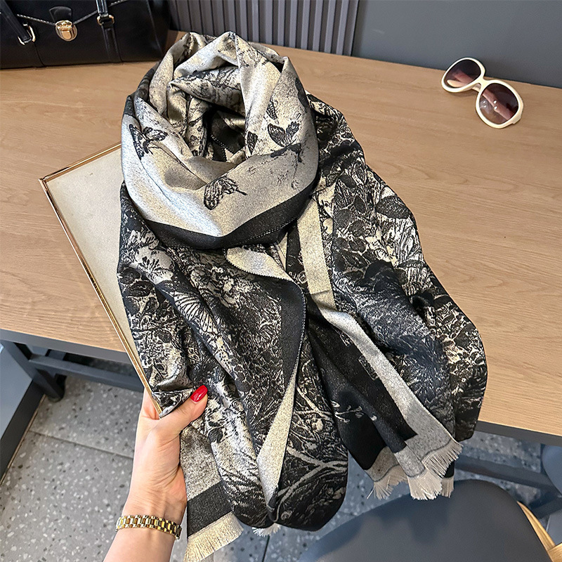 2024 한국식 새 나비 캐시미어 스카프 이중 목적 양면 에어컨 숄룸 오피스 텐셀 코튼 스카프스토어 가기