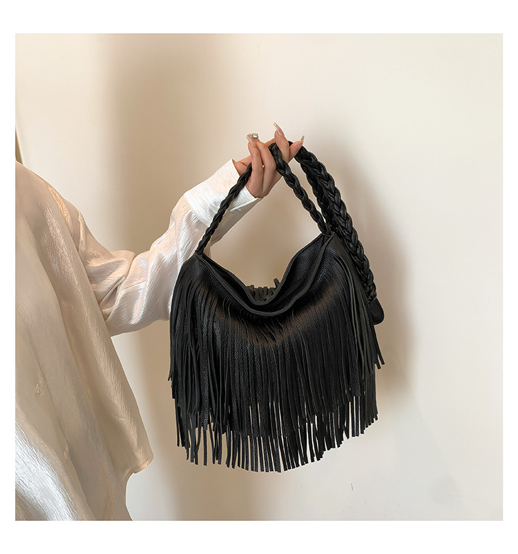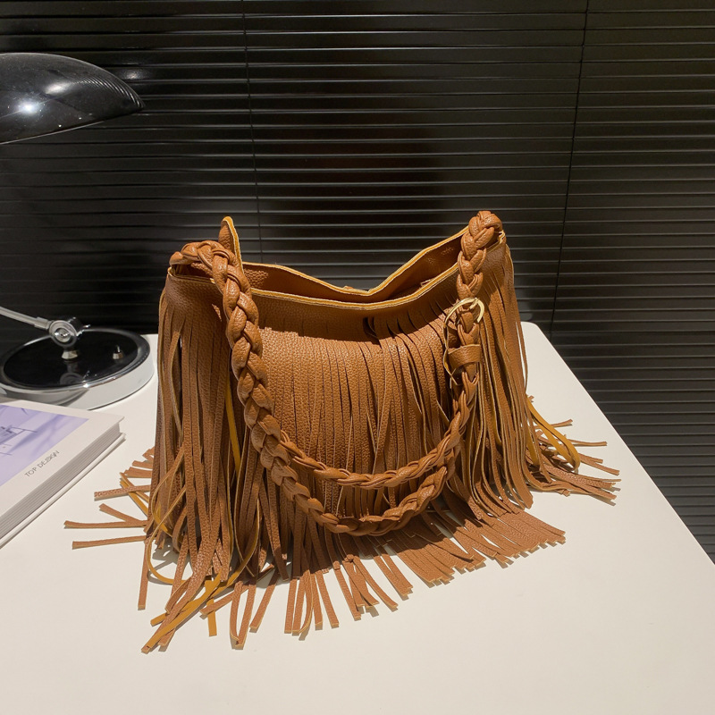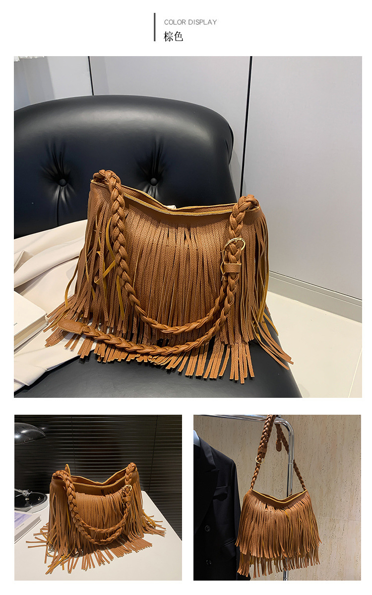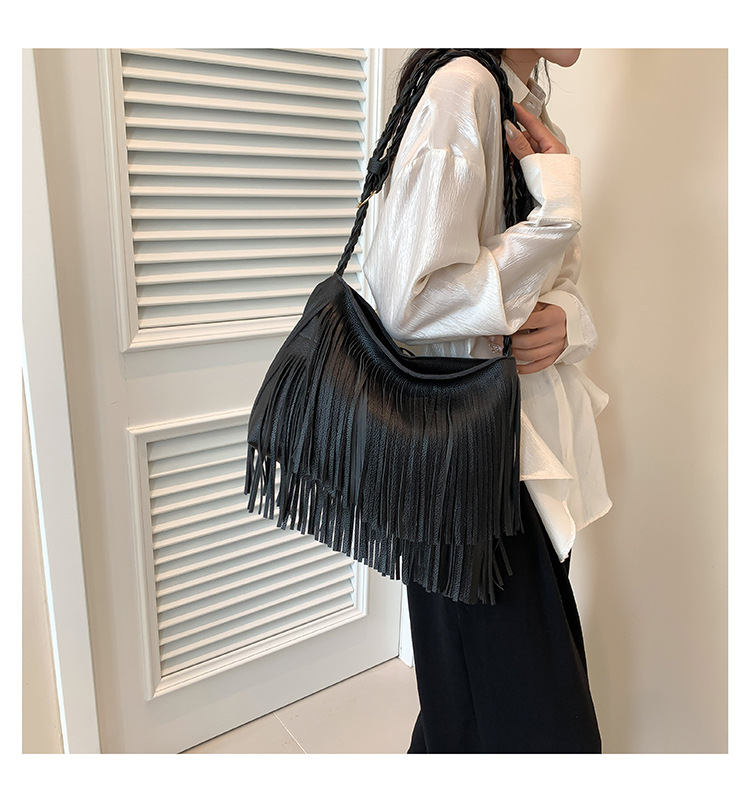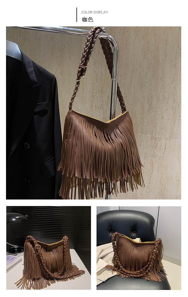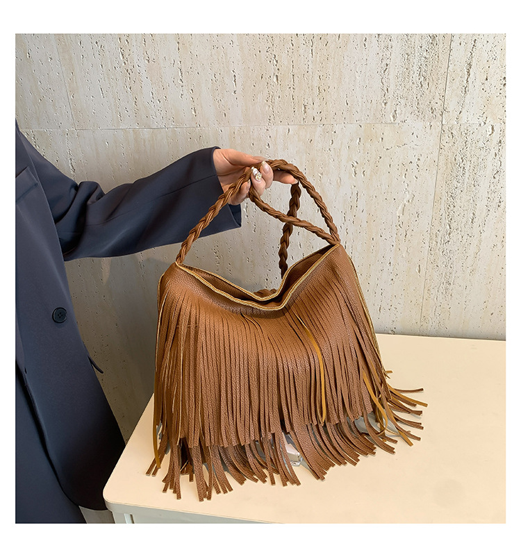 세련된 복고풍 우아한 술 솔리드 컬러 간단한 패션 여성 가방 대용량 캐주얼 통근 어깨 크로스 바디 핸드백스토어 가기