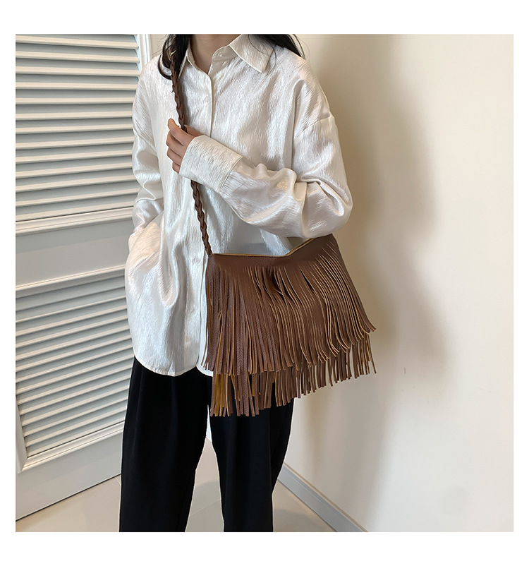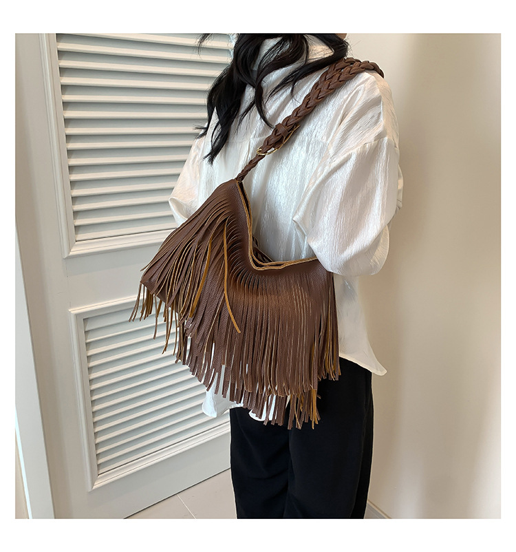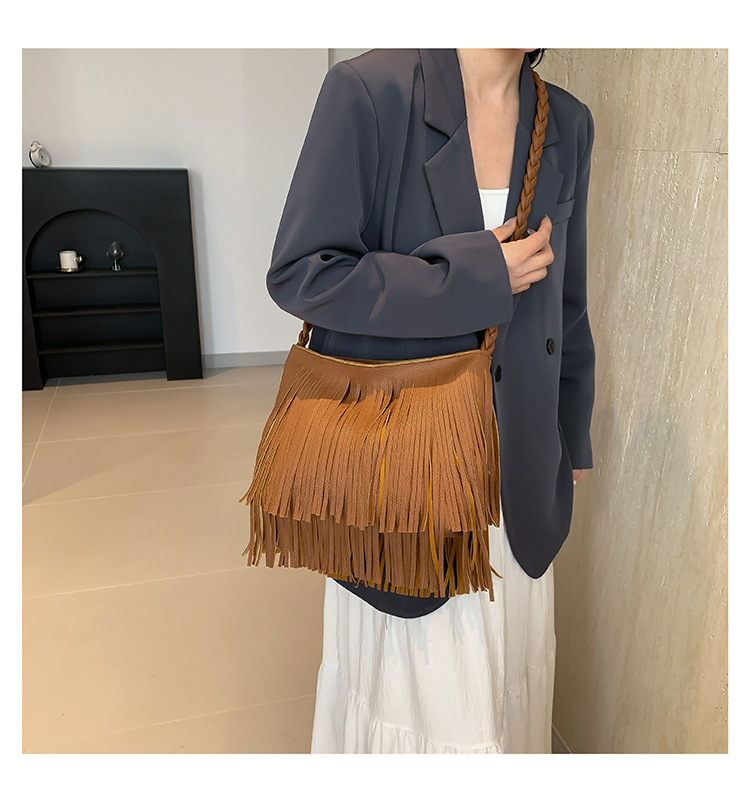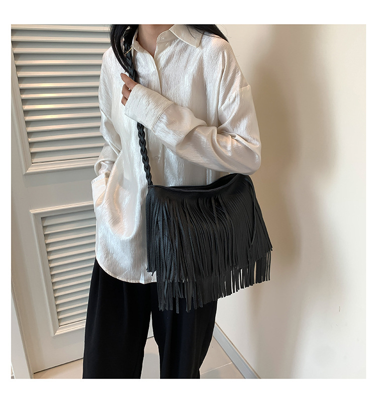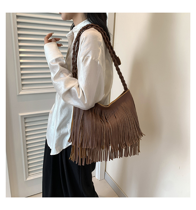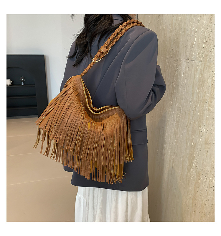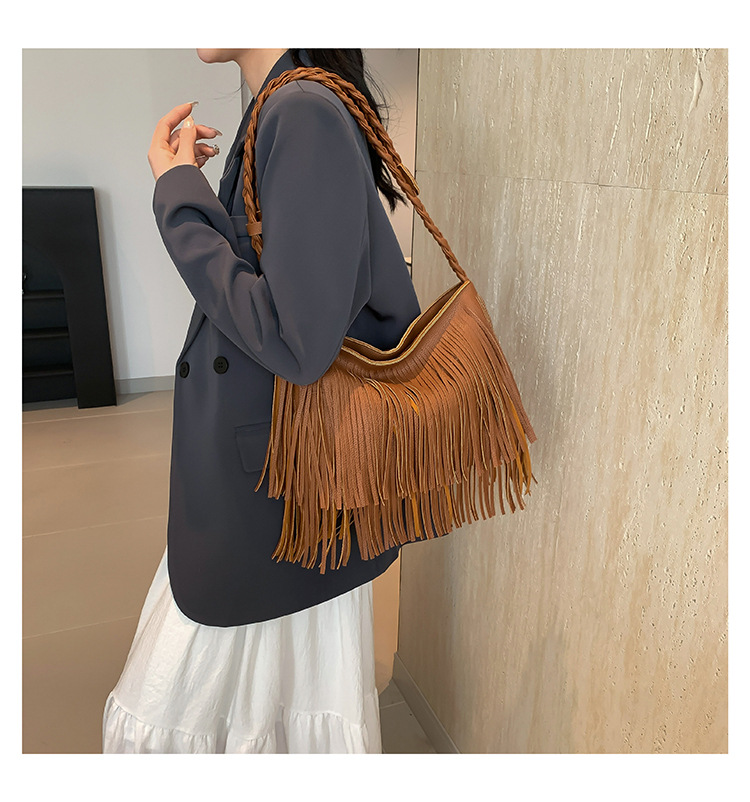 세련된 복고풍 우아한 술 솔리드 컬러 간단한 패션 여성 가방 대용량 캐주얼 통근 어깨 크로스 바디 핸드백스토어 가기