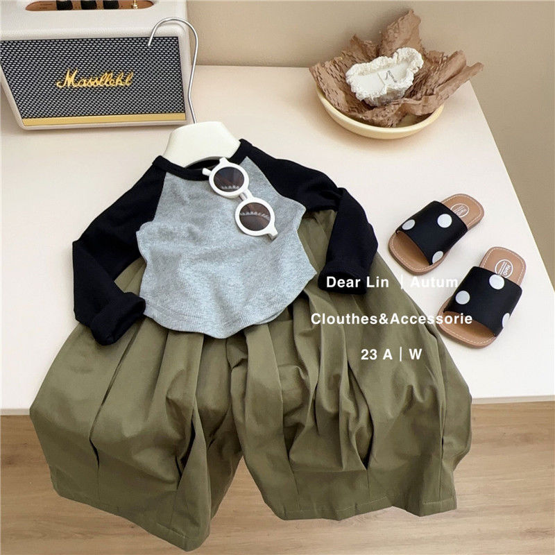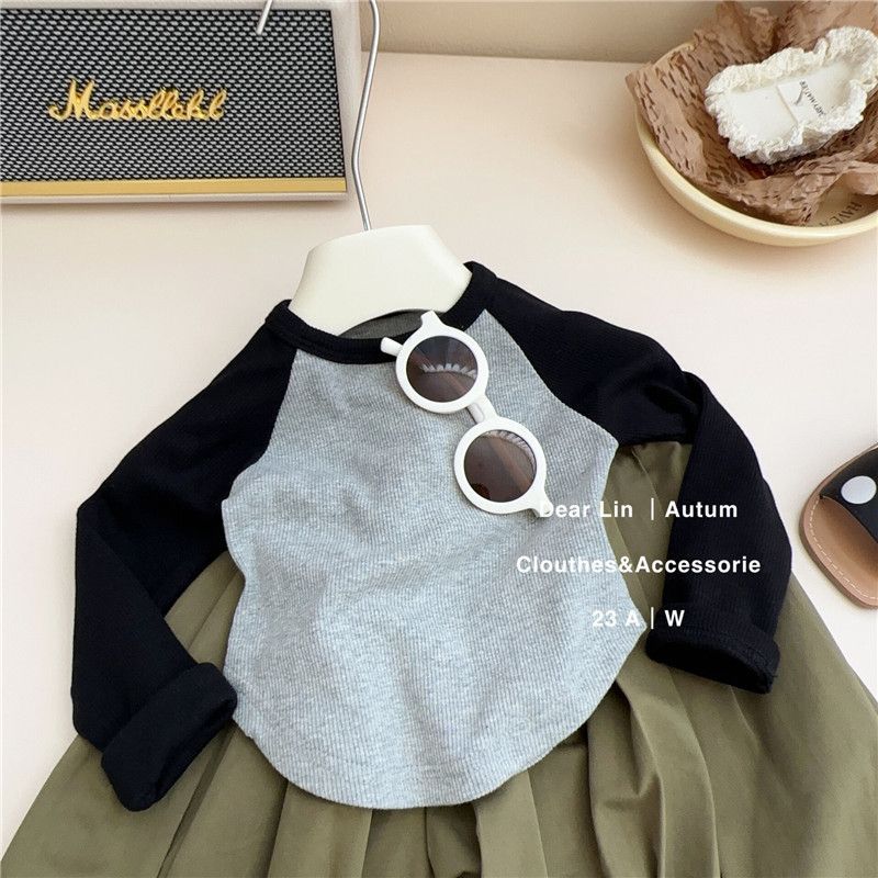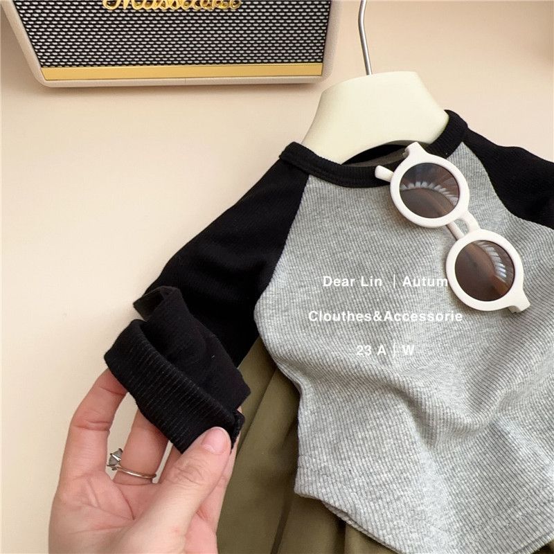 한국 스타일 라글란 소매 티셔츠 짧은 긴 소매 봄 새로운 한국 스타일 소녀 아기의 스타일리시 올매치 기본 Z010스토어 가기