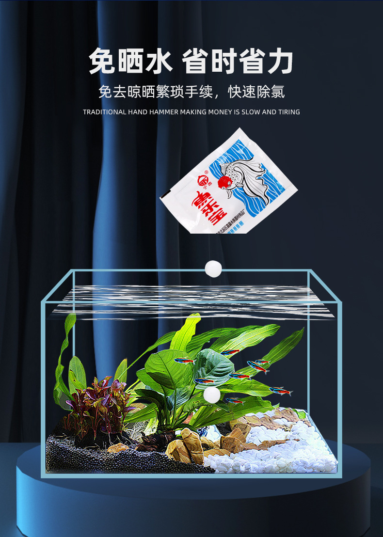 생선 탱크 물 정화제 Yulebao 염소 제거 소다 물고기 문화 수돗물 태양이없는 갇힌 물 염소 정화 제