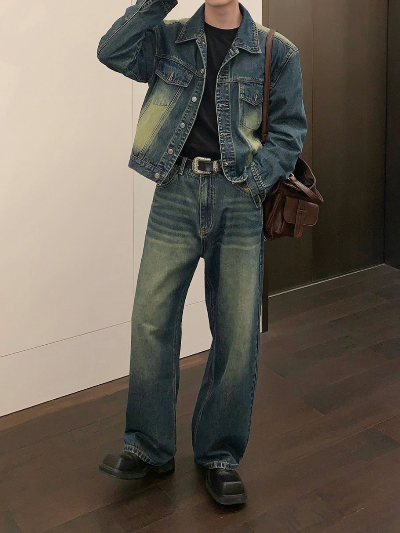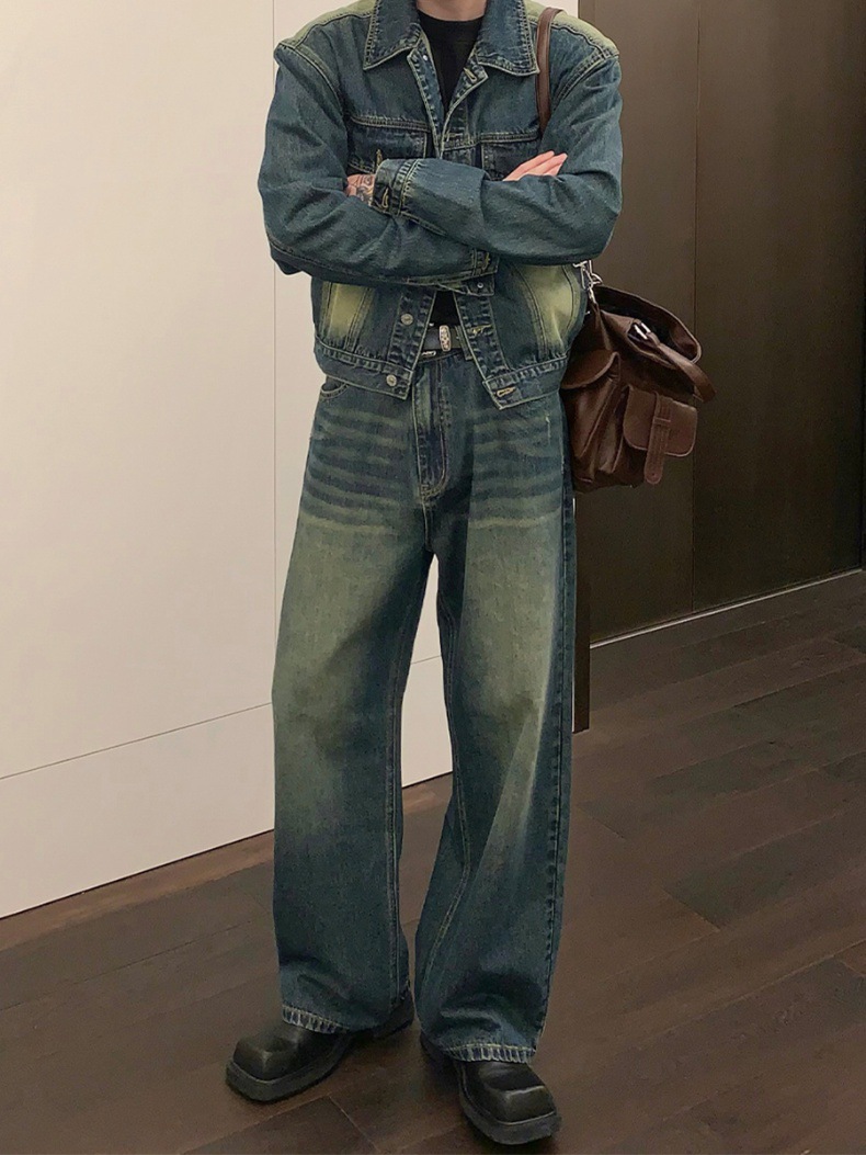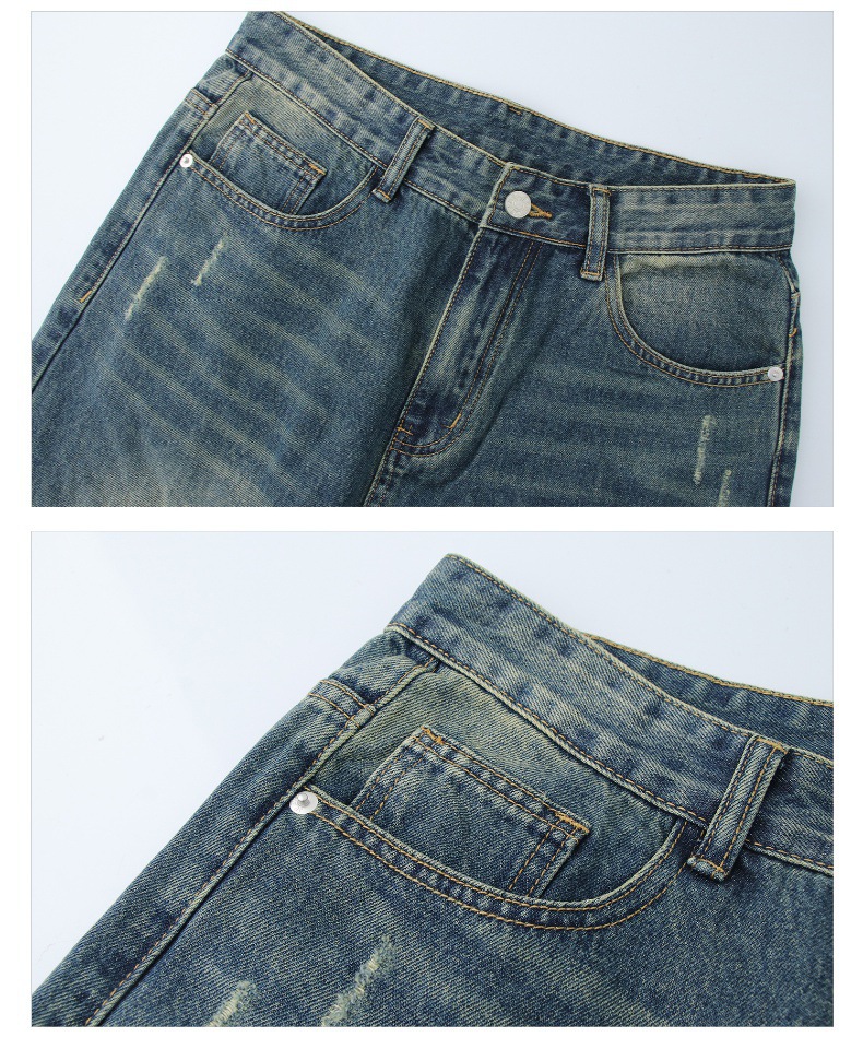 틈새 고민 디자인 감각 스트레이트 청바지 남성용 느슨한 캐주얼 올 매치 하이 스트리트 빈티지 팬츠 남성용 트렌디 한 바지스토어 가기