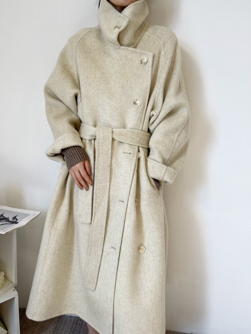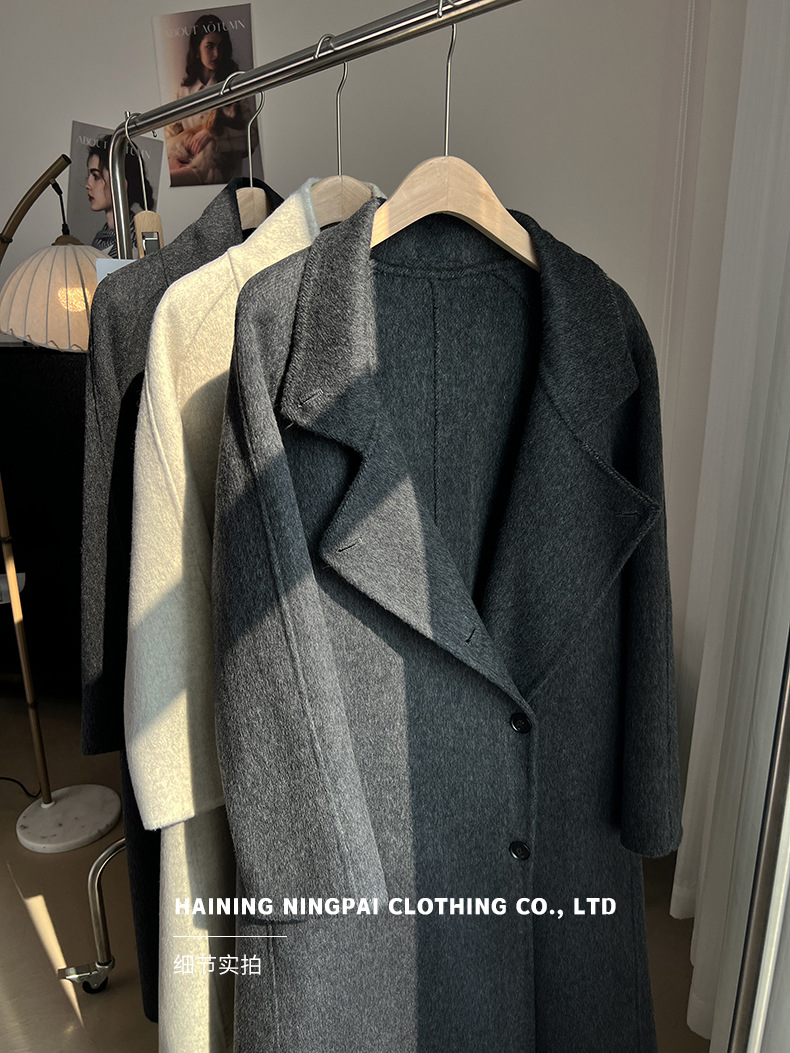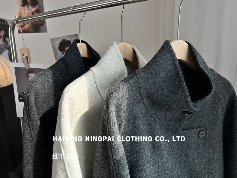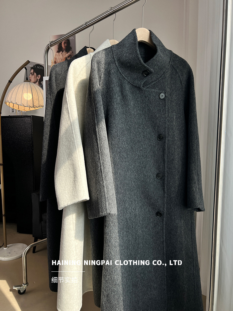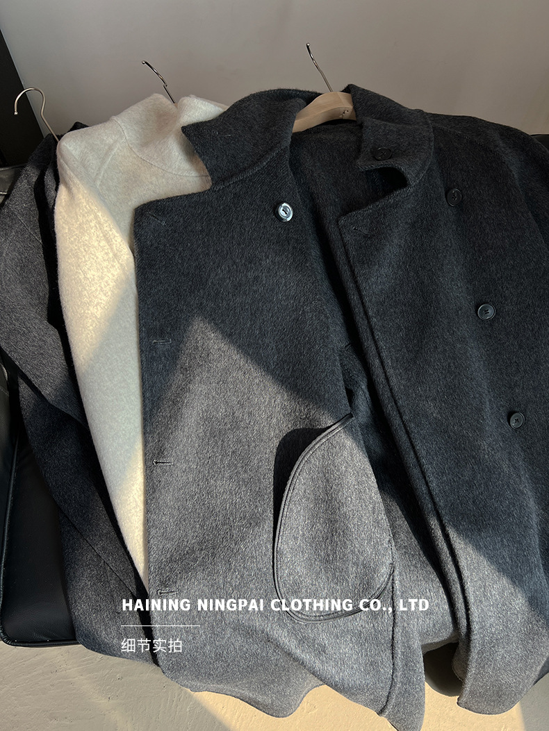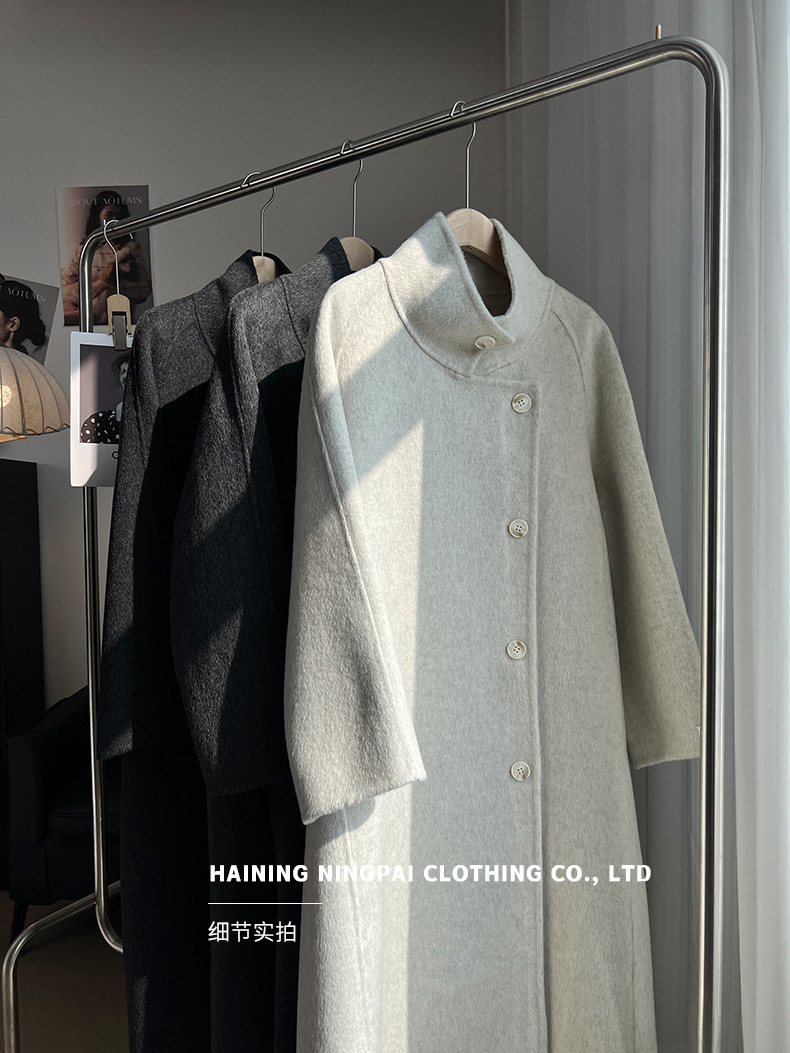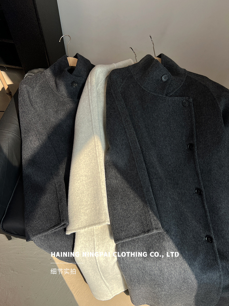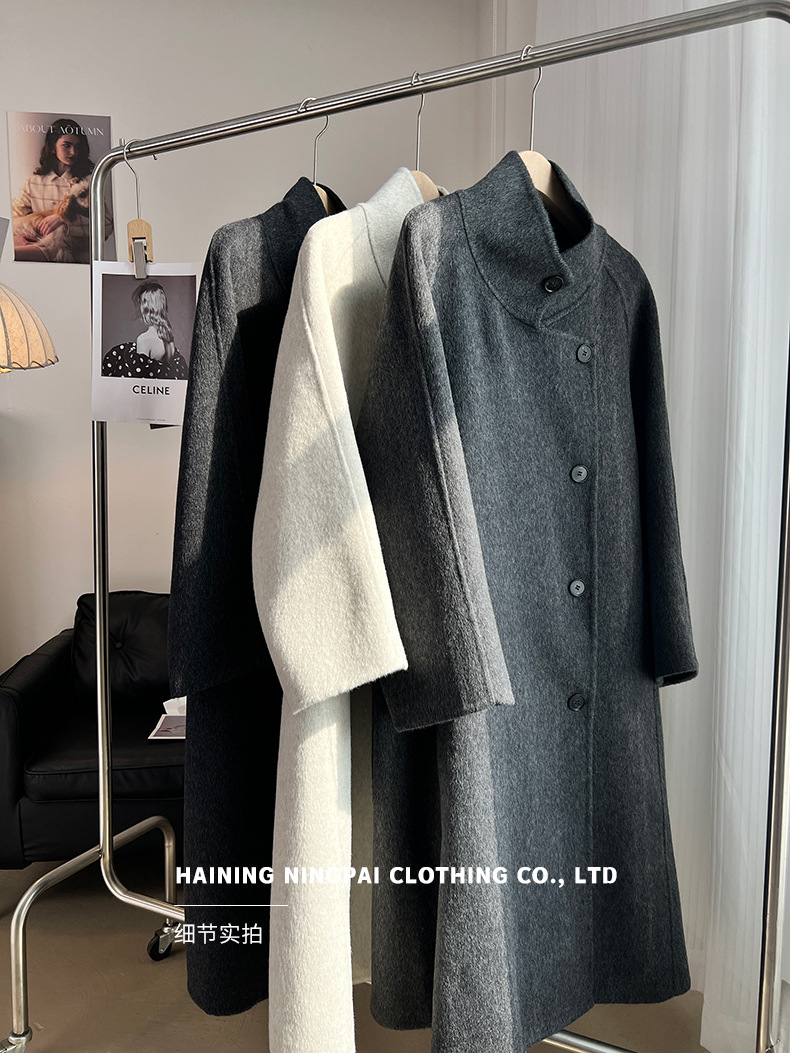 비교할 수 없는 2025 가을 신상 양면 벨벳 코트 여성용 중간 길이 스탠드 칼라 모직 더블 브레스트 코트