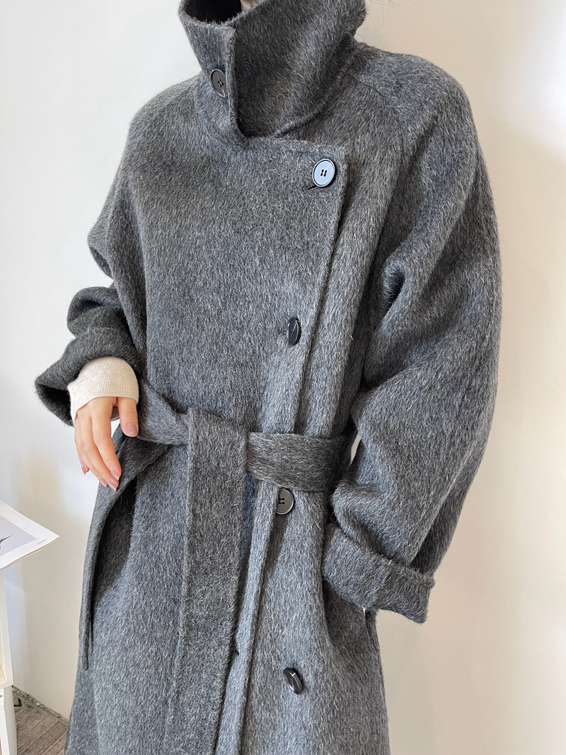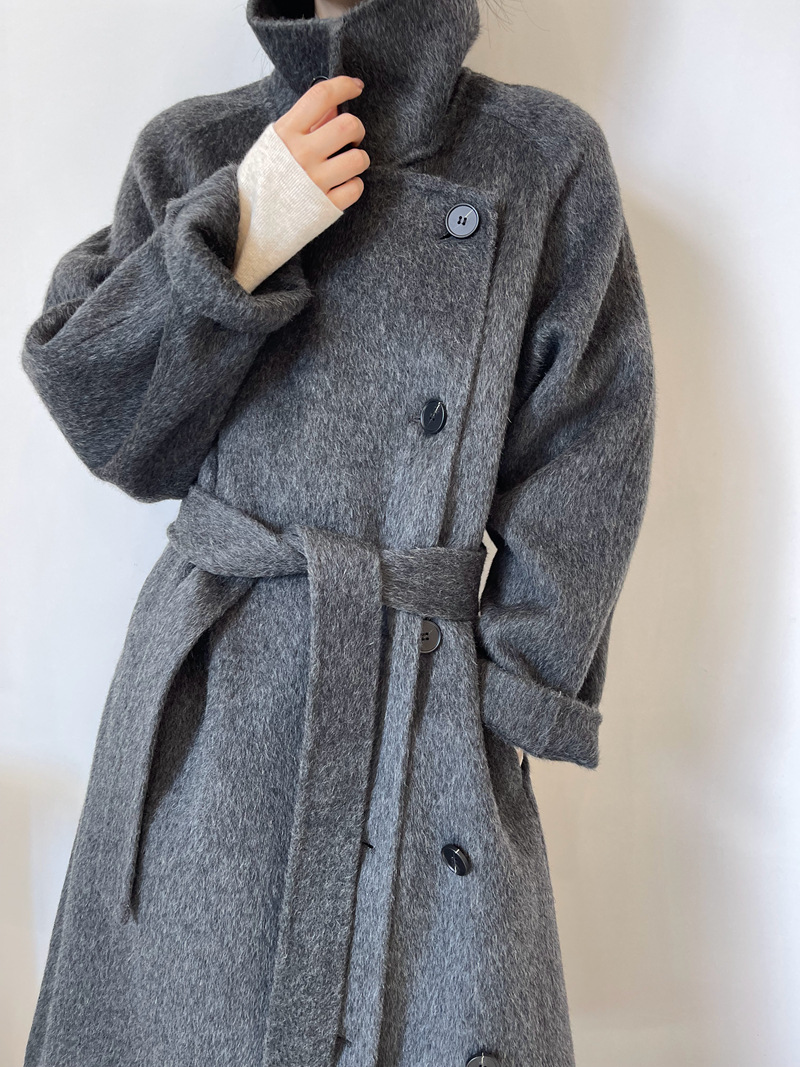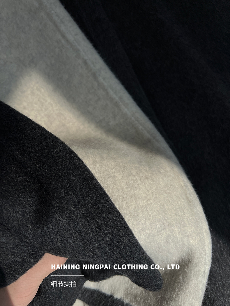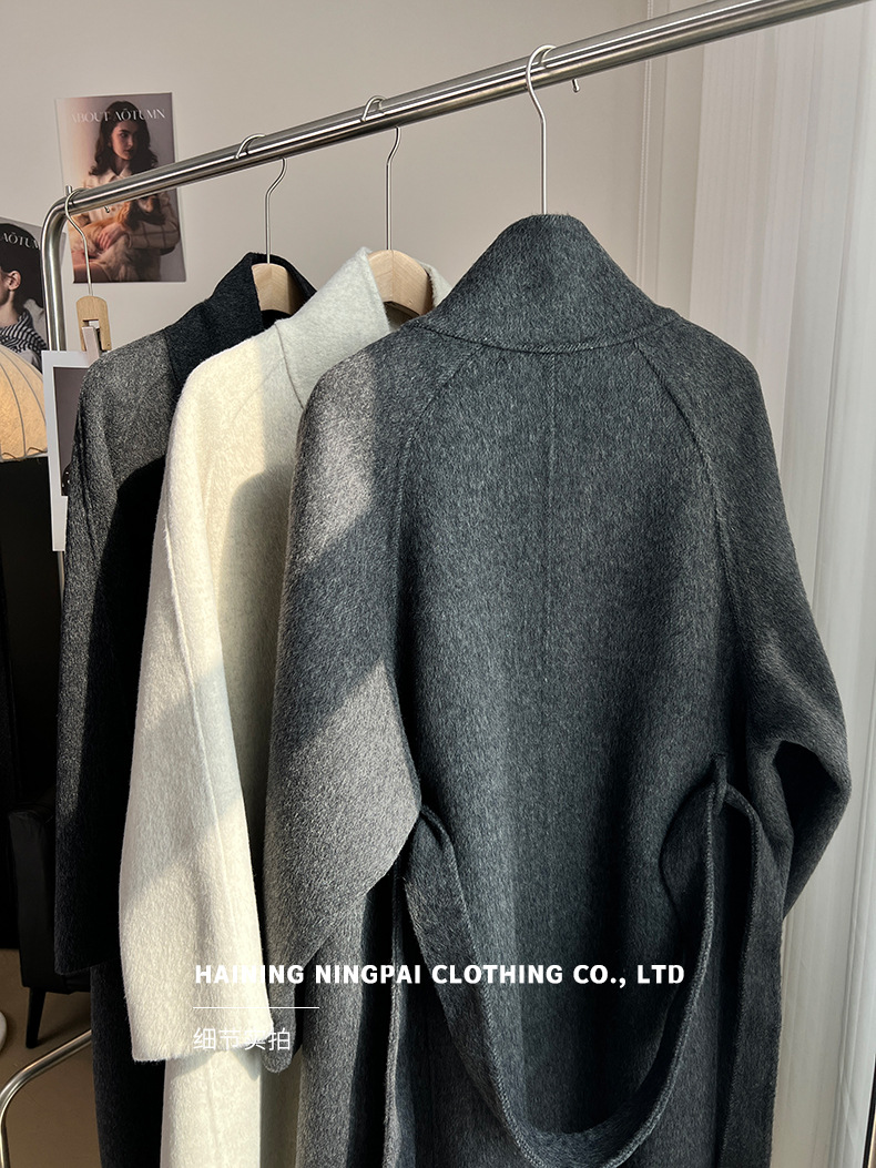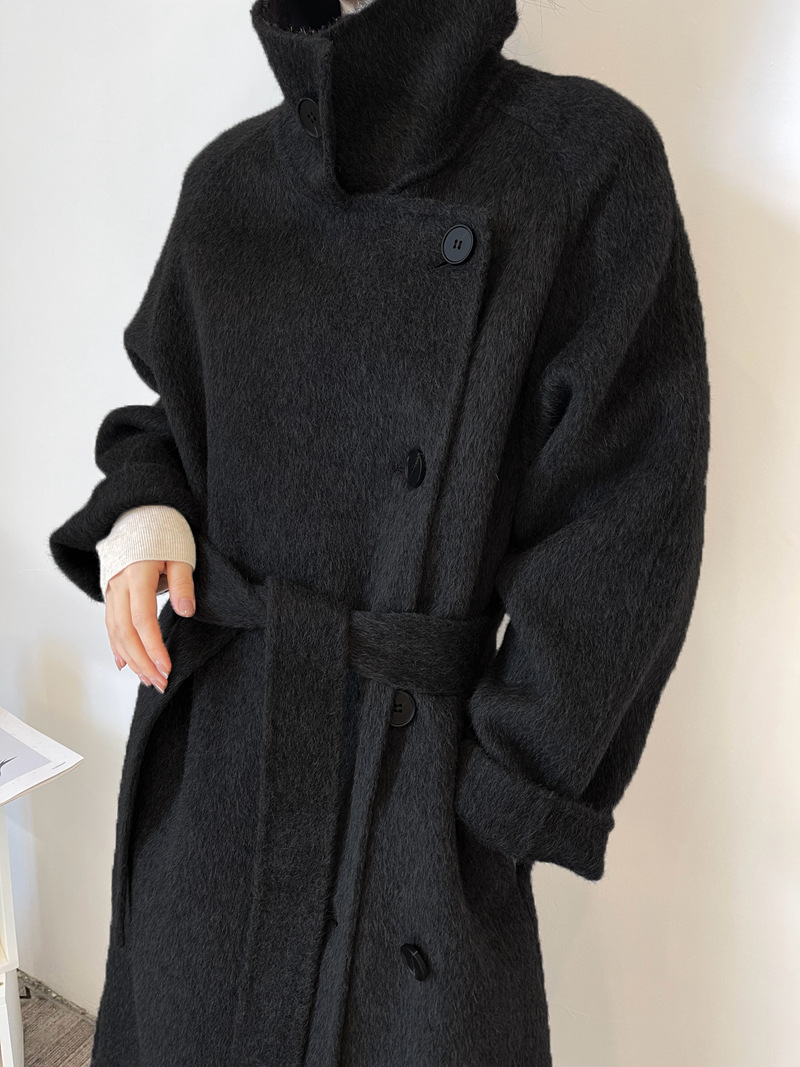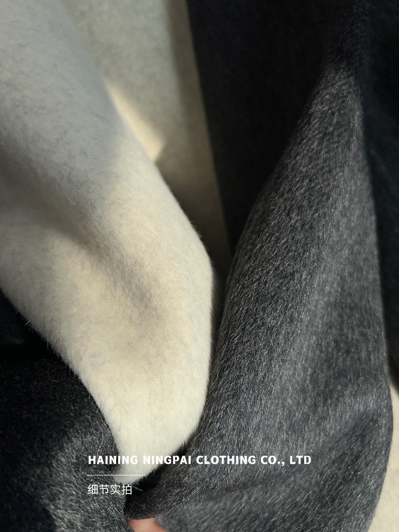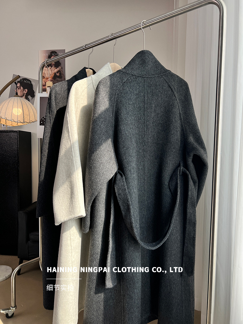 비교할 수 없는 2025 가을 신상 양면 벨벳 코트 여성용 중간 길이 스탠드 칼라 모직 더블 브레스트 코트