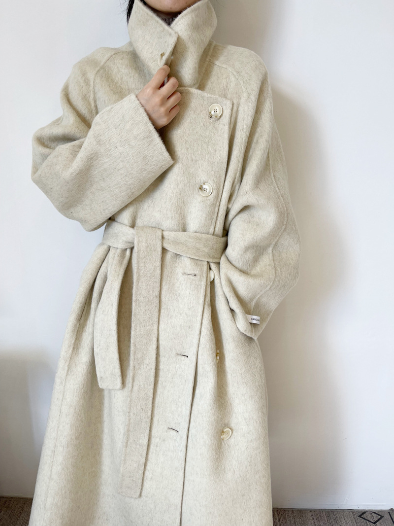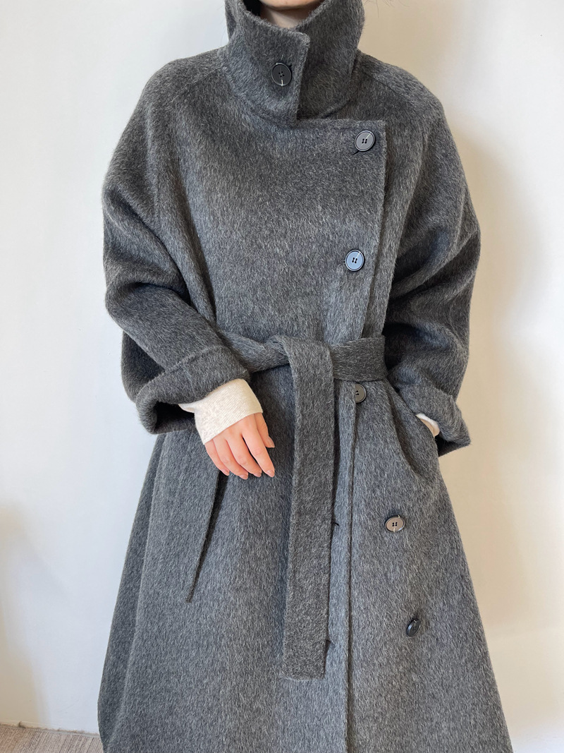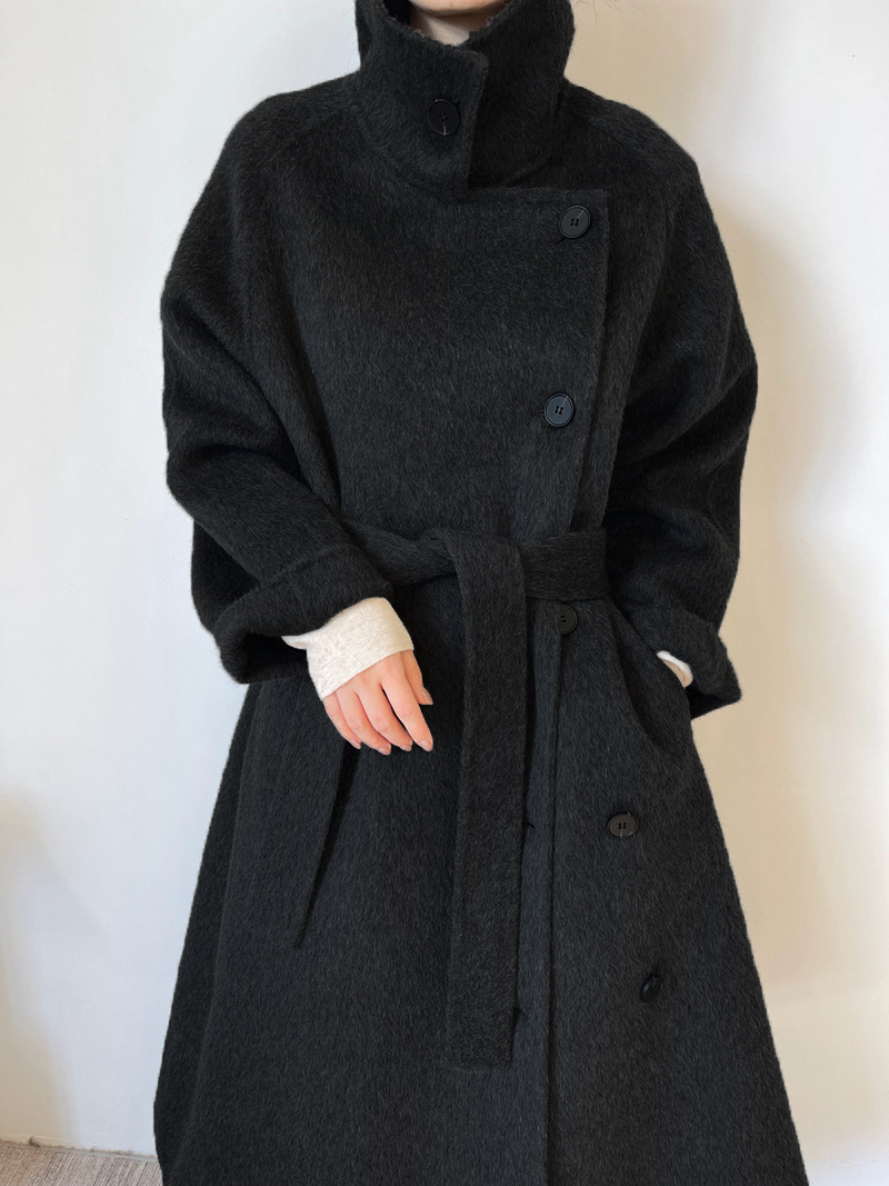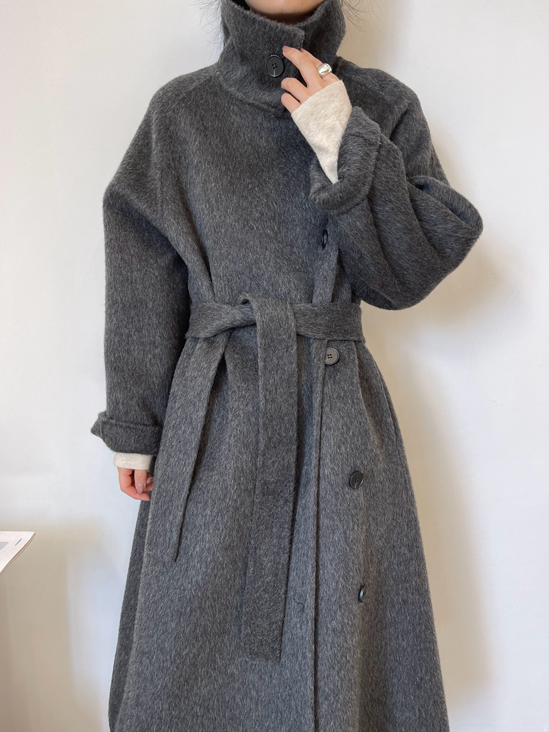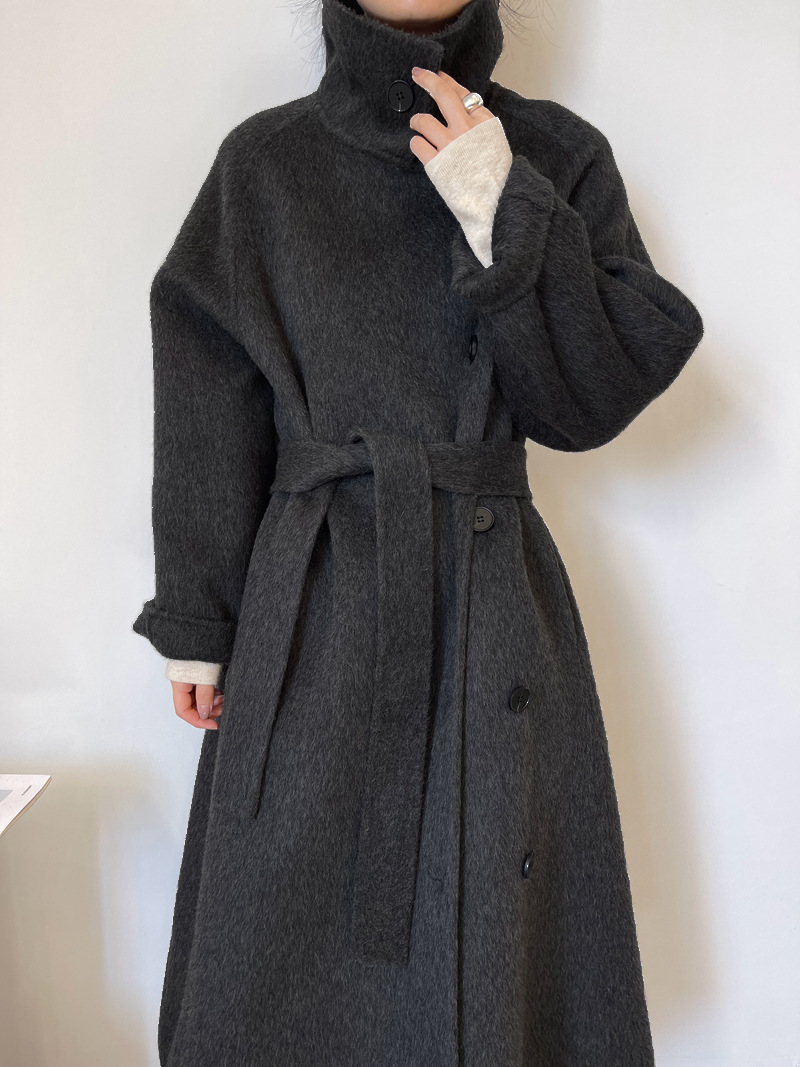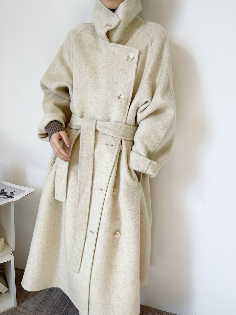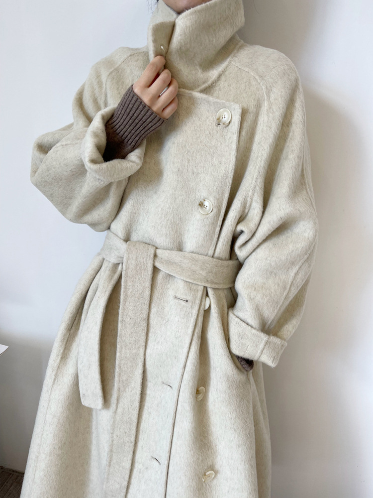 비교할 수 없는 2025 가을 신상 양면 벨벳 코트 여성용 중간 길이 스탠드 칼라 모직 더블 브레스트 코트