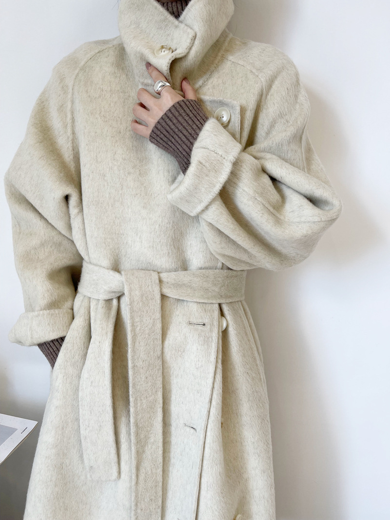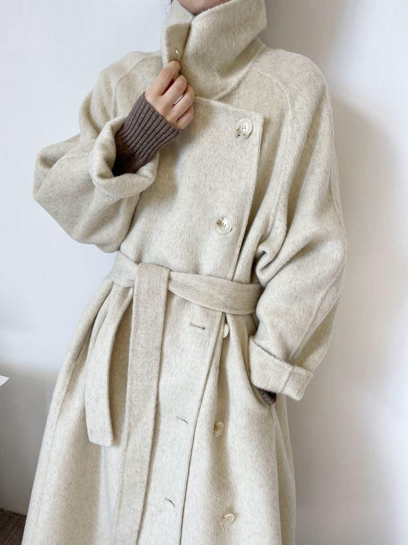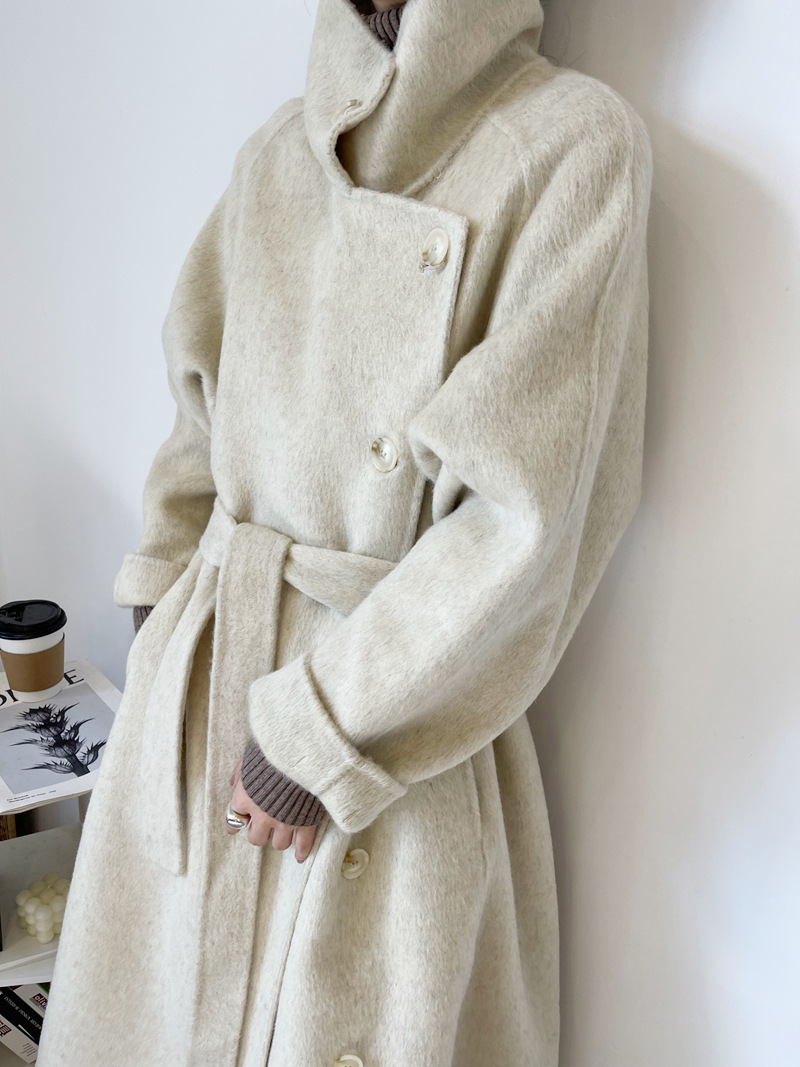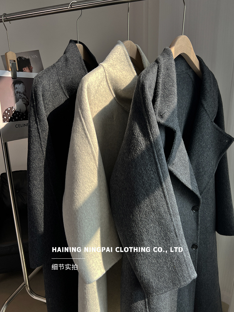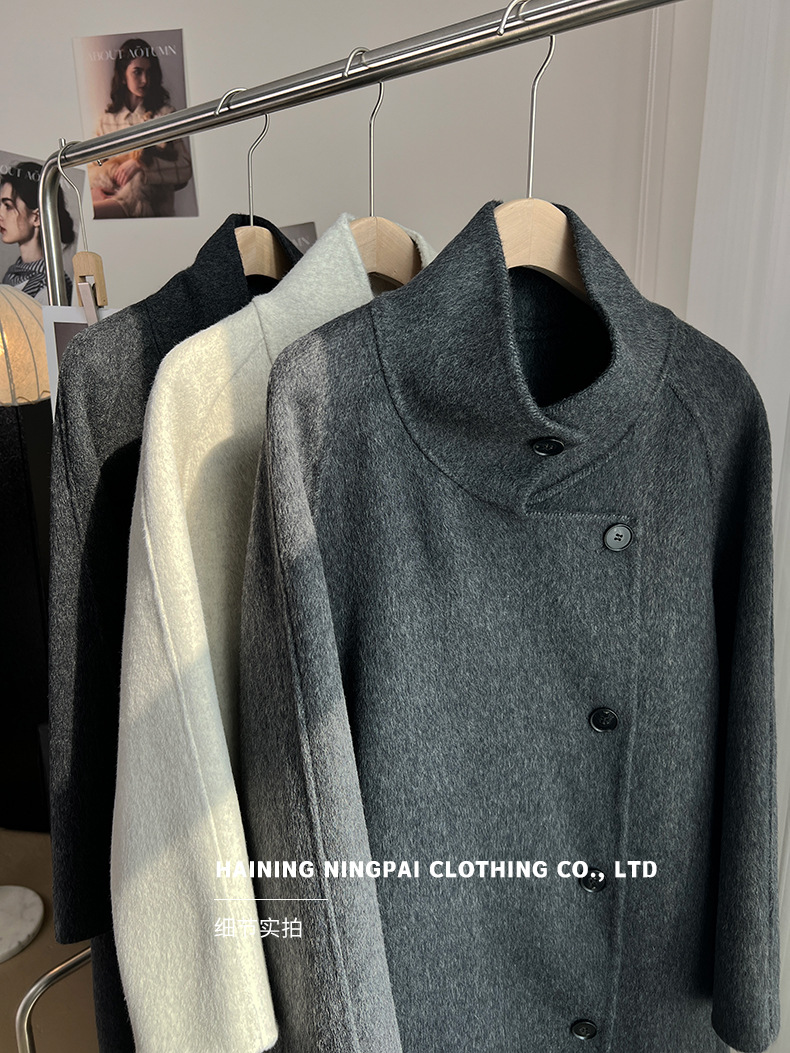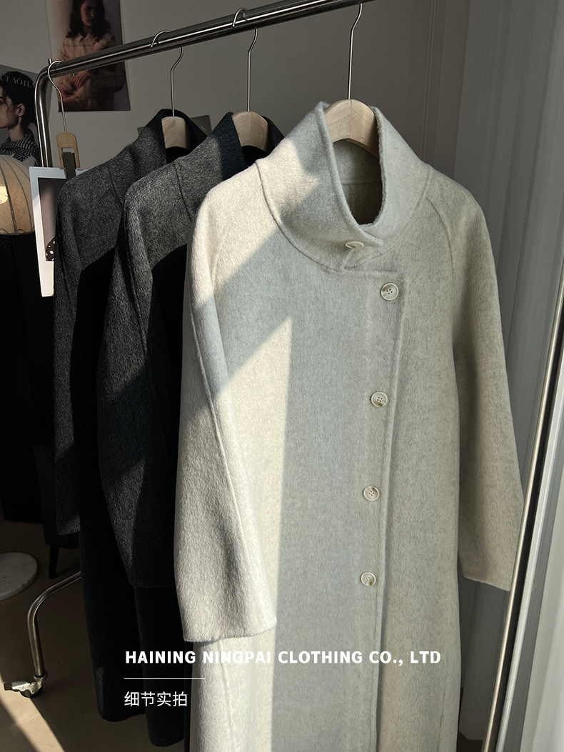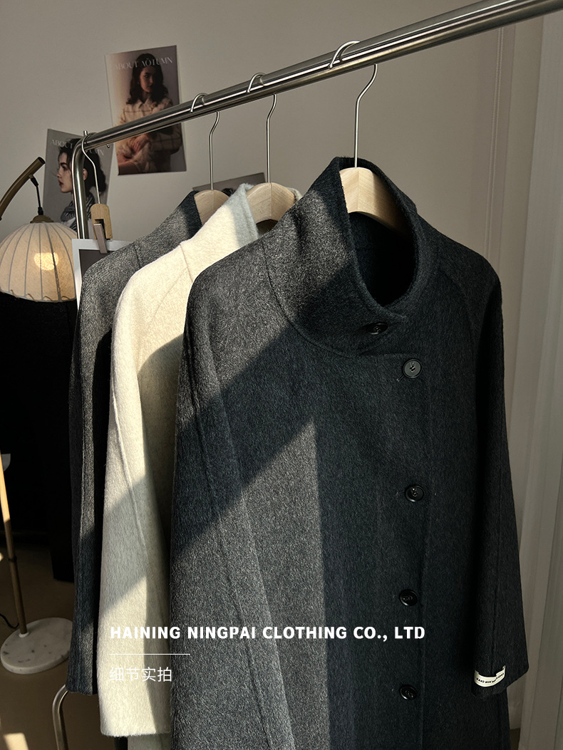 비교할 수 없는 2025 가을 신상 양면 벨벳 코트 여성용 중간 길이 스탠드 칼라 모직 더블 브레스트 코트스토어 가기