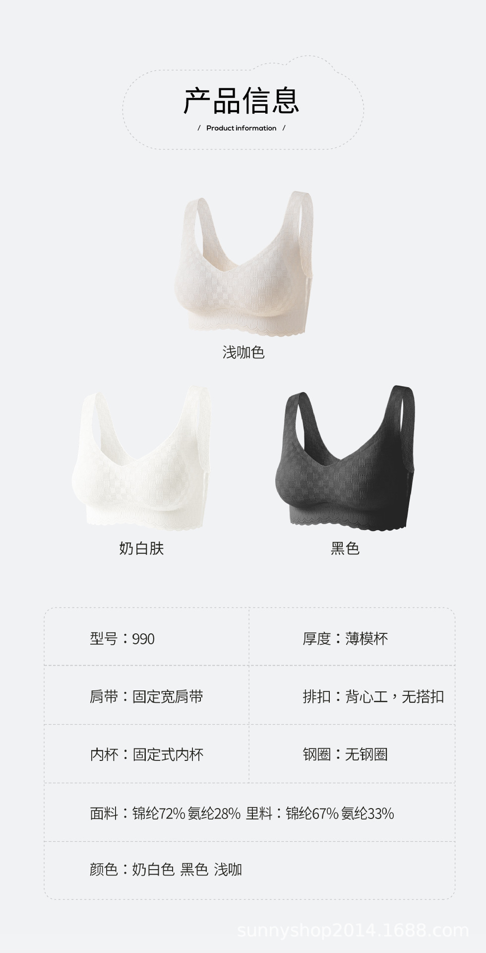 款号:SL990--一片式无痕-通勤文胸 尺码:M(85-100斤)、L(100-115斤)、XL(115-130斤)、XXL(130-145斤) 颜色:奶白色、黑色、浅咖色 ------面料:锦纶72% 氨纶28% ------里料:锦纶67% 氨纶33%