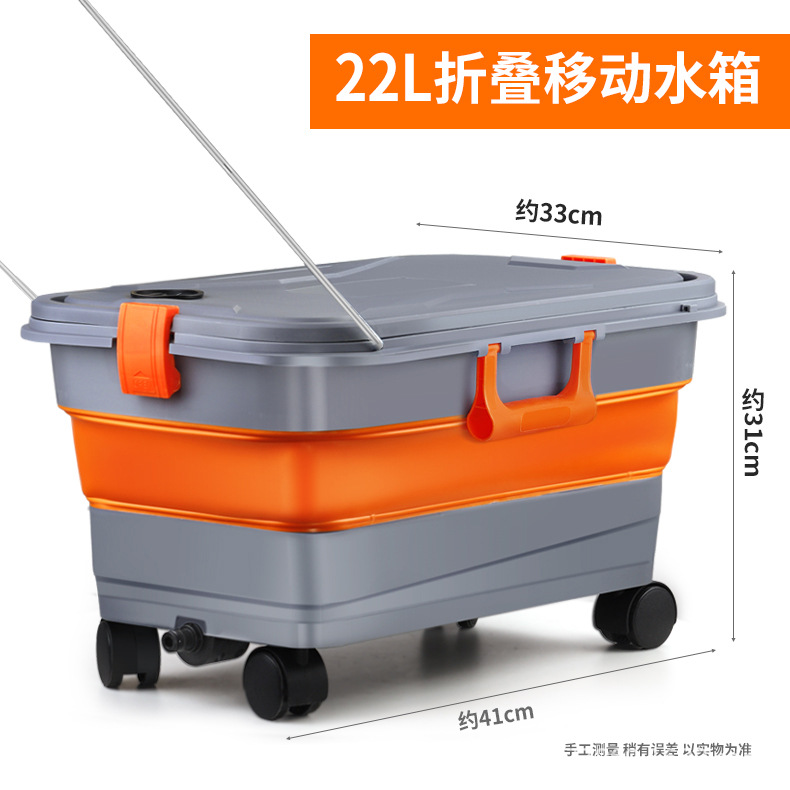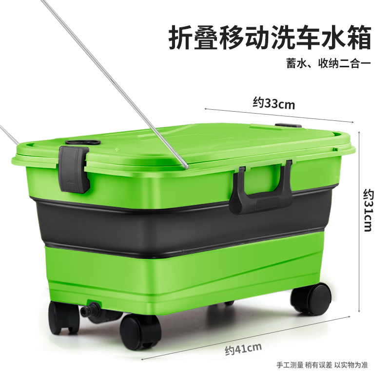 자동차 세탁기 물 탱크는 모바일 접이식 물 저장 버킷 캠핑 낚시 상자 야외 저장 상자 캠핑 저장 상자를 밀고 당길 수 있습니다.