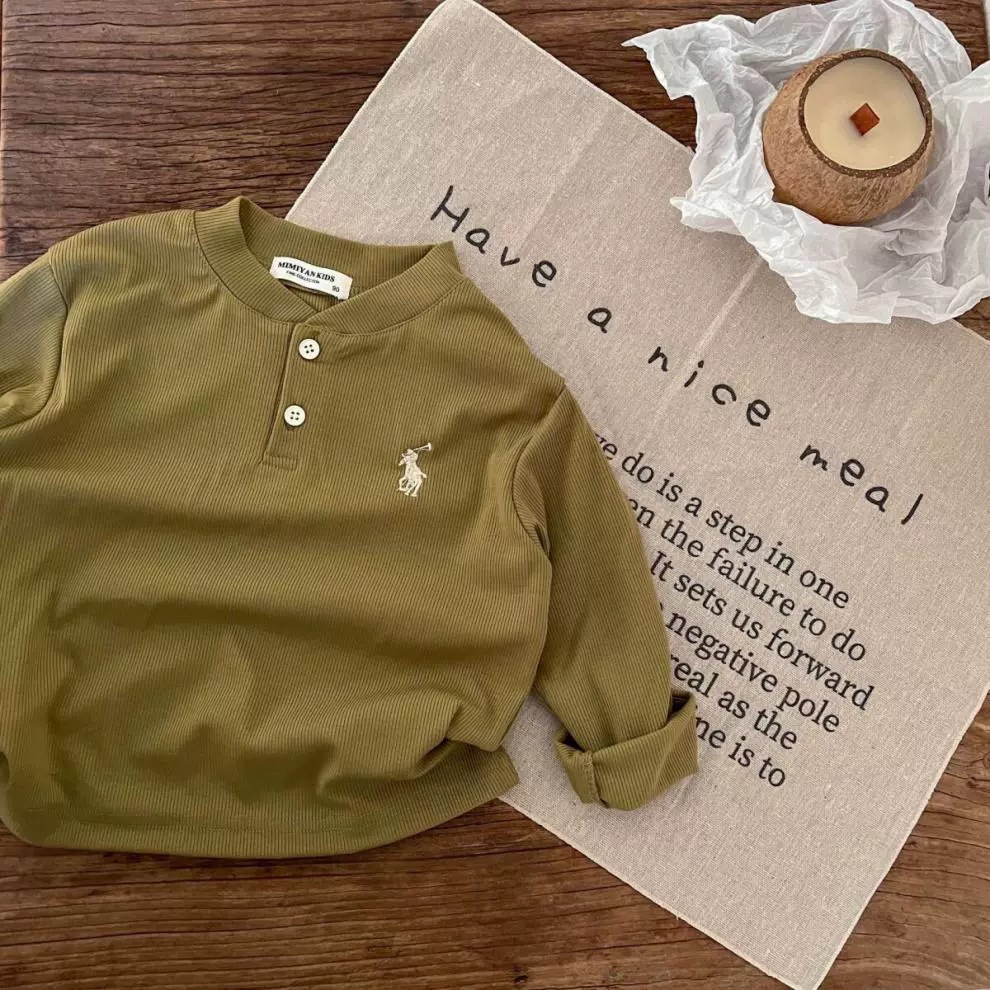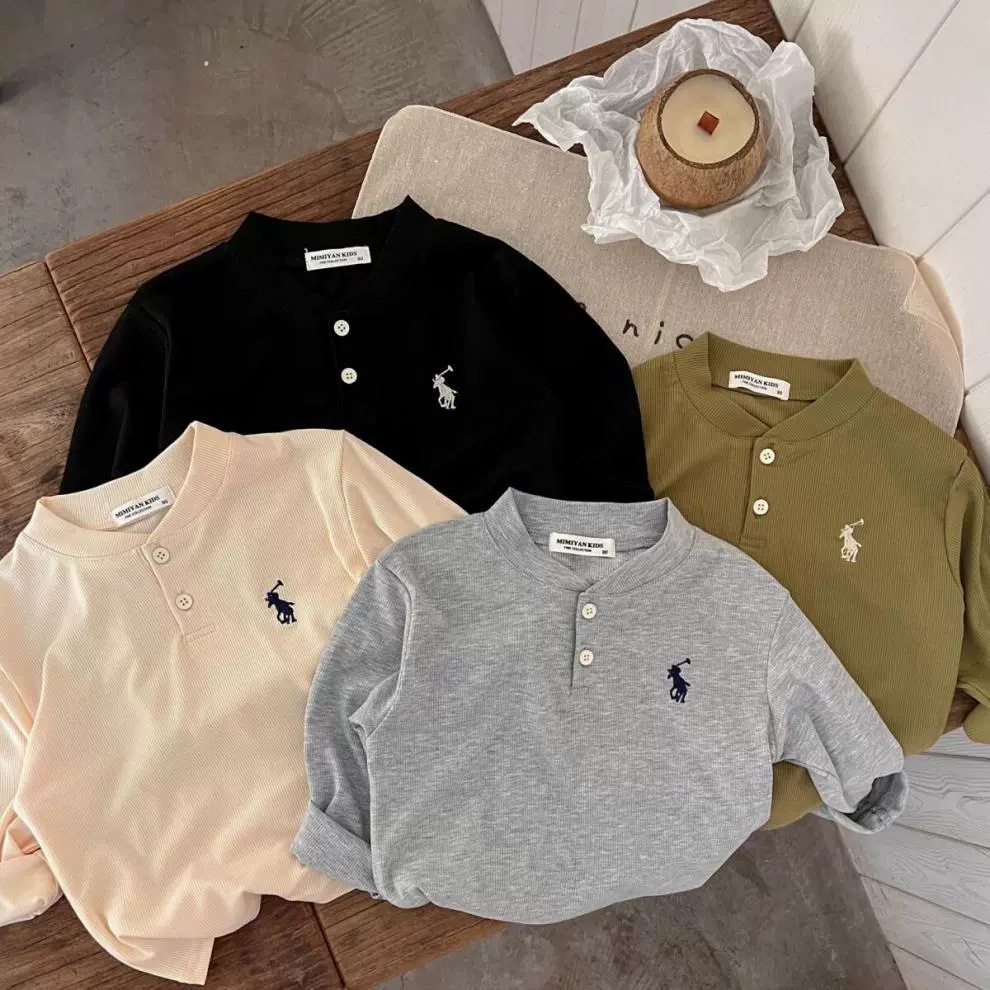 Ningli 소년 봄, 가을 긴팔 폴로 칼라 티셔츠 25 새로운 아기 소녀 가을 한국 스타일 솔리드 컬러 리프 바닥 셔츠스토어 가기