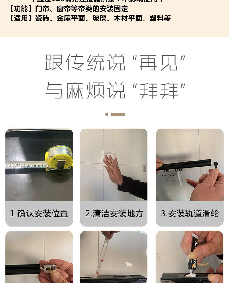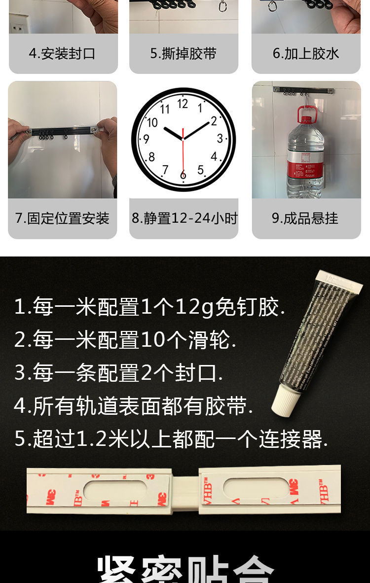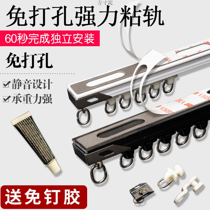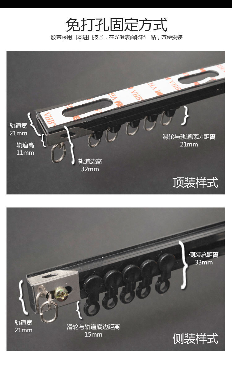 커튼 트랙 비 천공 설치 슬라이드 레일 도르래 커튼 막대 스티커 레일 단일 및 이중 상단 장착 측면 장착 슬라이드 도매스토어 가기