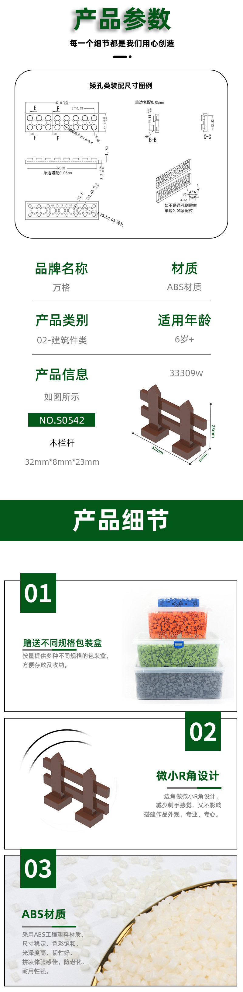 완게과학기술 DIY 소형 블록 MOC 국내산 블록 33309W 호환 조립 부품 목재 난간 건축 장난감