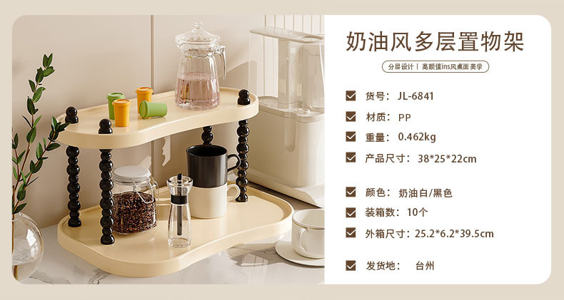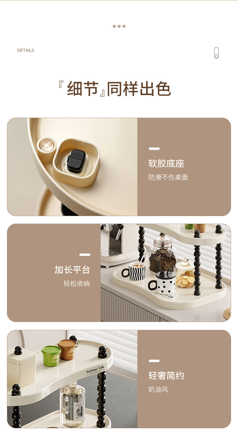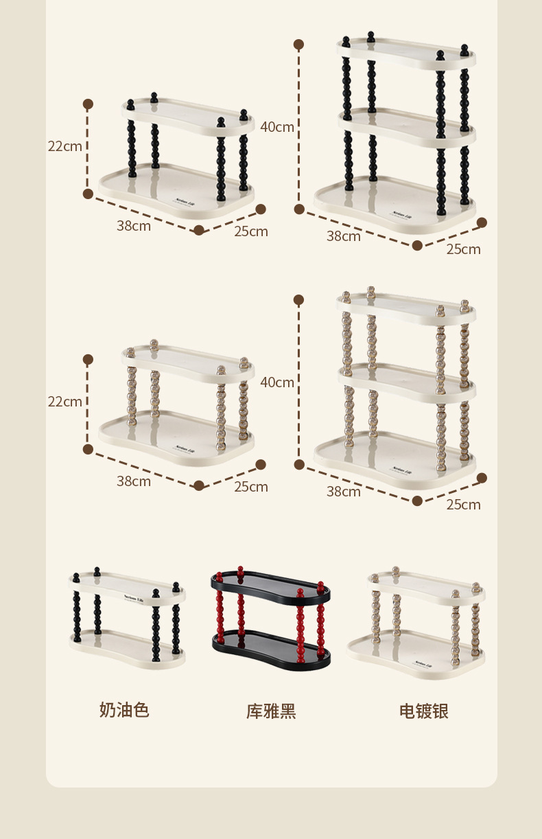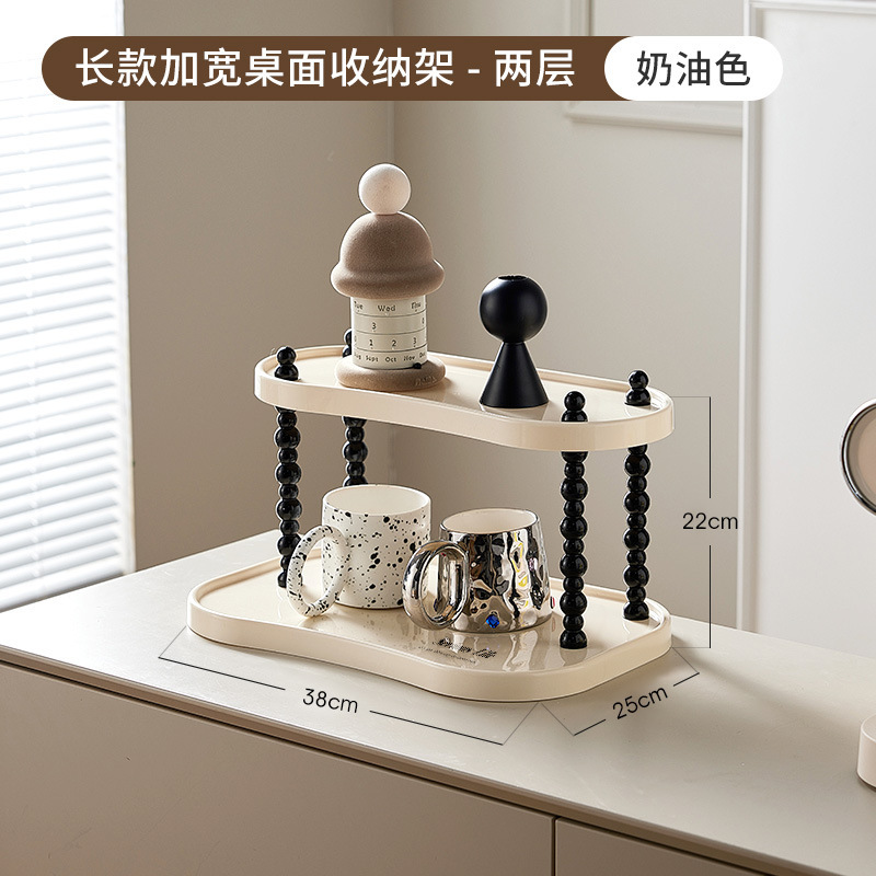 • 2단 직사각형 넓어진 데스크탑 수납선반(은도금)