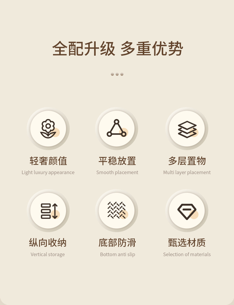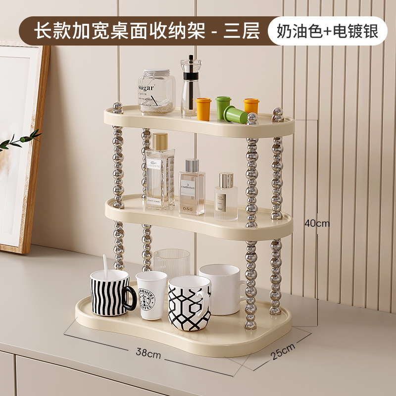• 3단 직사각형 넓어진 데스크탑 수납선반(은도금)