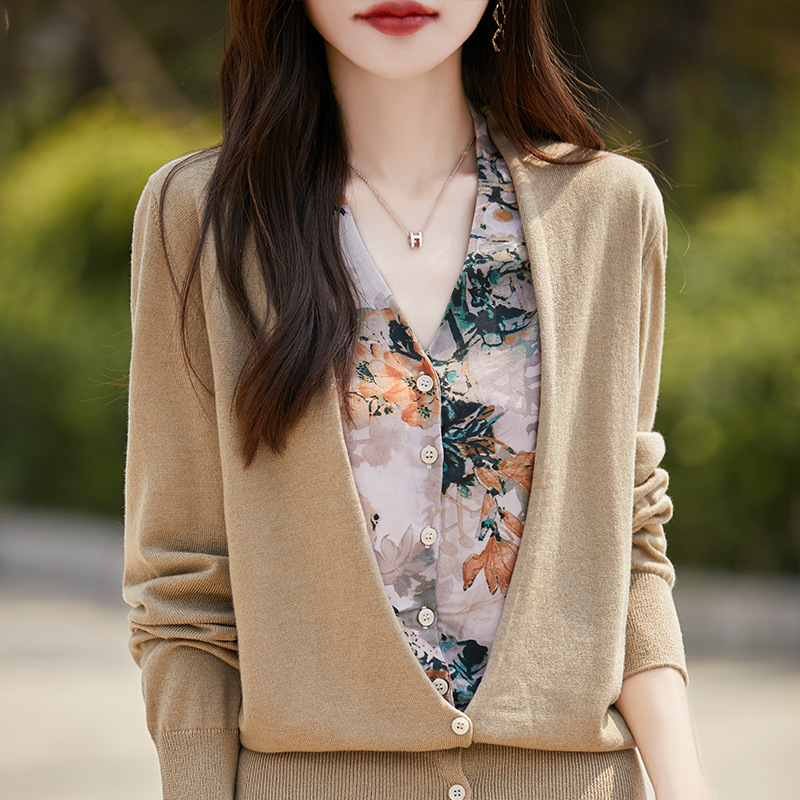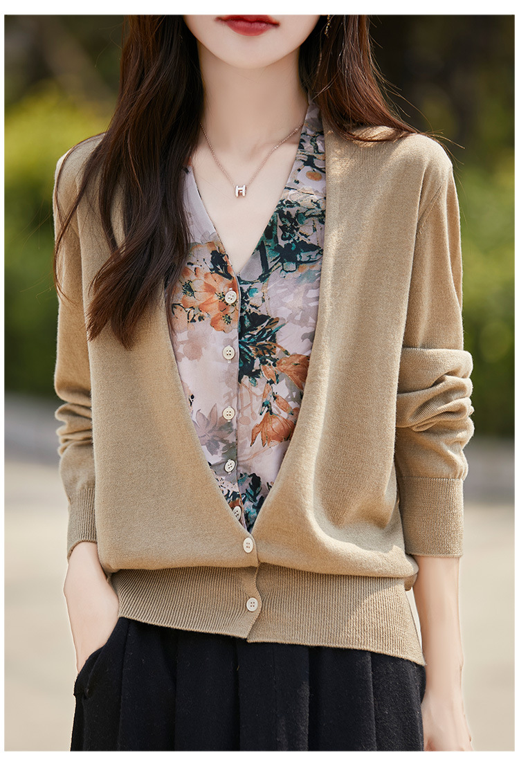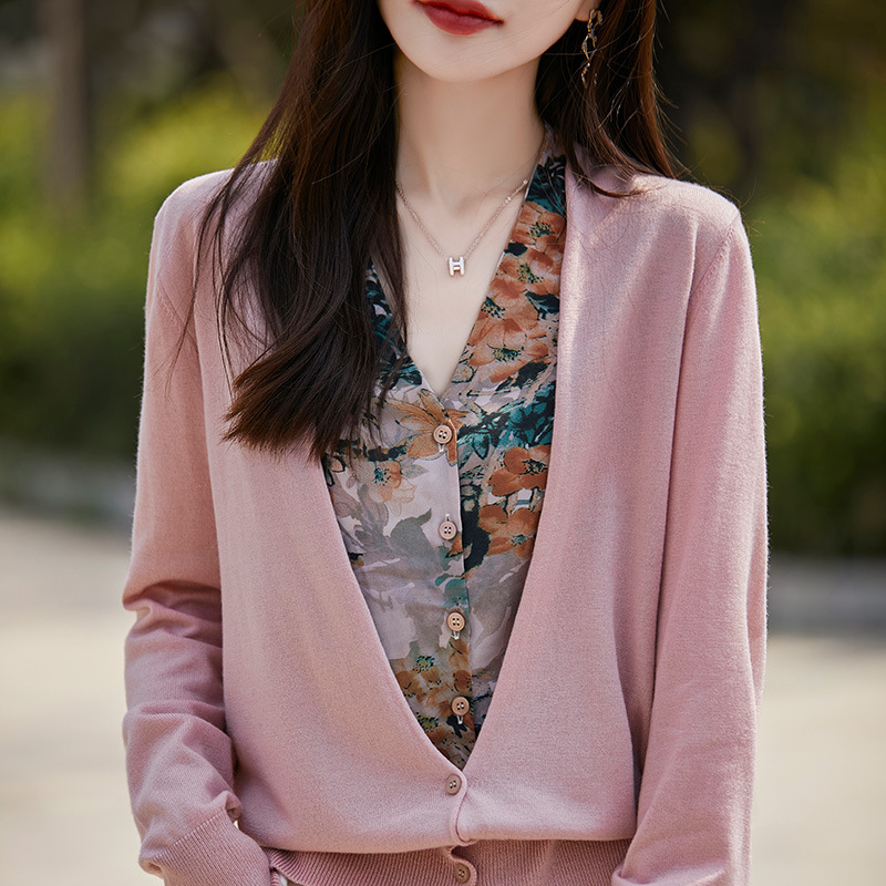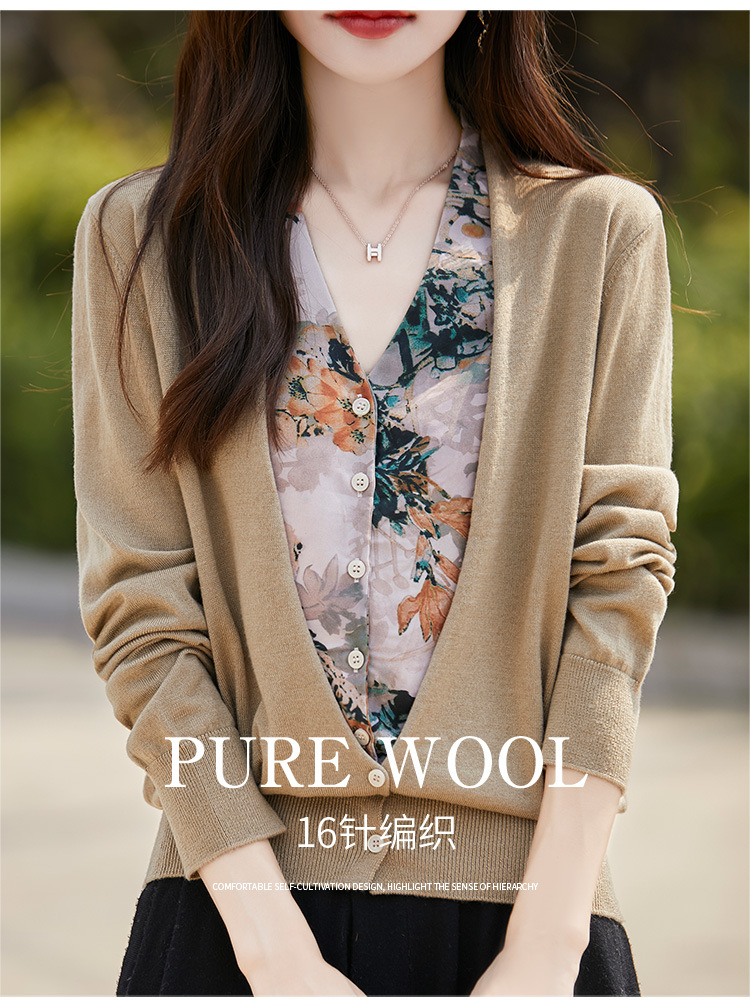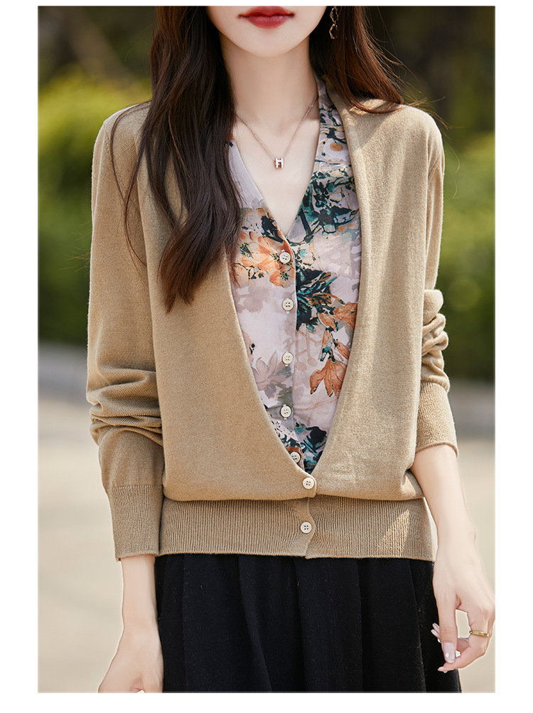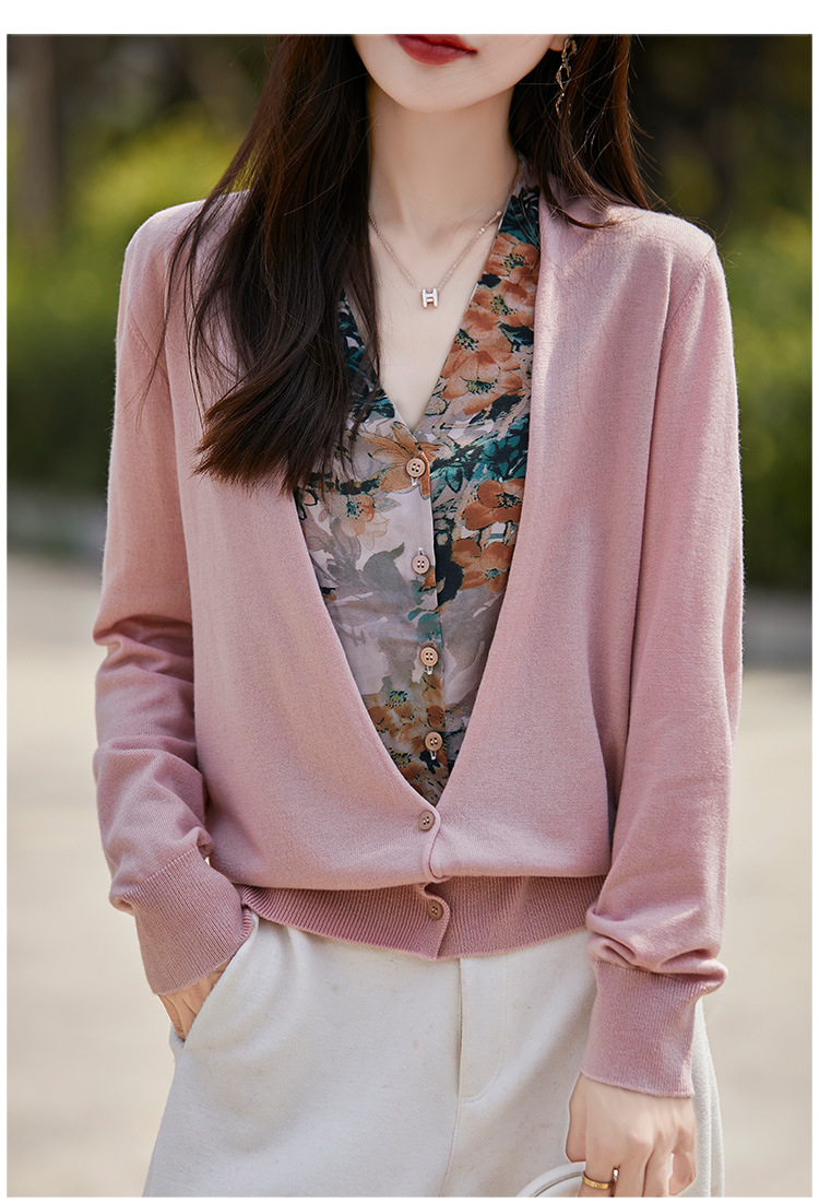 초가을 2024 새로운 도착 Worsted Wool V-Neck 니트 카디건 긴팔 여성용 인쇄 디자인 센스 페이크 투피스 탑스토어 가기