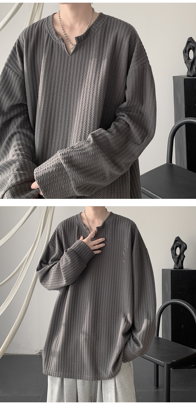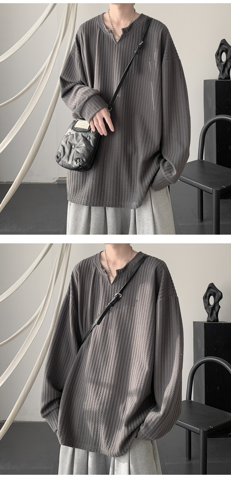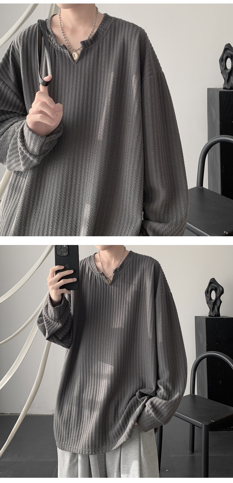 질감 긴팔 티셔츠 남자의 2024 봄과 가을 새로운 미국 무거운 느슨한 십대 내베이스 탑 옷스토어 가기