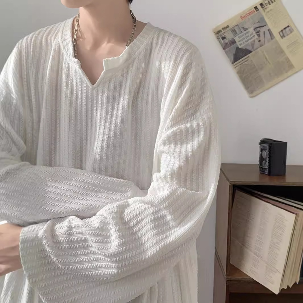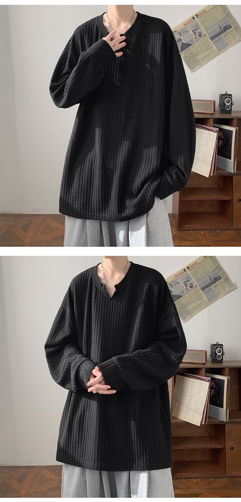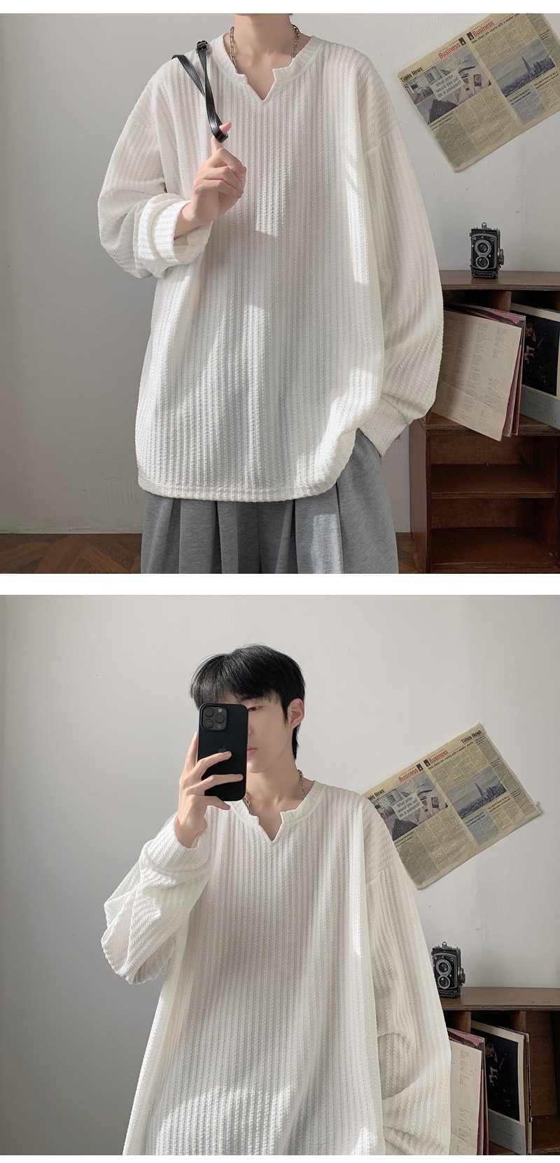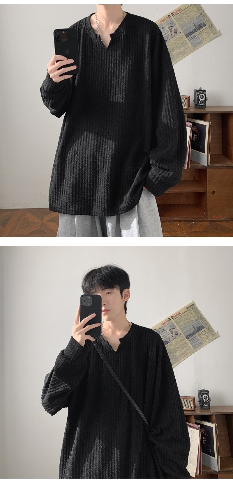 질감 긴팔 티셔츠 남자의 2024 봄과 가을 새로운 미국 무거운 느슨한 십대 내베이스 탑 옷스토어 가기