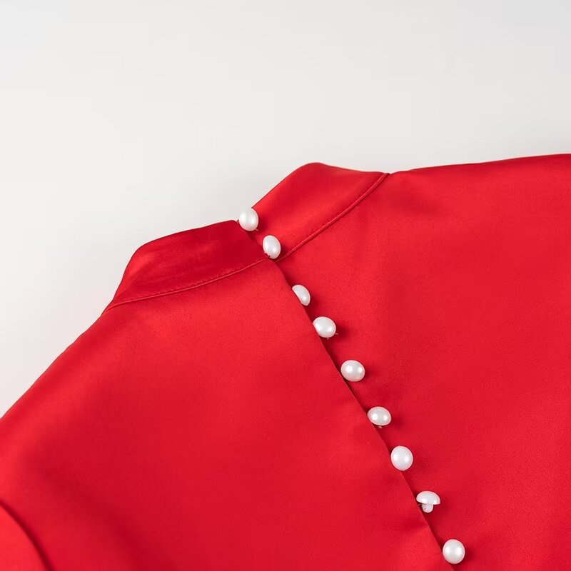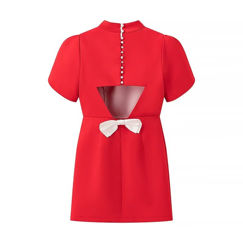 도매 2024 여름 새로운 유럽과 미국 스타일 여성의 붉은 칼라 활 원피스스토어 가기