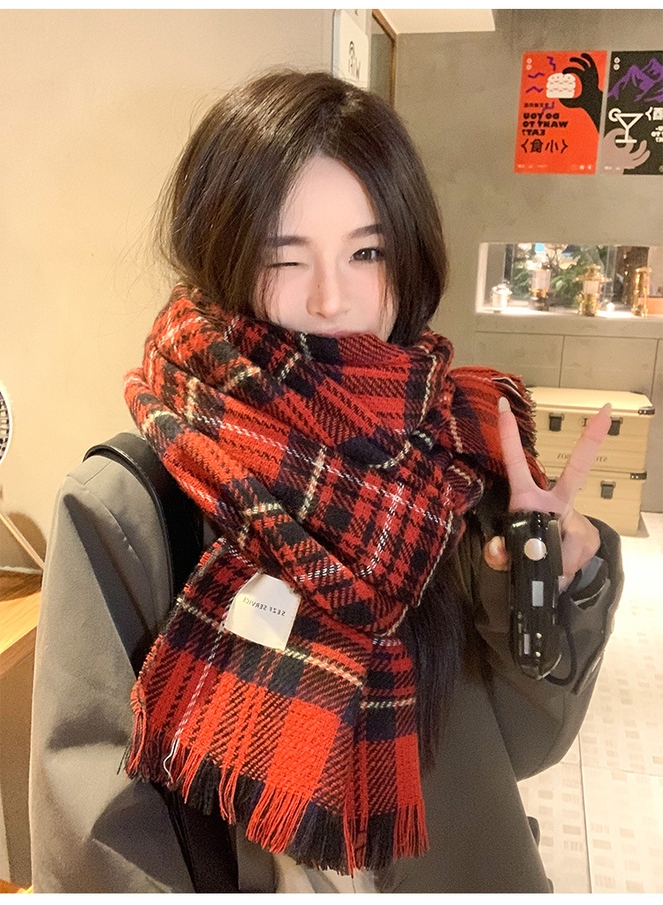 한국 이스트 게이트 대형 에디션 새로운 패션 격자 무늬 술 스카프 여성의 겨울 따뜻한 긴 크리스마스 스카프