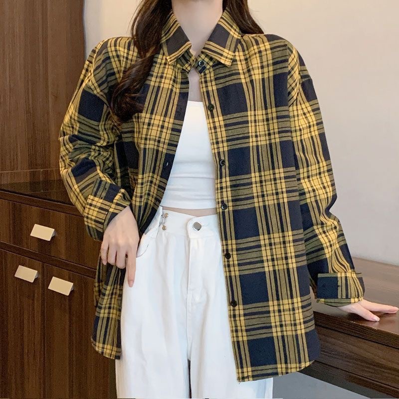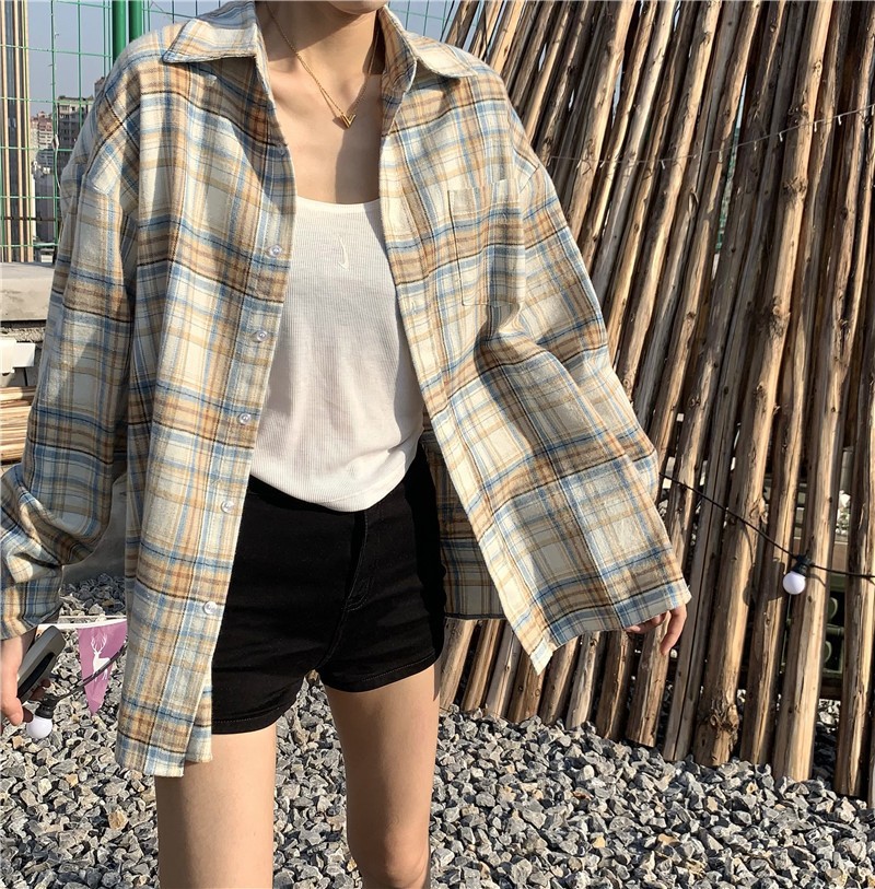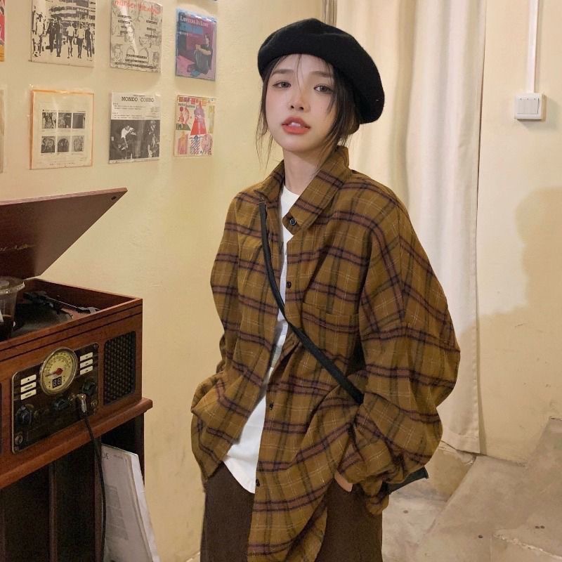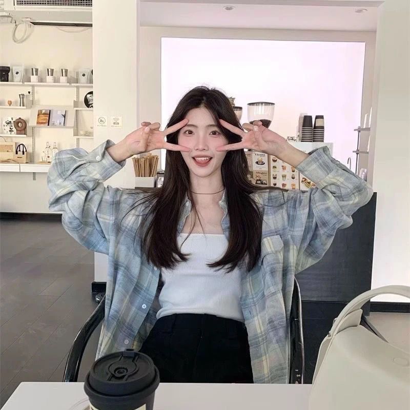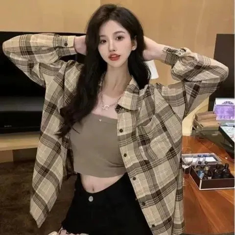격자 무늬 셔츠 여성의 봄 여름 가을 새로운 한국 스타일 유행 소녀의 짧은 복고풍 긴 소매 셔츠 캐주얼 자켓스토어 가기