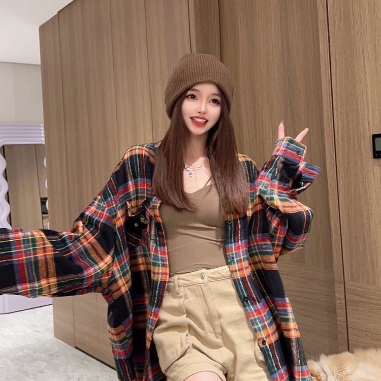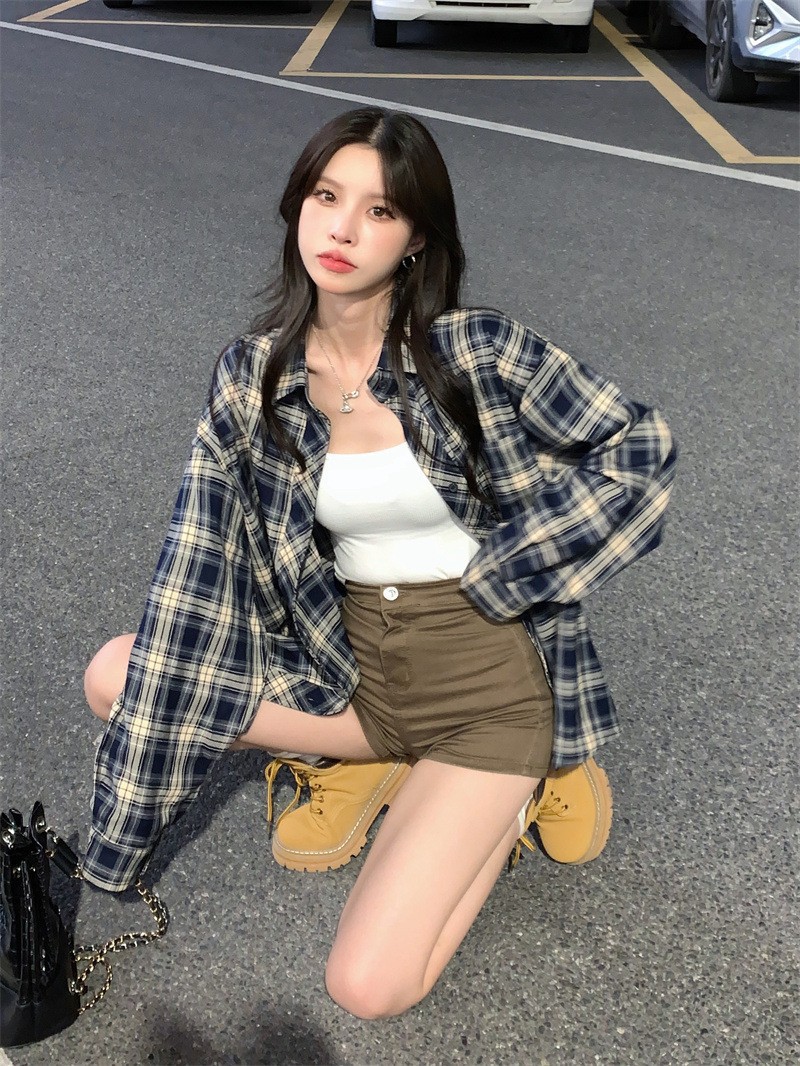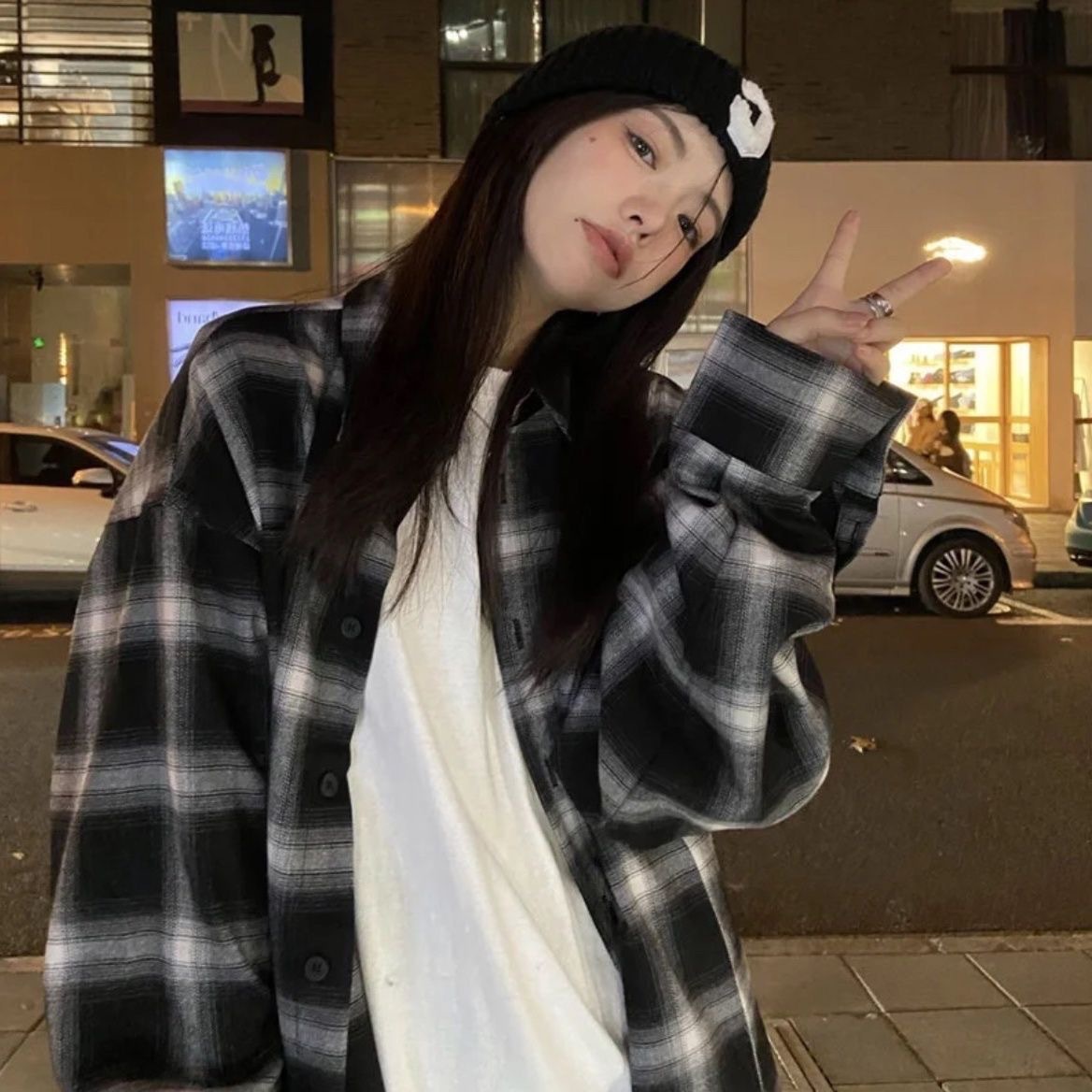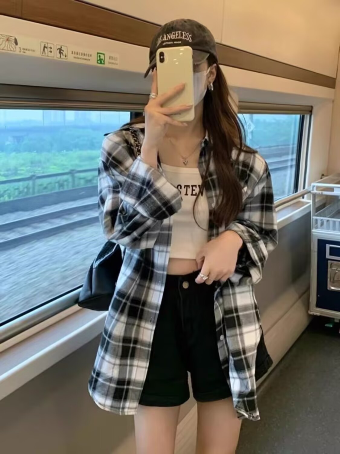 격자 무늬 셔츠 여성의 봄 여름 가을 새로운 한국 스타일 유행 소녀의 짧은 복고풍 긴 소매 셔츠 캐주얼 자켓스토어 가기