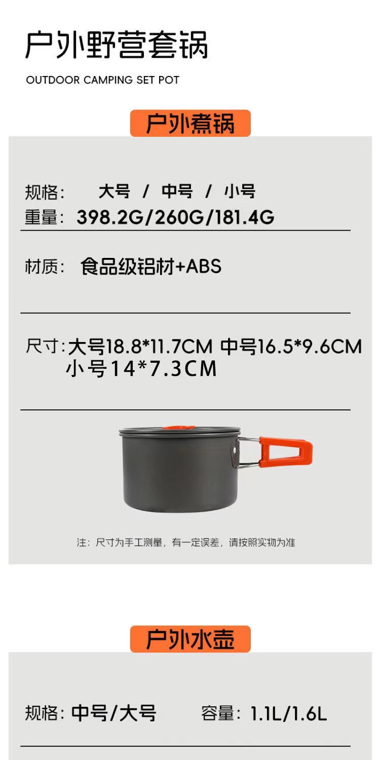 야외 캠핑 세트 냄비 주전자 냄비 장비 캠핑 피크닉 용품 휴대용 조리기구 주방용품 식기 세트