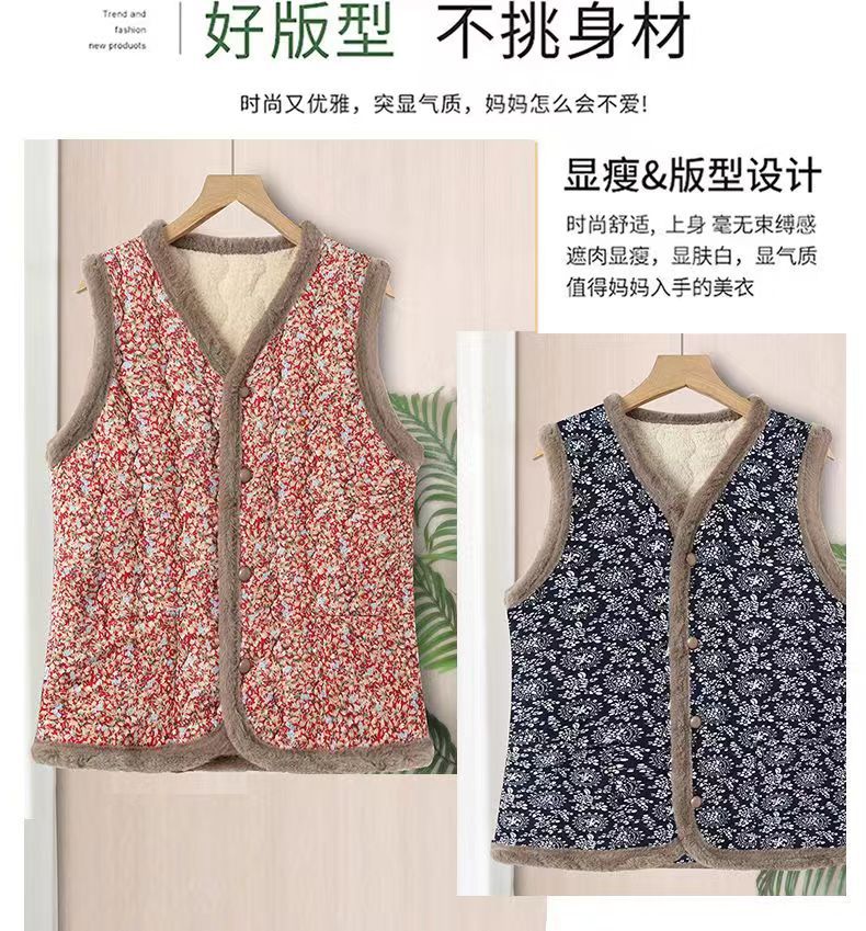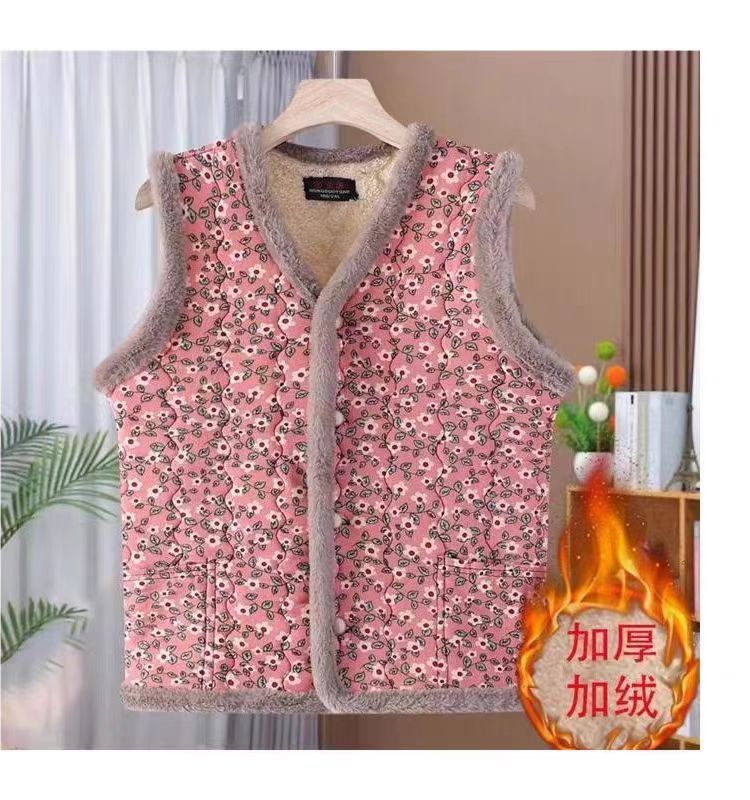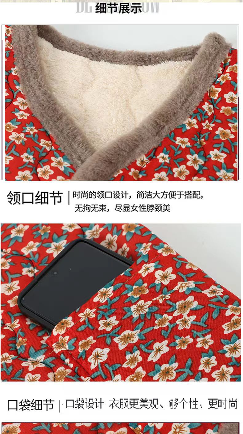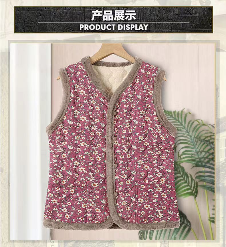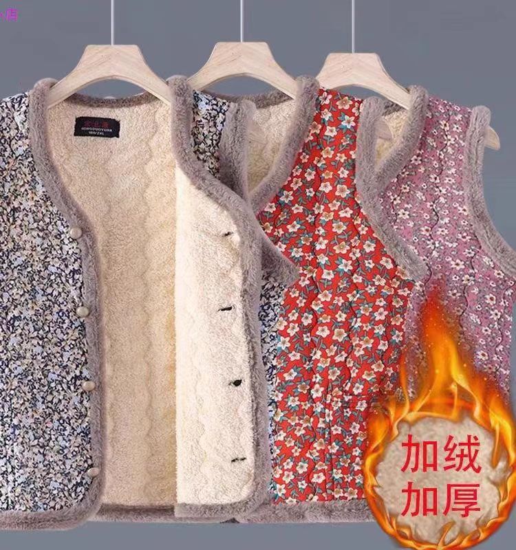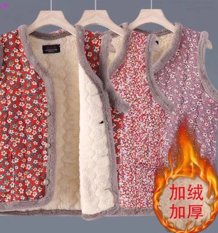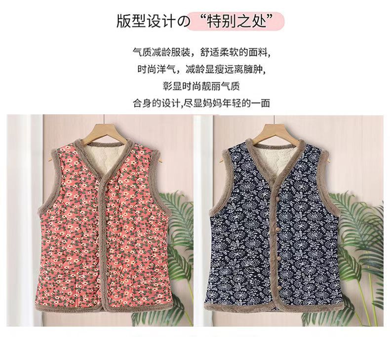 가을과 겨울 꽃 조끼 조끼 어깨 허리 코트 여성의 중년 및 노인 어머니의 기모 따뜻한 조끼 코트 여성의 겨울