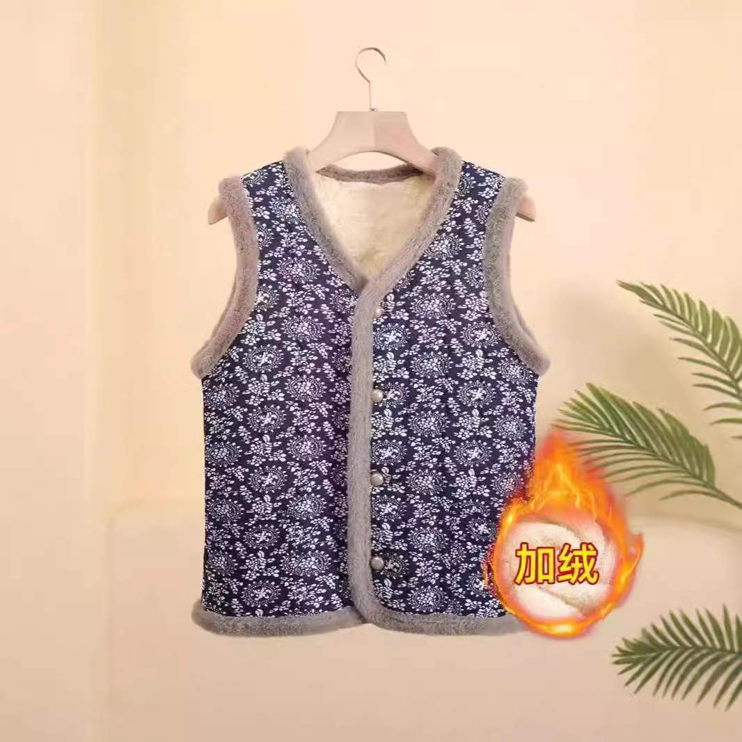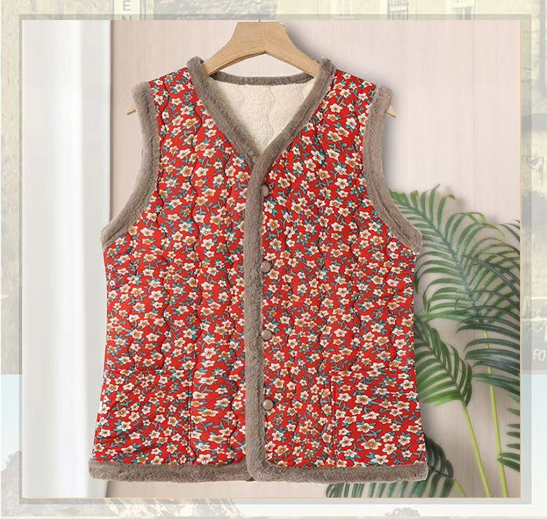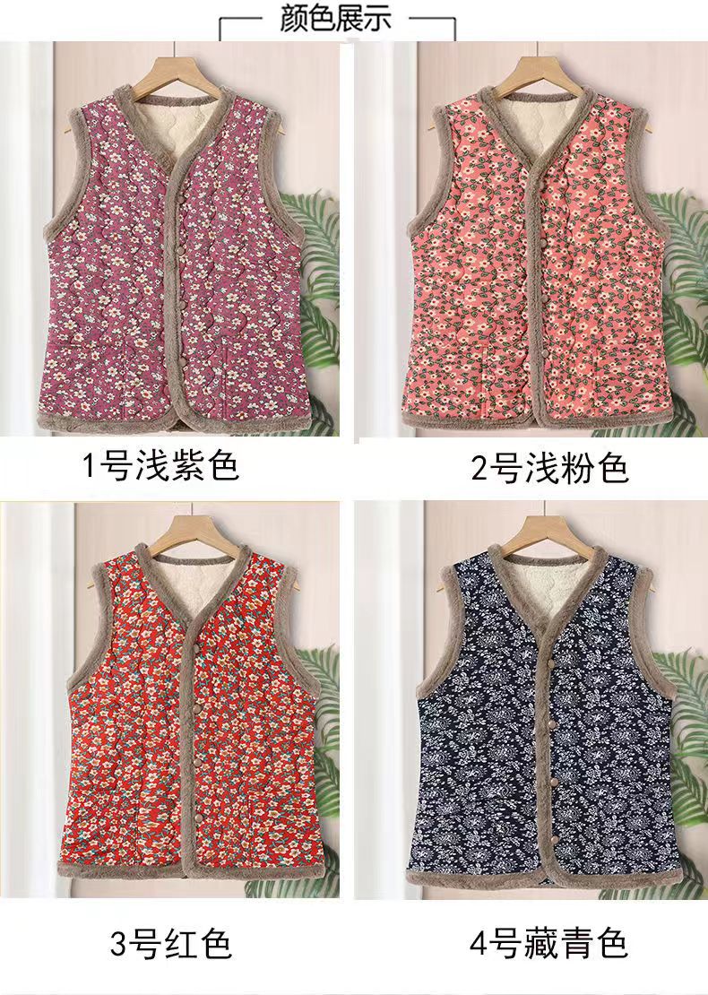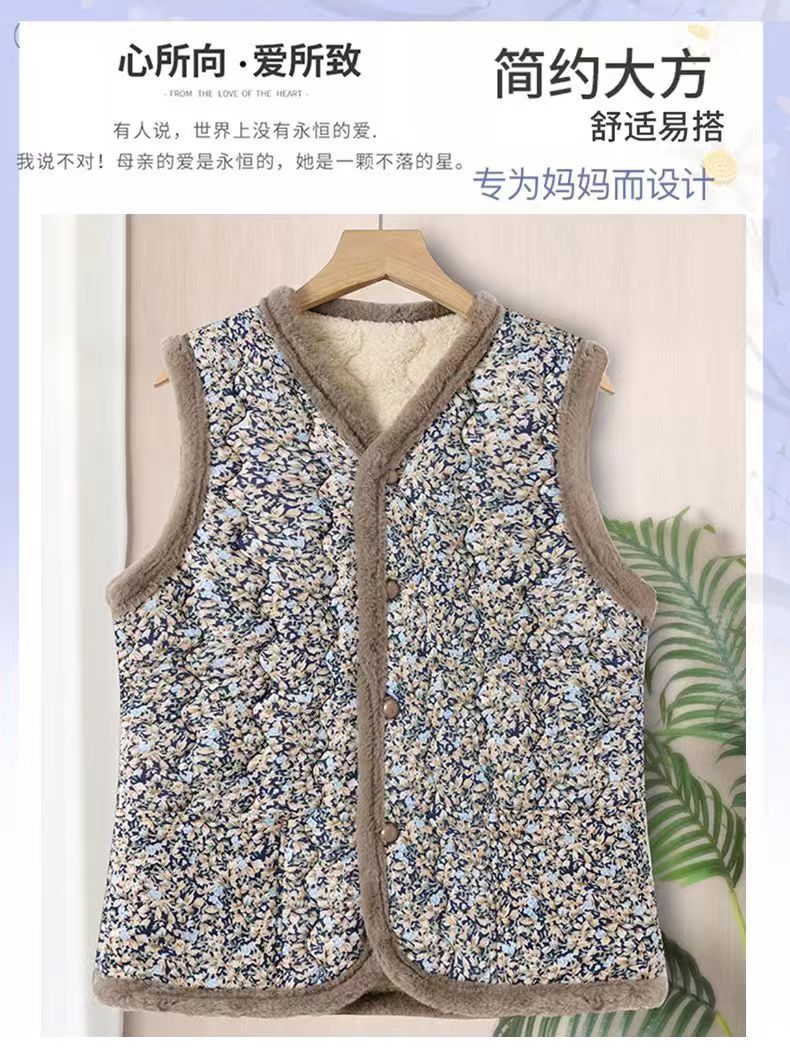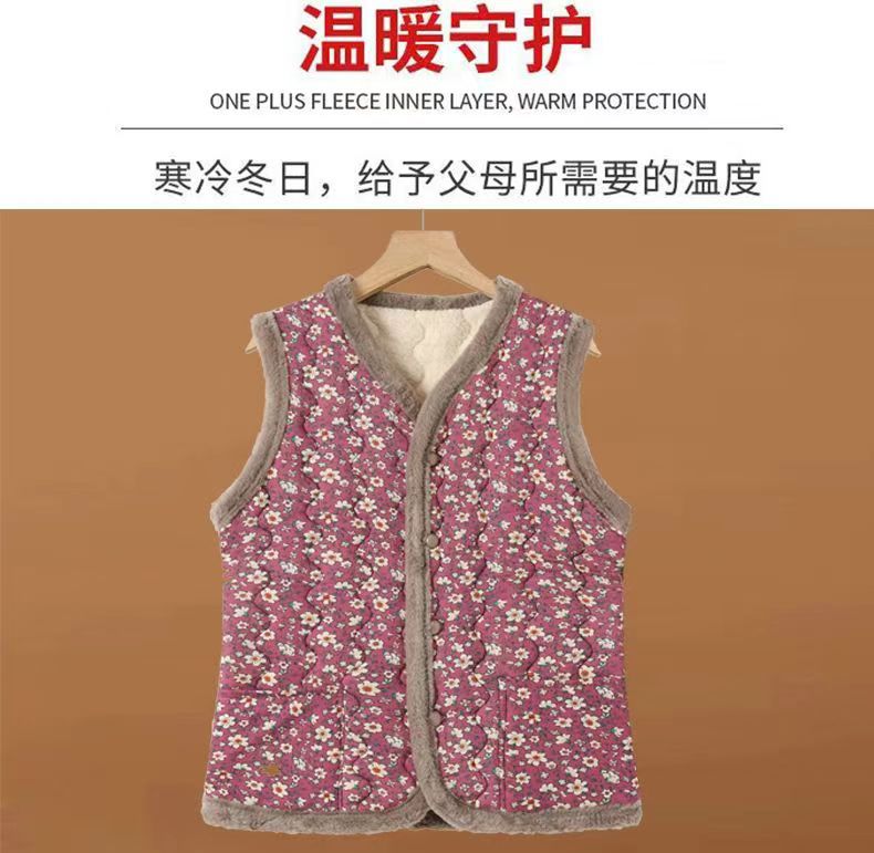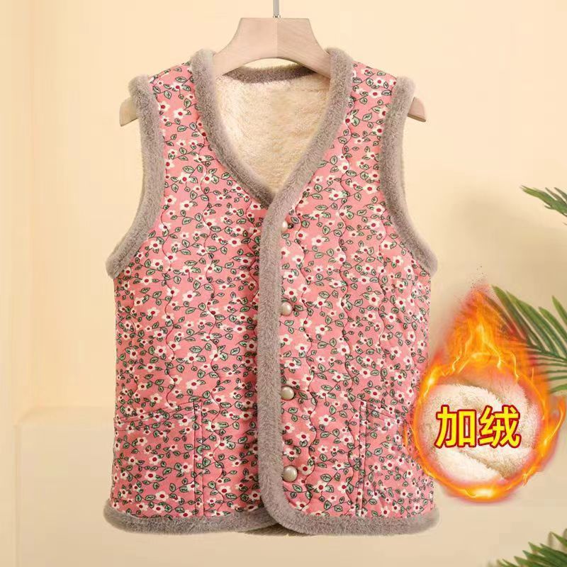 가을과 겨울 꽃 조끼 조끼 어깨 허리 코트 여성의 중년 및 노인 어머니의 기모 따뜻한 조끼 코트 여성의 겨울