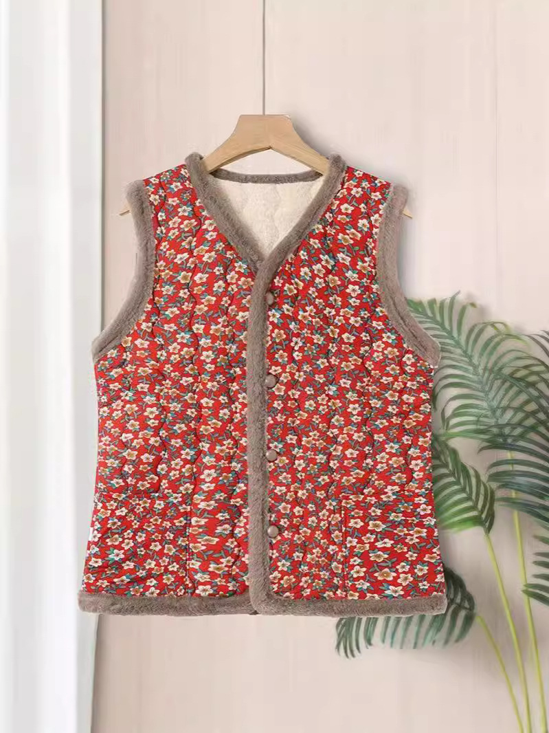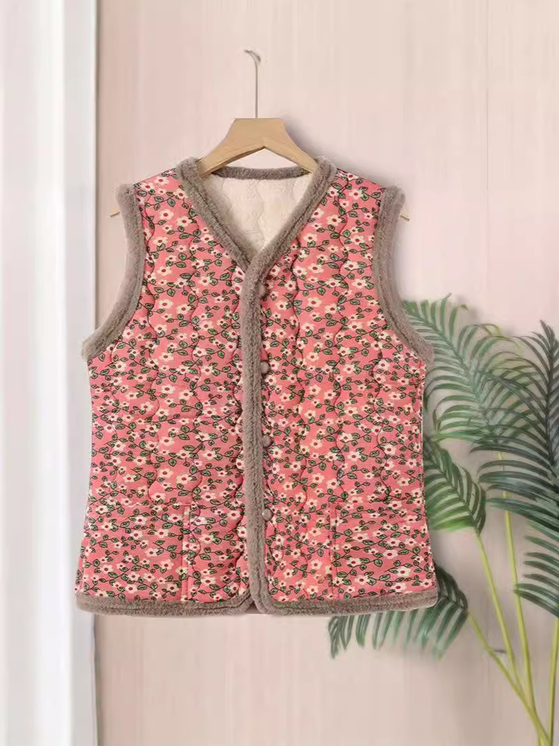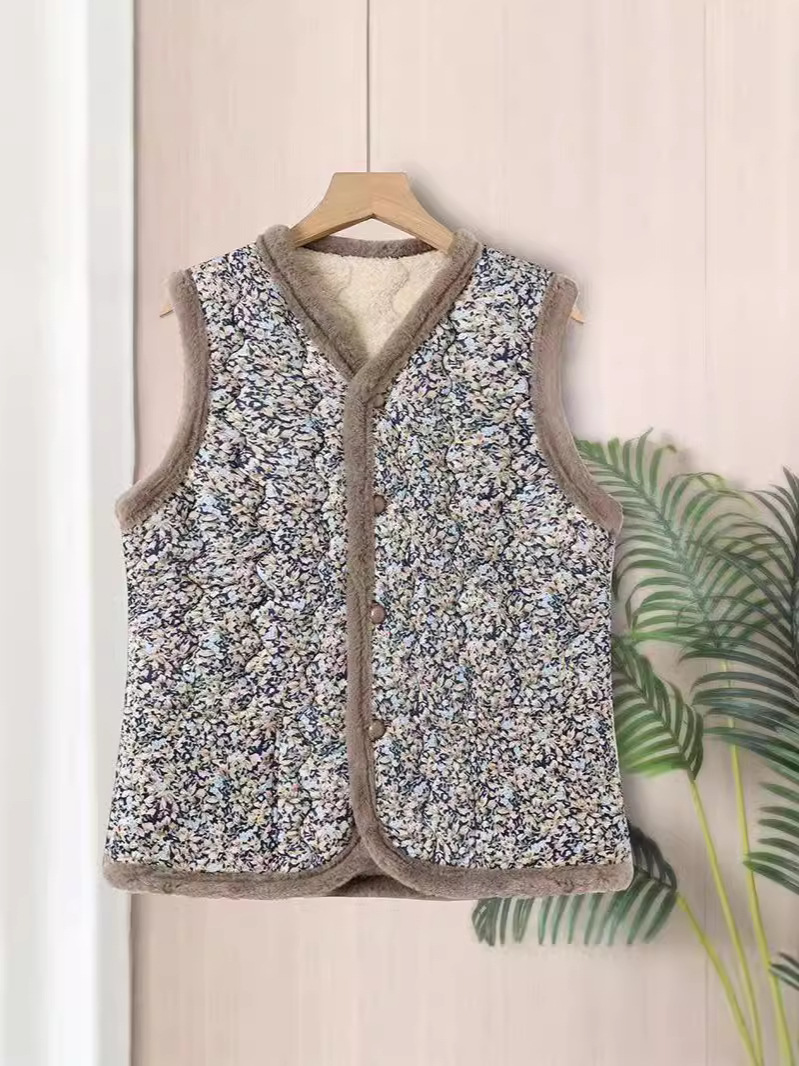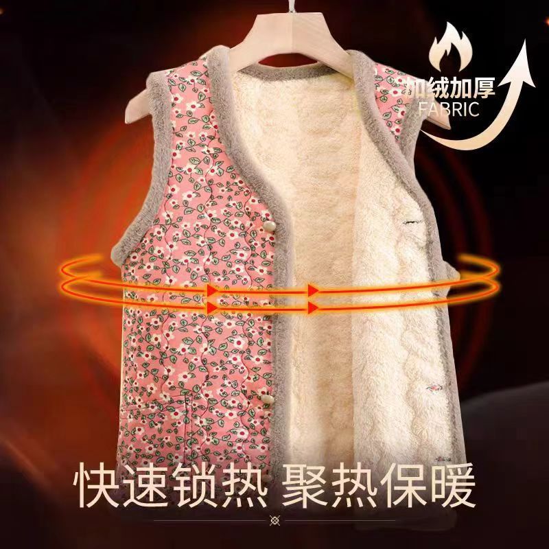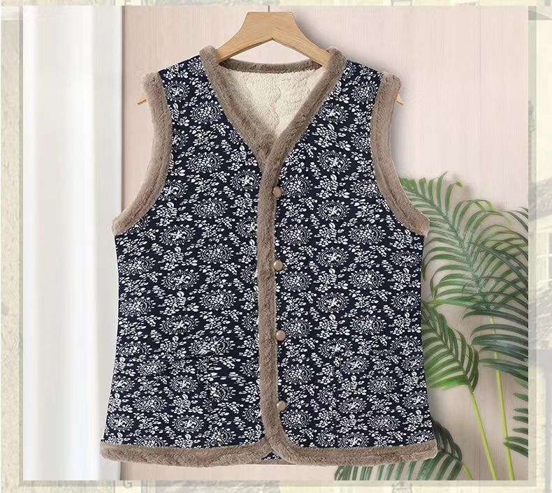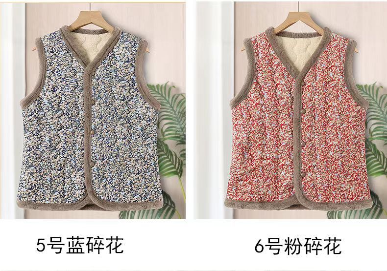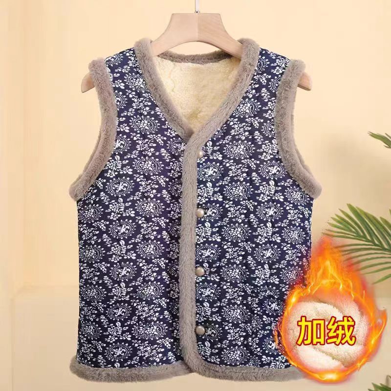 가을과 겨울 꽃 조끼 조끼 어깨 허리 코트 여성의 중년 및 노인 어머니의 기모 따뜻한 조끼 코트 여성의 겨울
