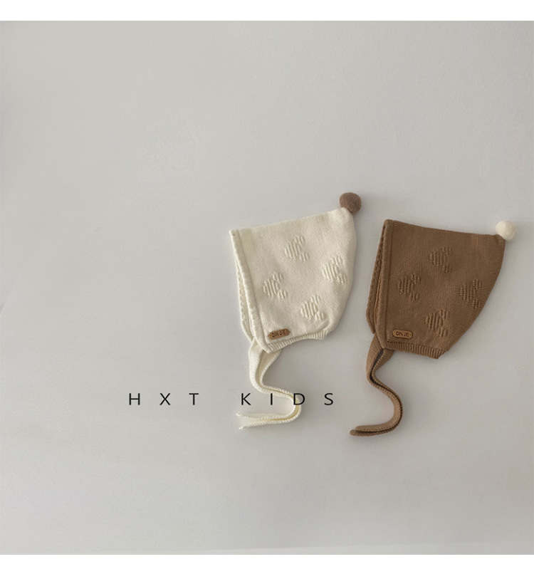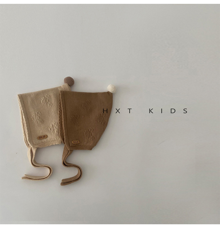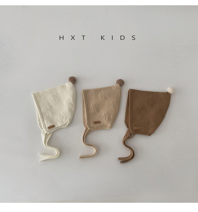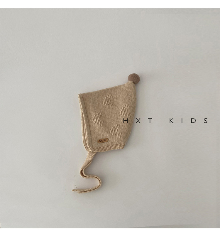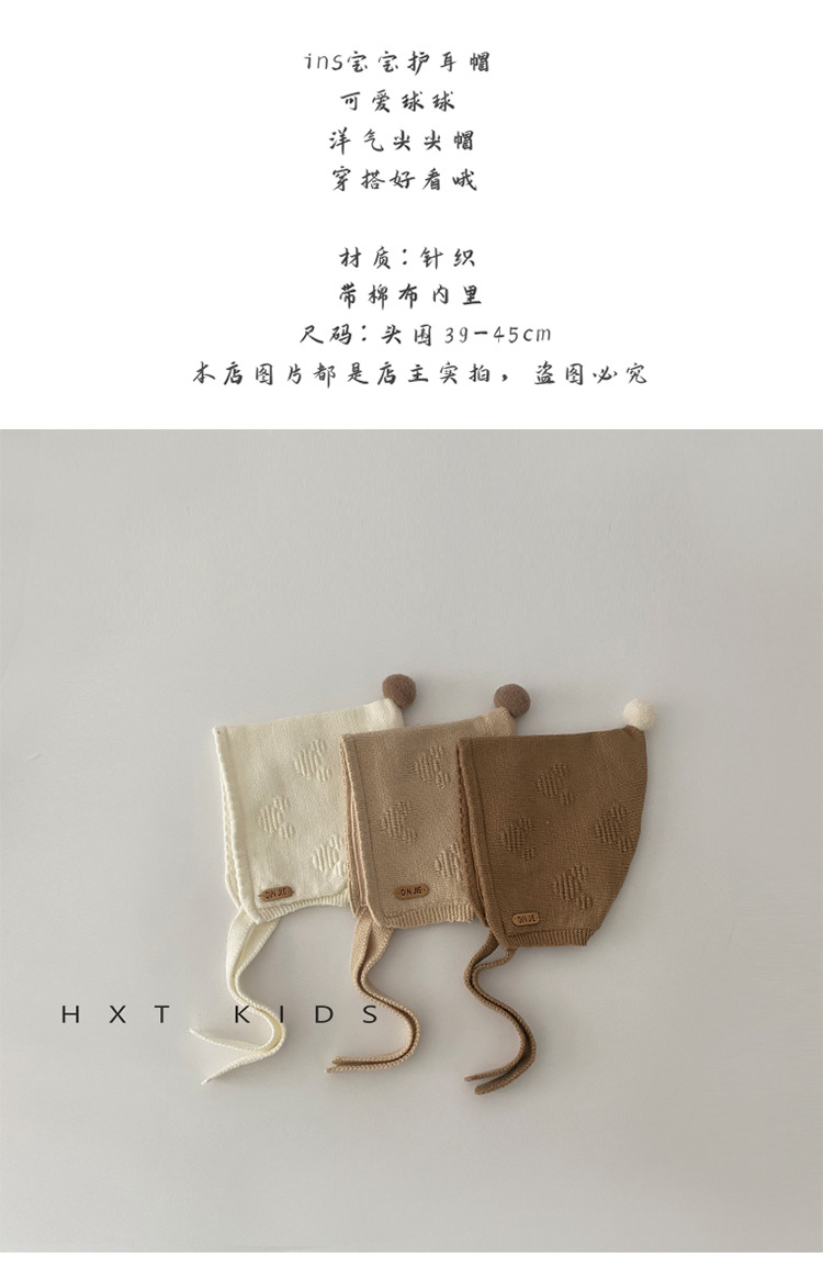 아기의 니트 모자 가을과 겨울 대비 색상 뾰족한 모자 탑 작은 공 외국 스타일의 레이스 업 귀 보호 모자 0-1 세 아기스토어 가기