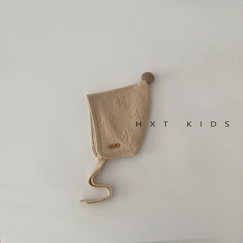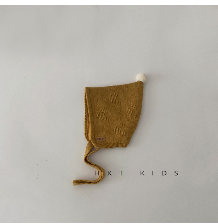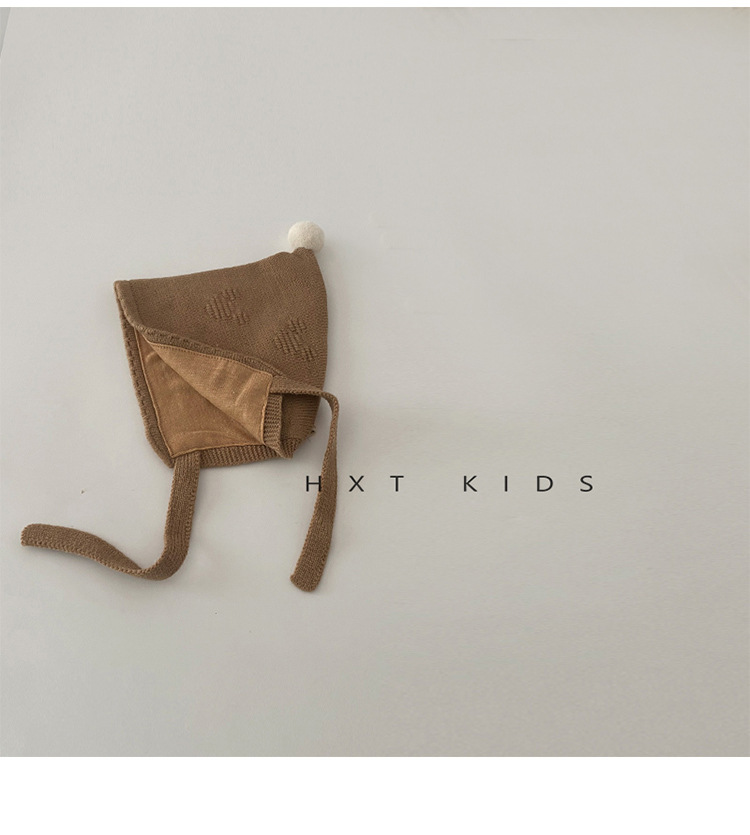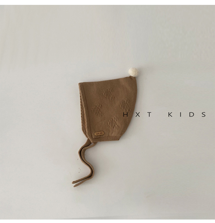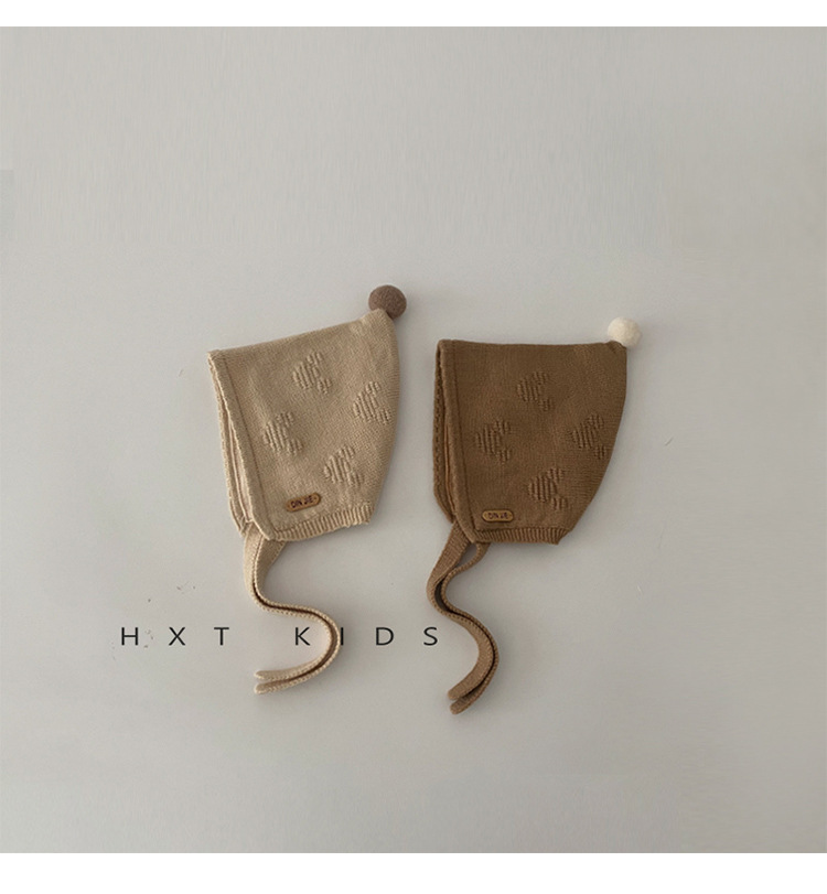 아기의 니트 모자 가을과 겨울 대비 색상 뾰족한 모자 탑 작은 공 외국 스타일의 레이스 업 귀 보호 모자 0-1 세 아기스토어 가기