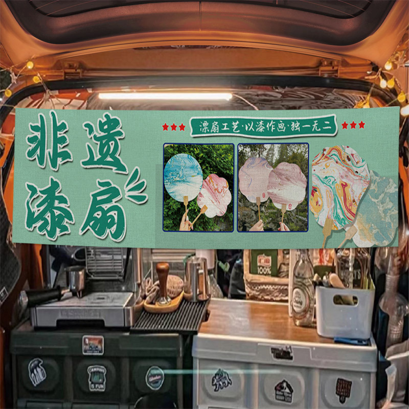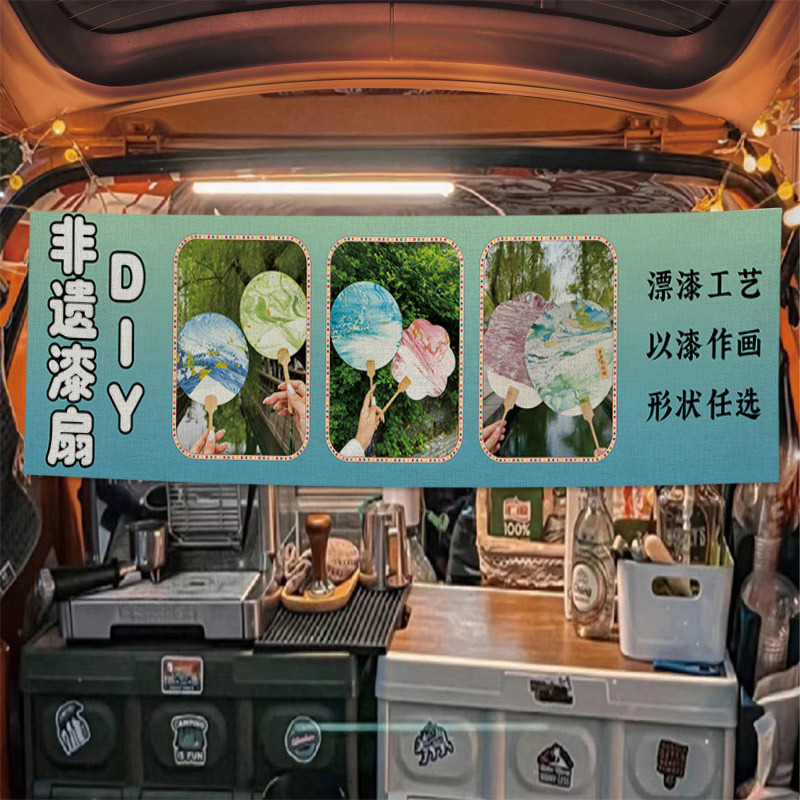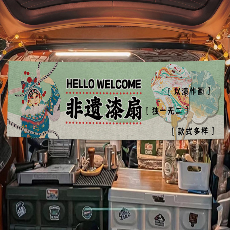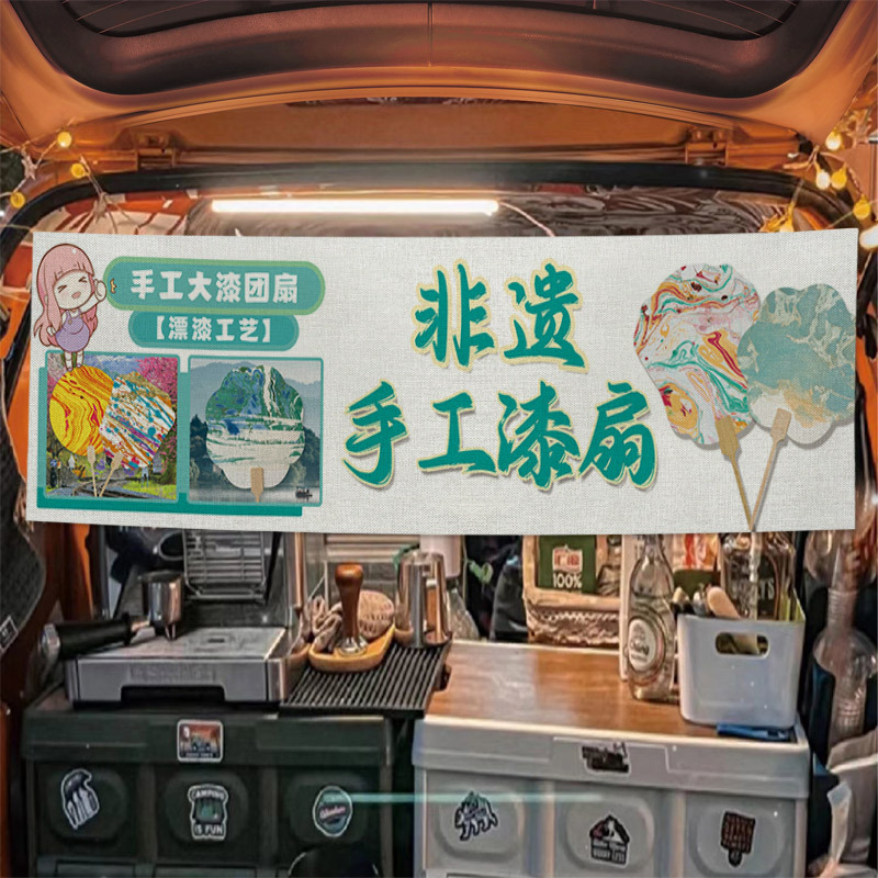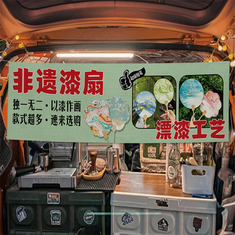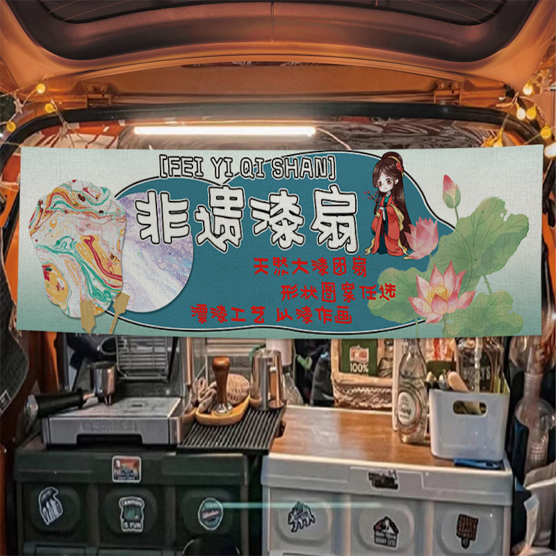 비 유산 페인트 팬 야외 광고 간판 린넨 스톨 장식 자동차 트렁크 매달린 천 마구간 시장 장식 교수형스토어 가기