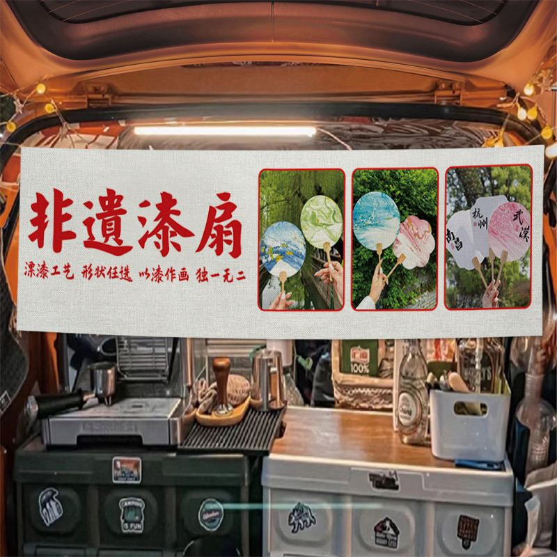 비 유산 페인트 팬 야외 광고 간판 린넨 스톨 장식 자동차 트렁크 매달린 천 마구간 시장 장식 교수형
