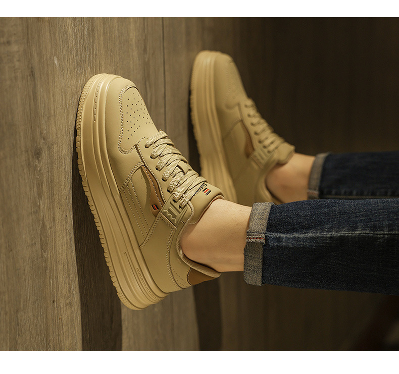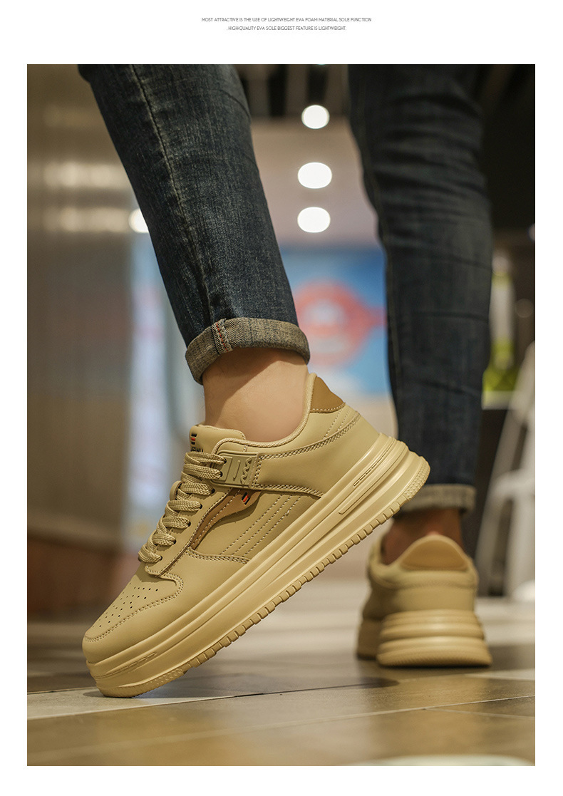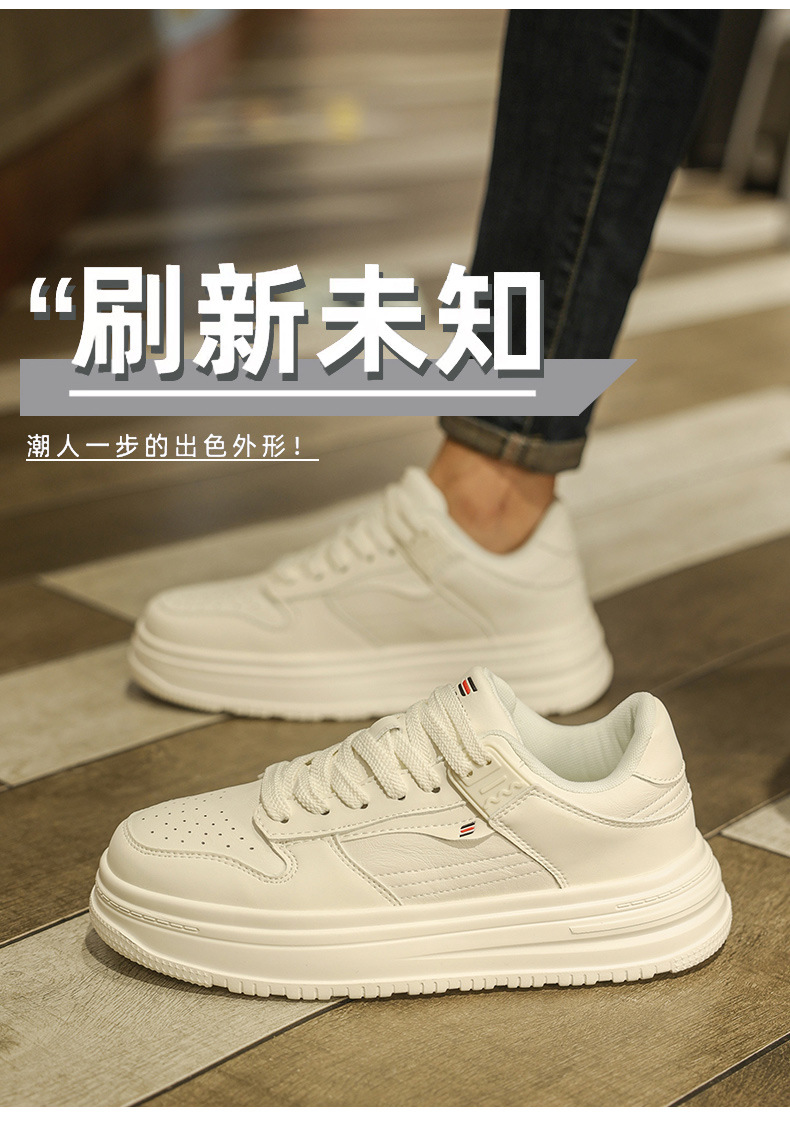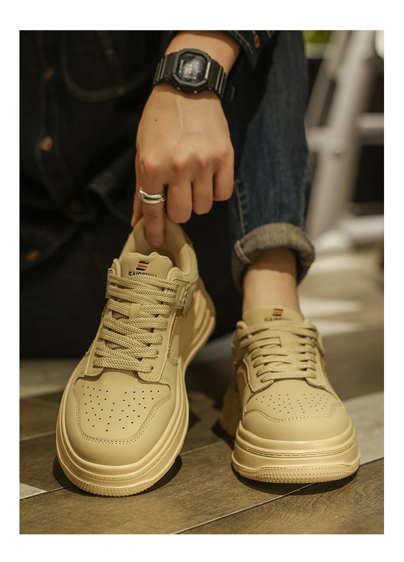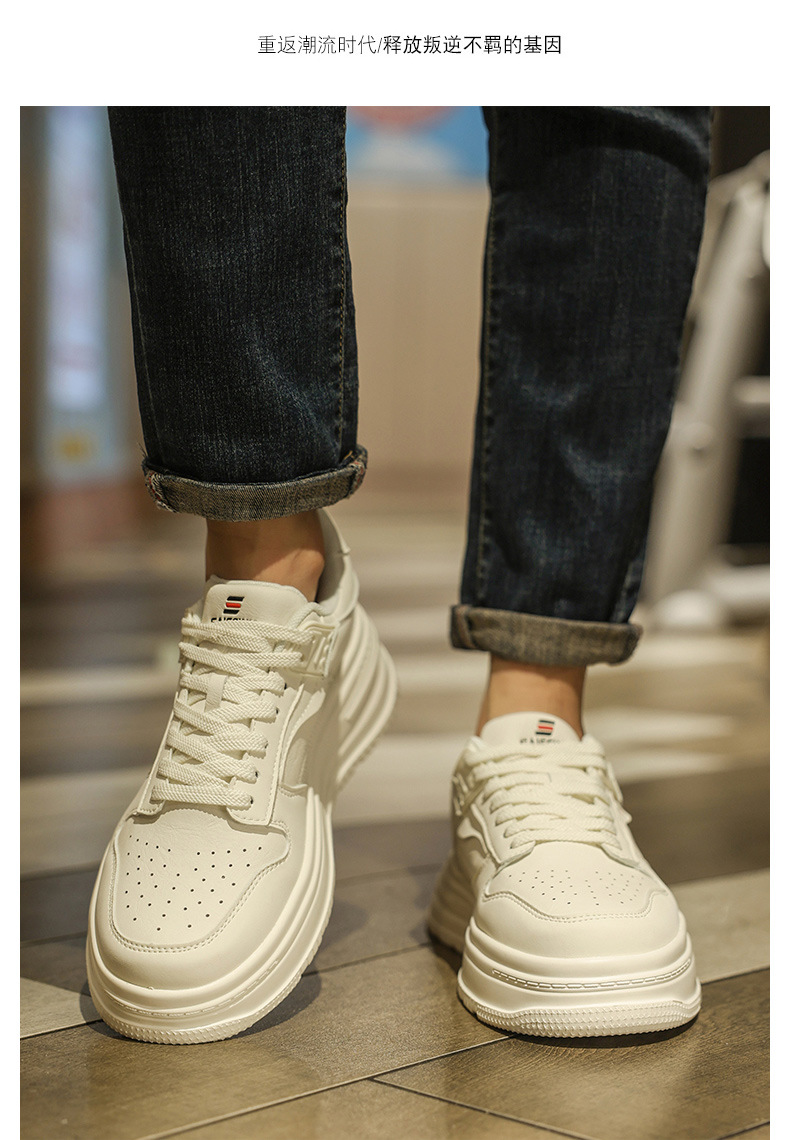 한국식 라운드 발가락 트렌디 슈즈 가을 새로운 패션 남성용 화이트 슈즈 로우 탑 편안한 올매치 두꺼운 밑창 캐주얼 스니커즈 재고스토어 가기