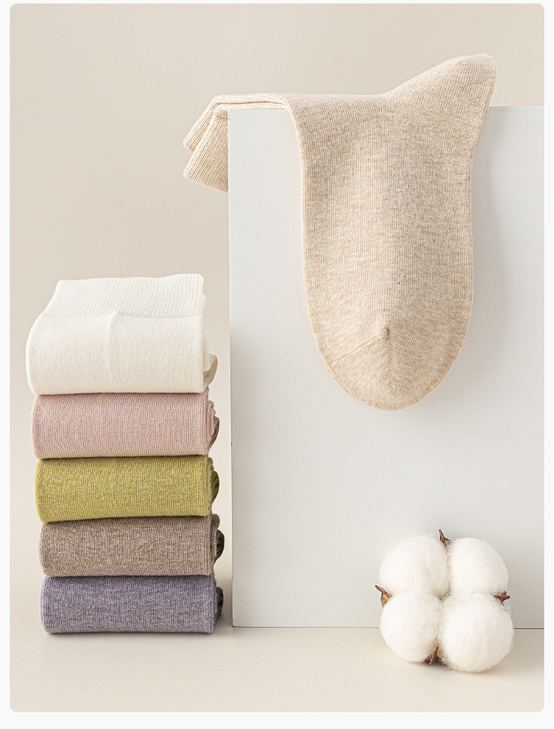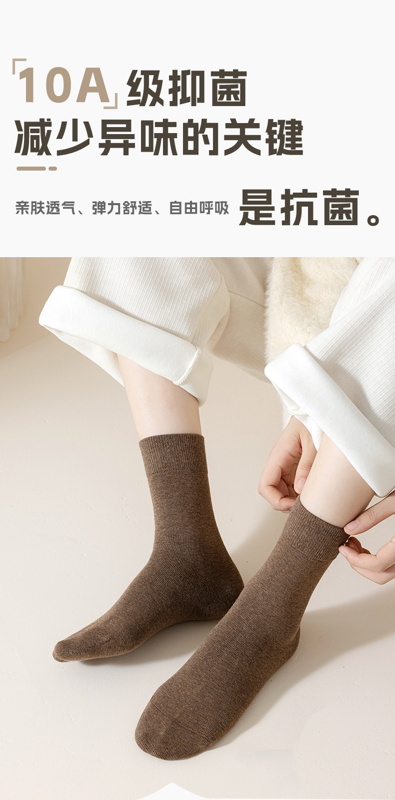 가을 겨울 신상 여성 밀크 커피 컬러 항균 방취 땀 흡수 순면 여성 양말 중목 양말 무봉제 롱 양말