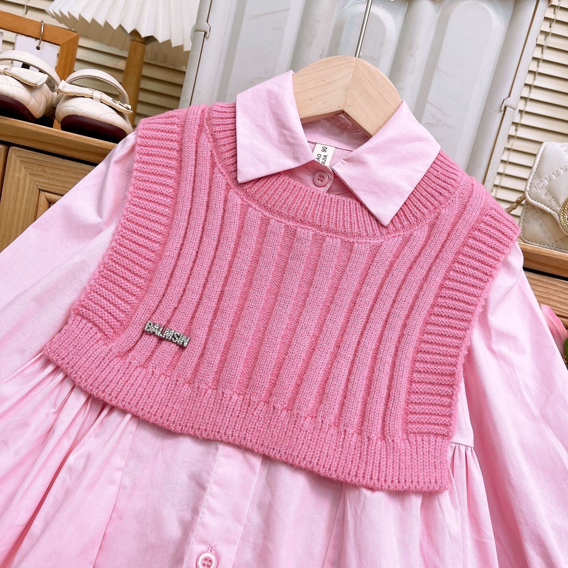 국경 아동 의류 도매 소녀 정장 가을, 겨울 25 새로운 어린이 셔츠 드레스 니트 스웨터 조끼 투피스 세트