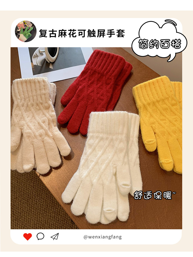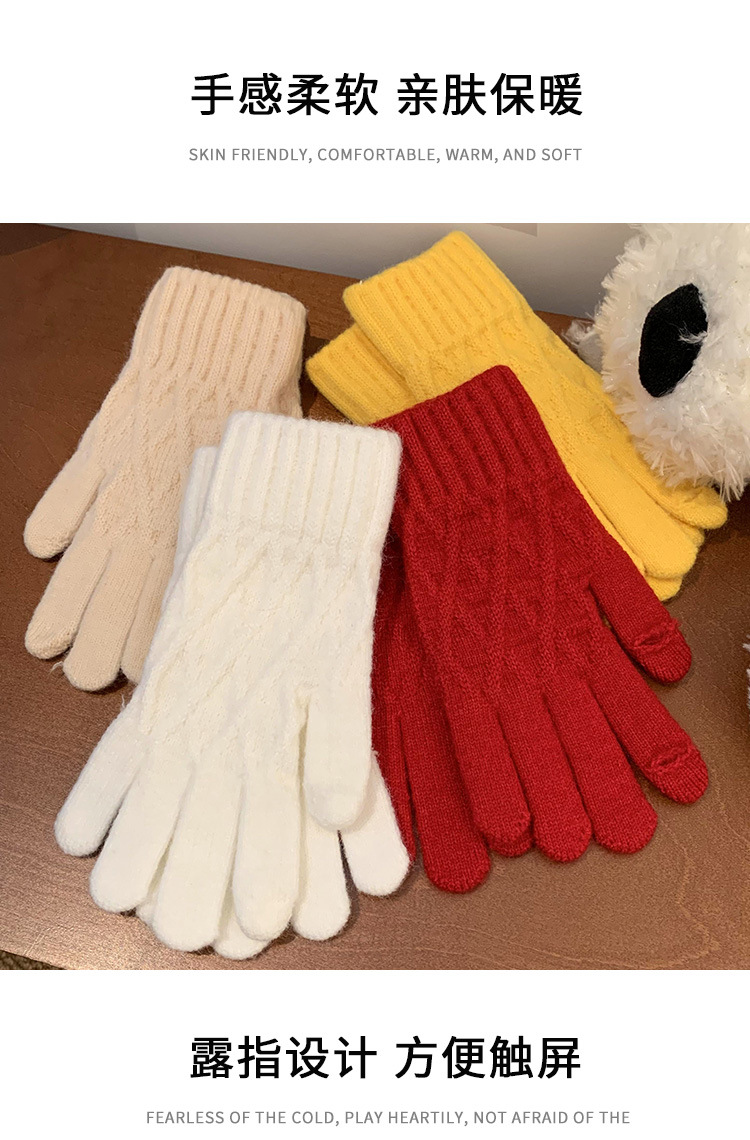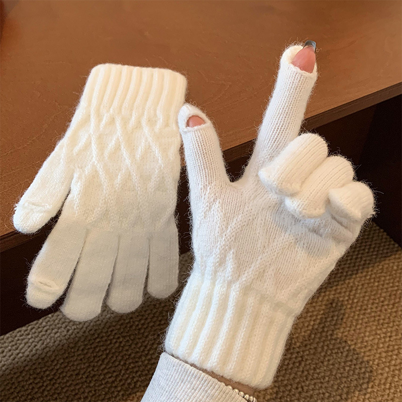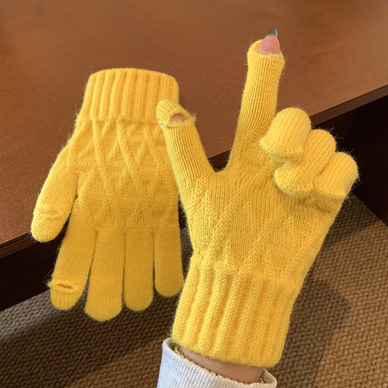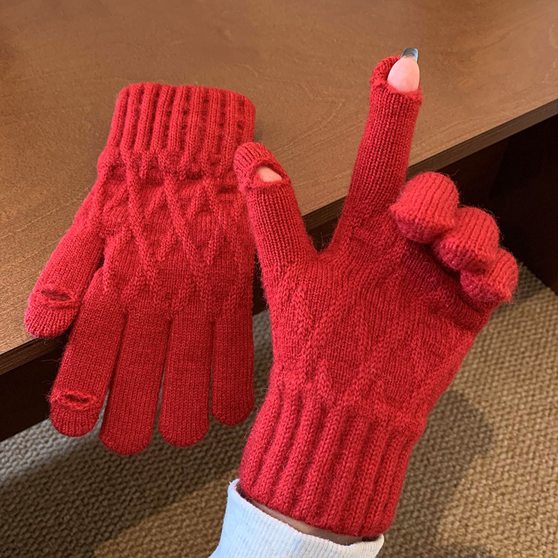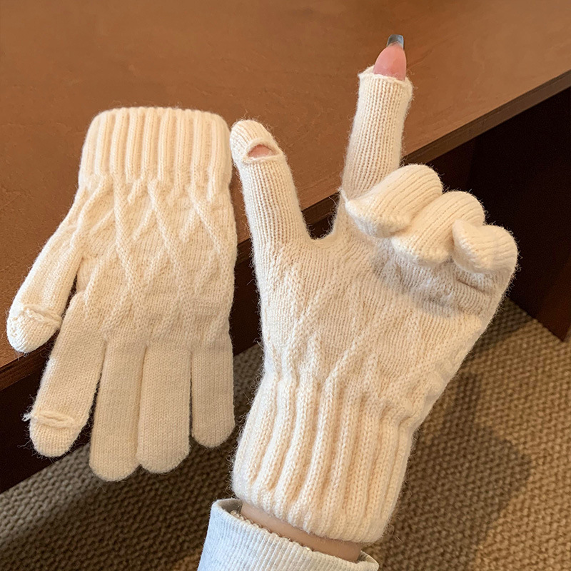 일본식 복고풍 니트 따뜻한 양모 장갑 여성용 겨울 분할 손가락 출구 손가락 터치 스크린 학생 사이클링 방풍 및 방탄