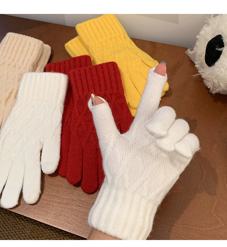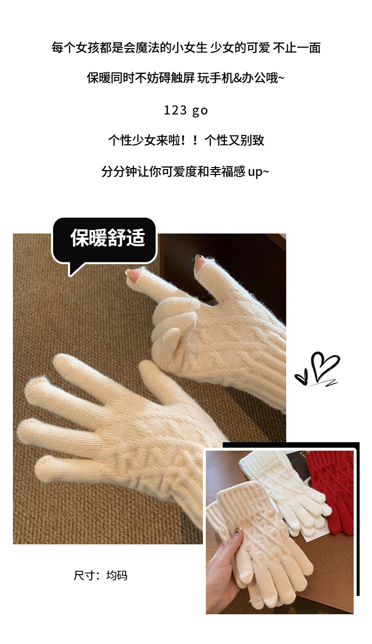 일본식 복고풍 니트 따뜻한 양모 장갑 여성용 겨울 분할 손가락 출구 손가락 터치 스크린 학생 사이클링 방풍 및 방탄스토어 가기