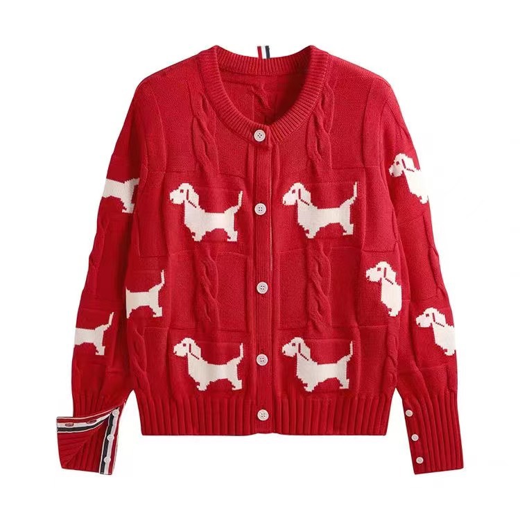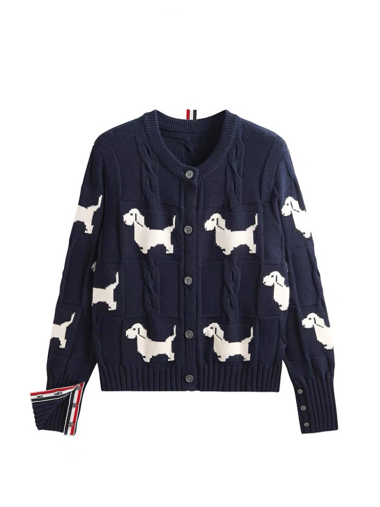 가을과 겨울 새로운 TB 고급 감각 전신 유행 대비 컬러 강아지 아카데미 바람 트위스트 크루 넥 카디건 니트 스웨터스토어 가기