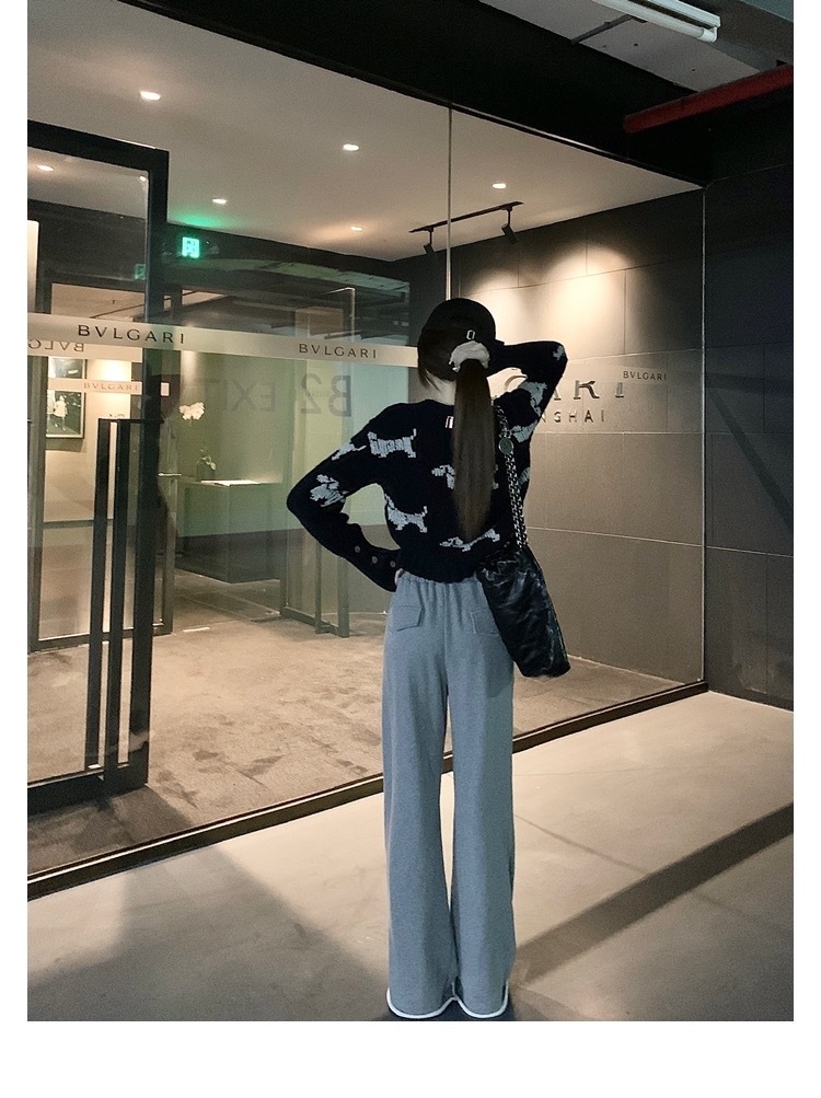 가을과 겨울 새로운 TB 고급 감각 전신 유행 대비 컬러 강아지 아카데미 바람 트위스트 크루 넥 카디건 니트 스웨터