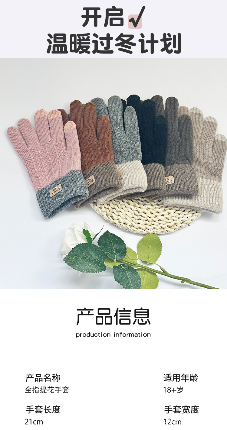 따뜻한 터치 스크린 장갑 학생 겨울 장갑 두꺼운 야외 단색 전체 손가락 니트 국경 전체 손가락 사이클링 장갑