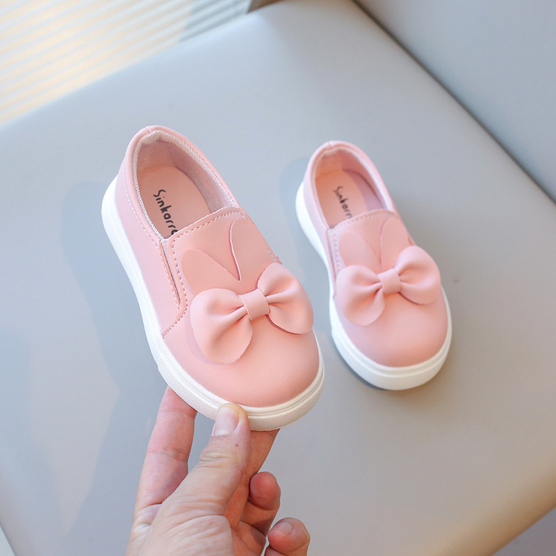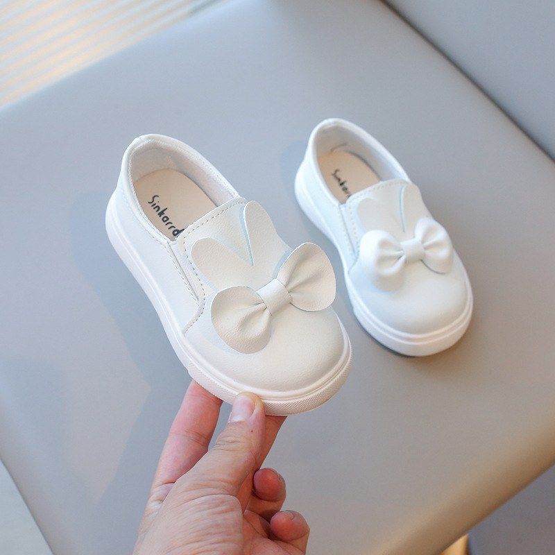 2026 봄과 가을 새로운 아기 신발 여자 아이들 리본 토끼 흰색 신발 미끄럼 방지 부드러운 밑창 어린이 운동화스토어 가기