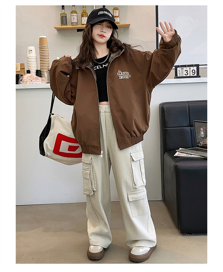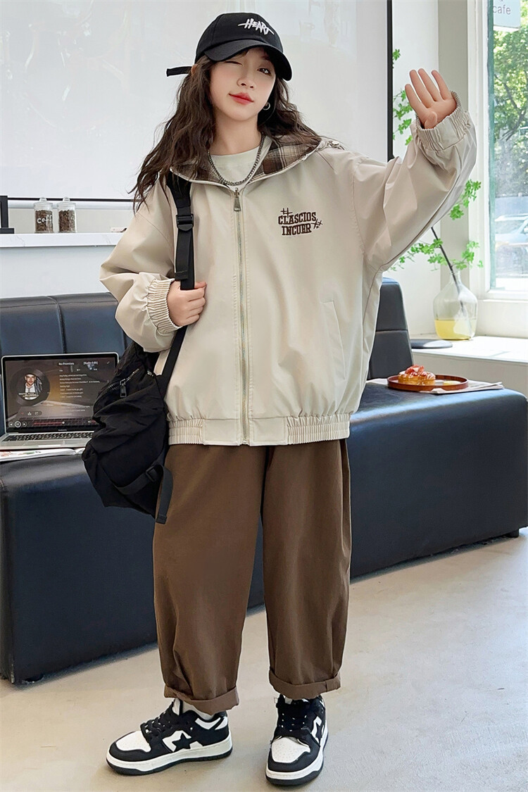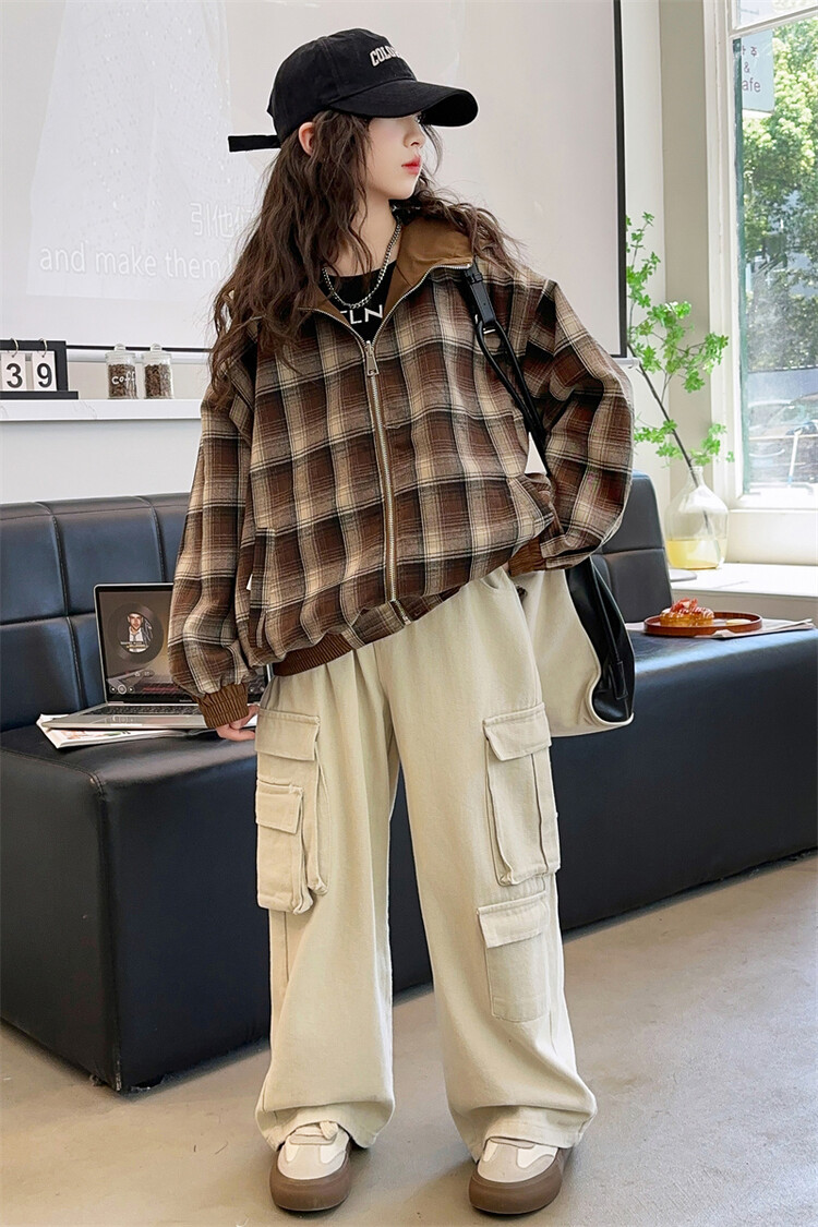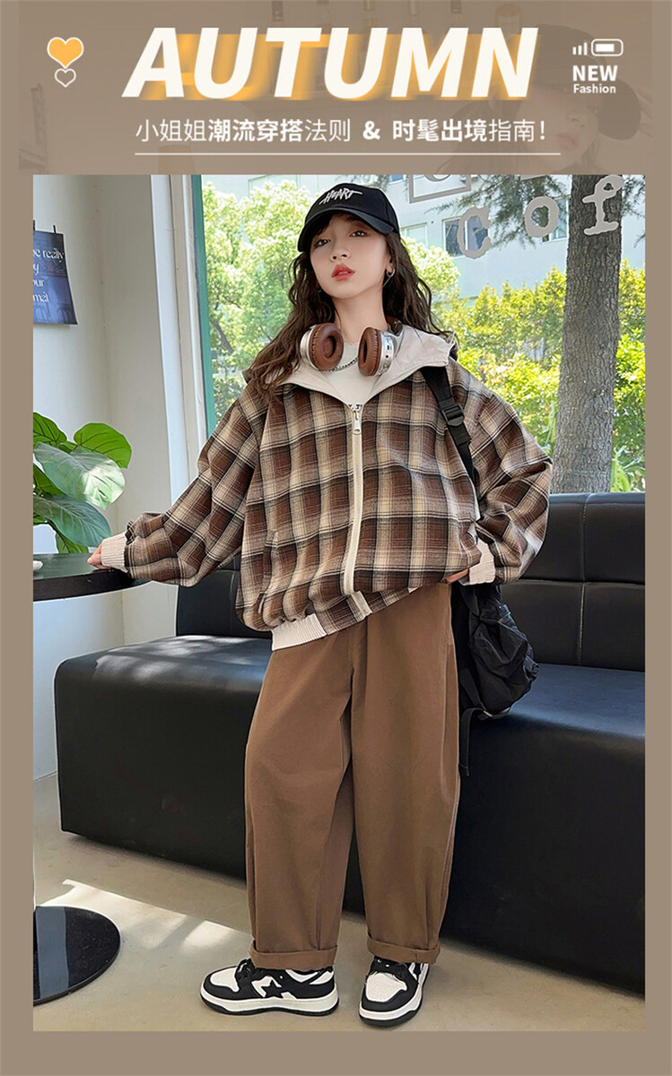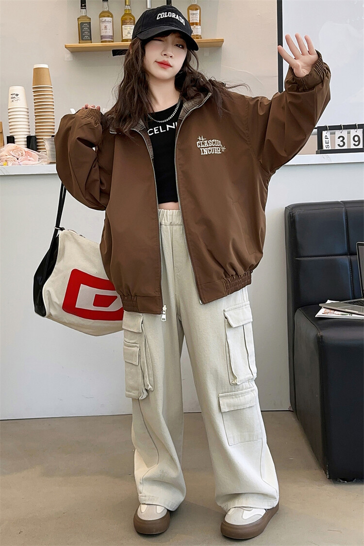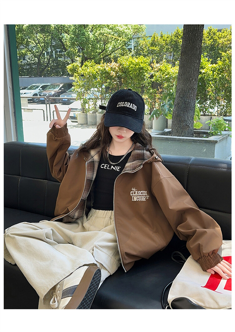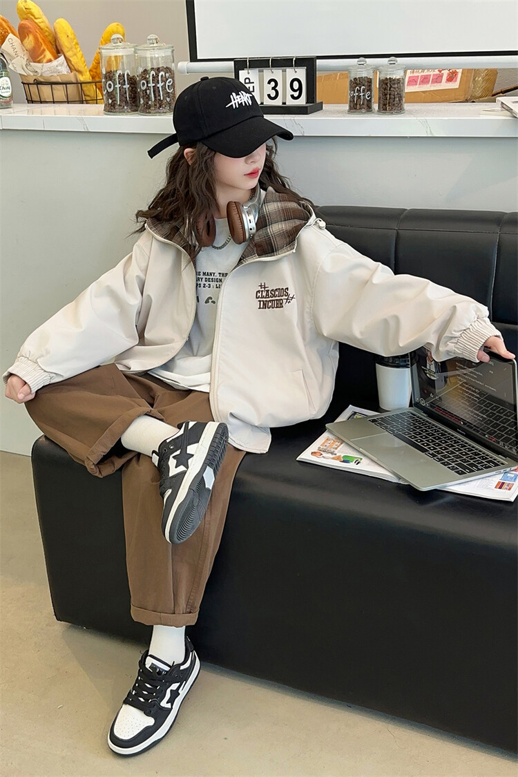 소녀의 봄과 가을 재킷 2024 새로운 소녀 양면 격자 자켓 어린이 유행 올 매치 탑 트렌디스토어 가기