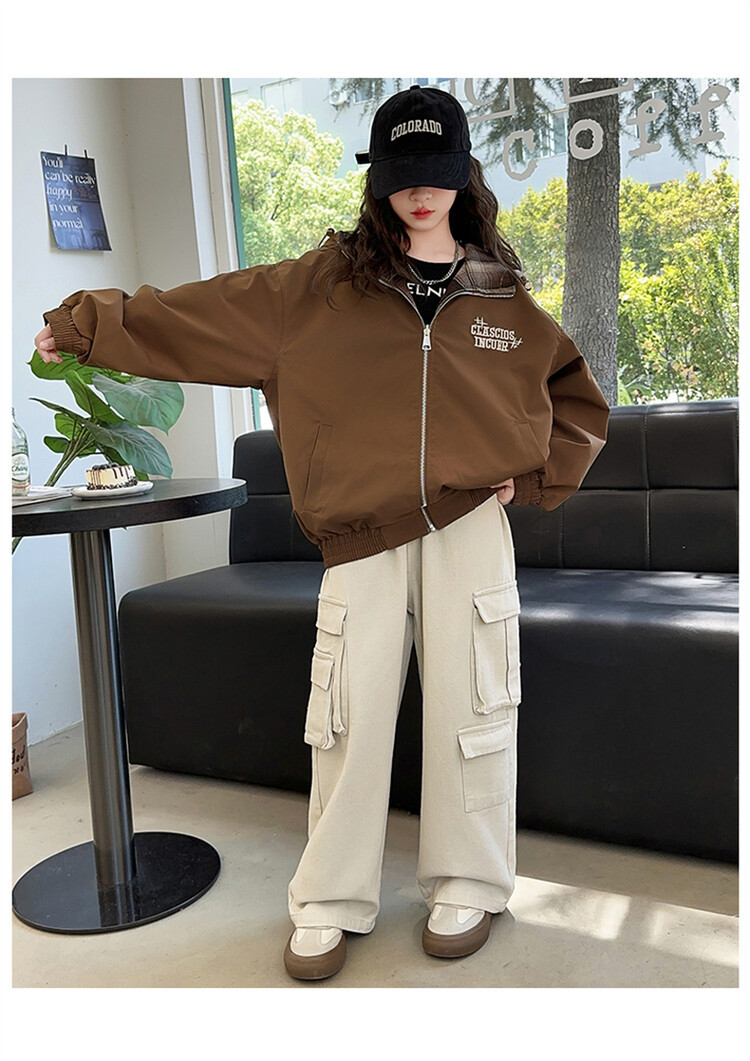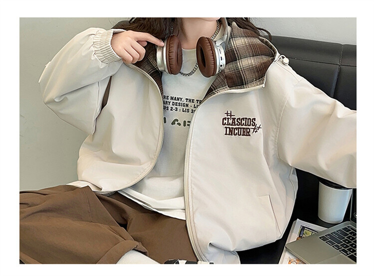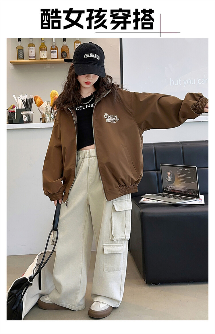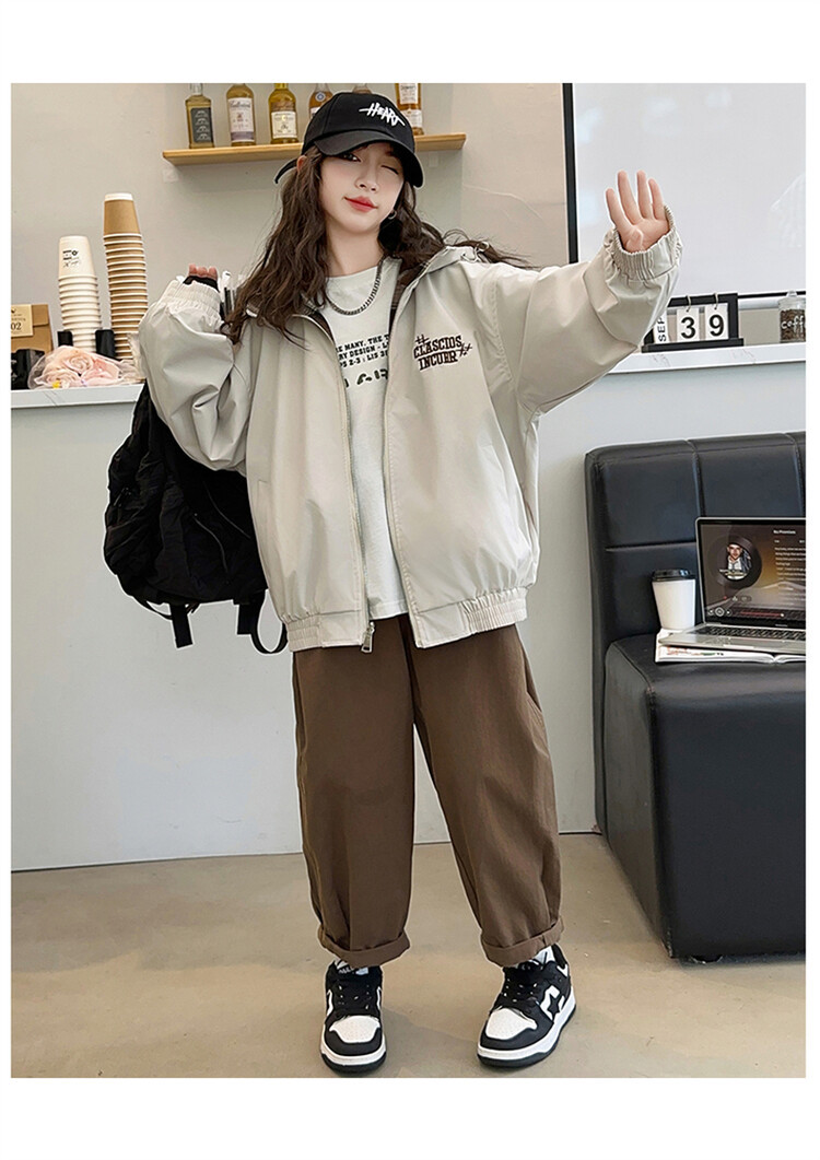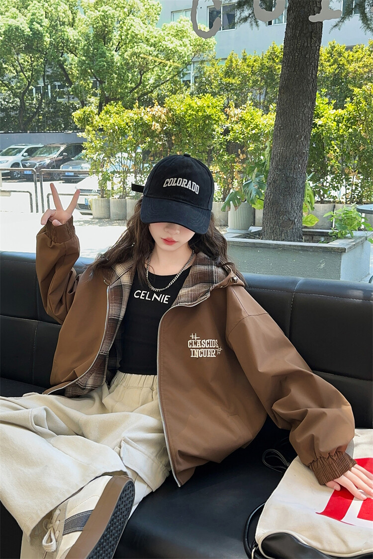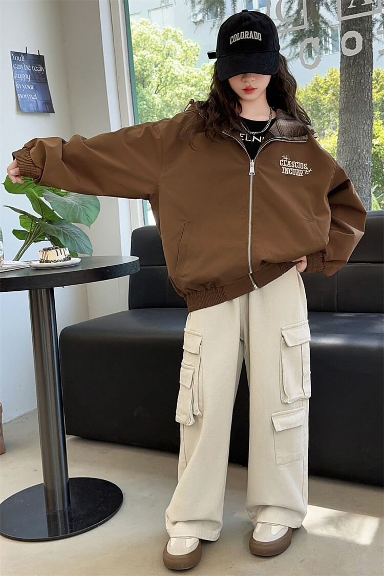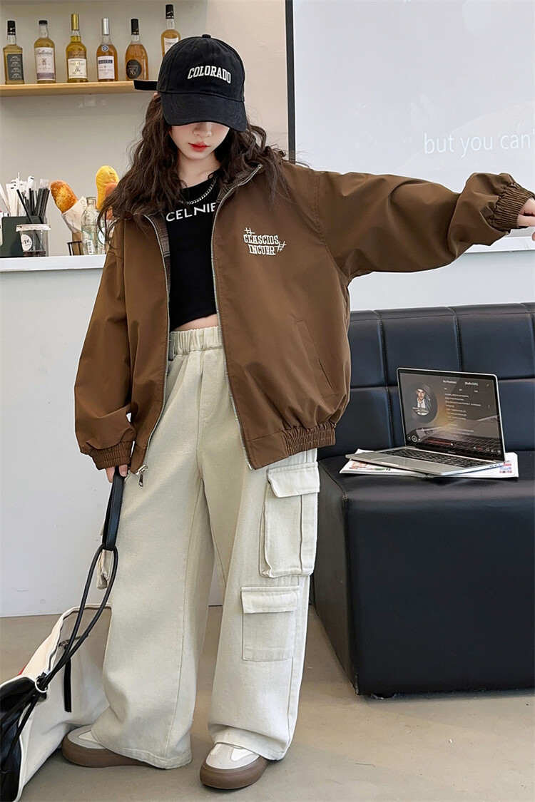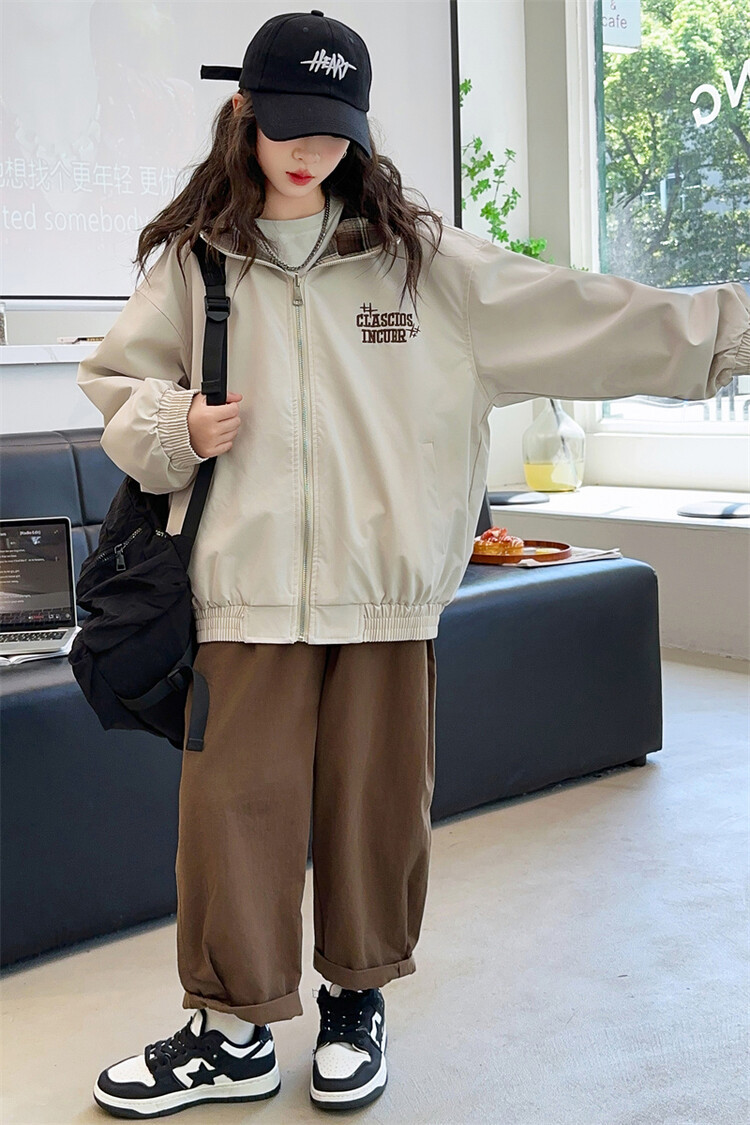 소녀의 봄과 가을 재킷 2024 새로운 소녀 양면 격자 자켓 어린이 유행 올 매치 탑 트렌디스토어 가기