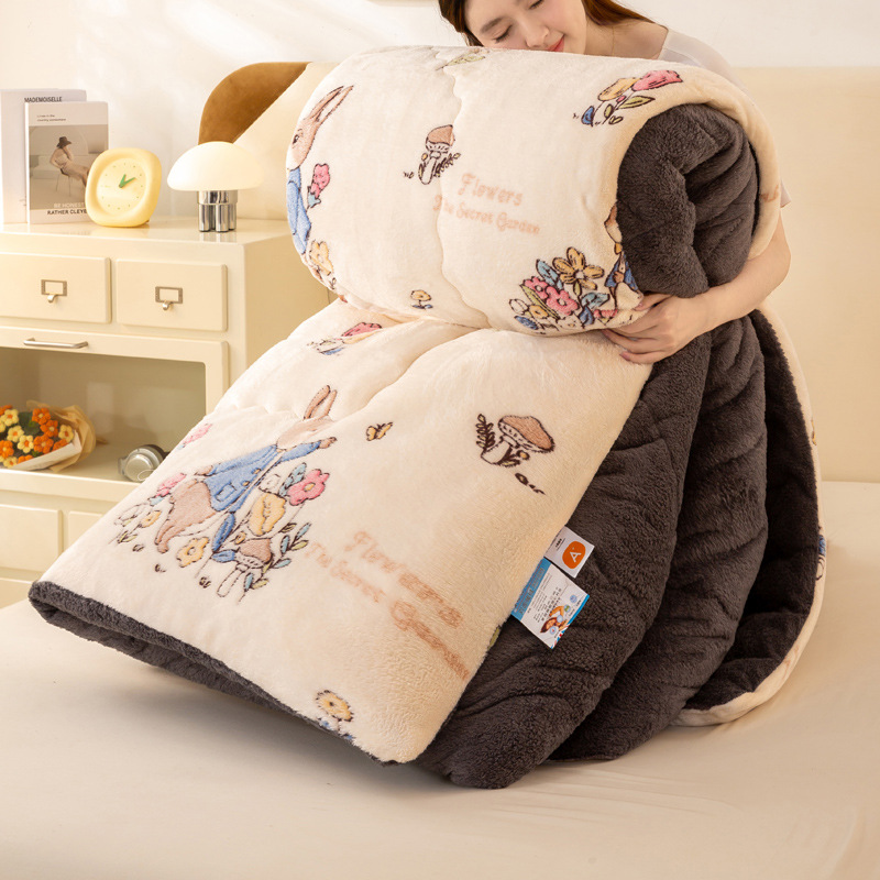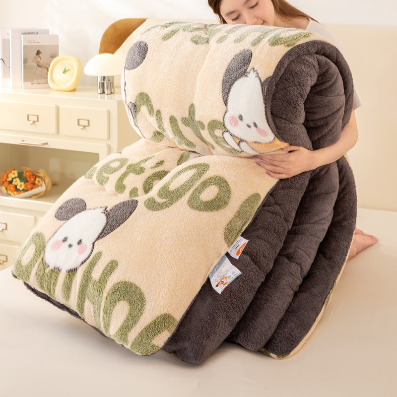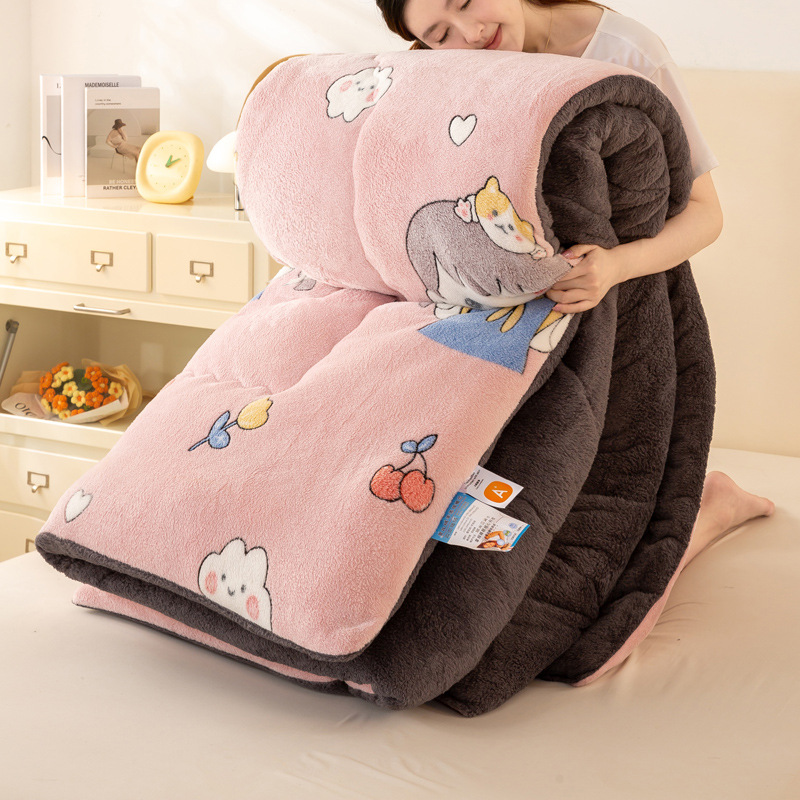 우유 벨벳 이불 양털 겨울 이불 두꺼운 산호 벨벳 봄 가을 이불 학생 기숙사 싱글 이불 이불심 도매