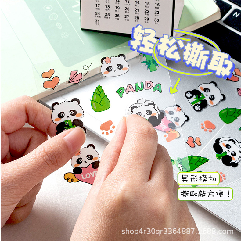 팬더 스티커 DIY goo 카드 손 계정 스티커 물 컵 휴대 전화 스티커 귀여운 애완 동물 만화 애완 동물 스티커 방수 도매