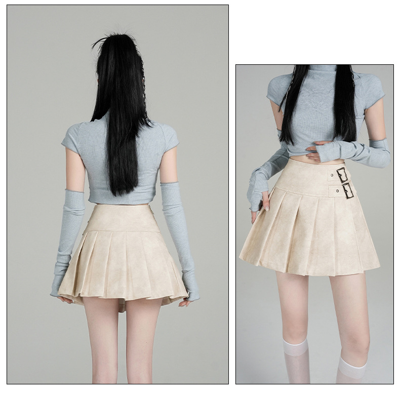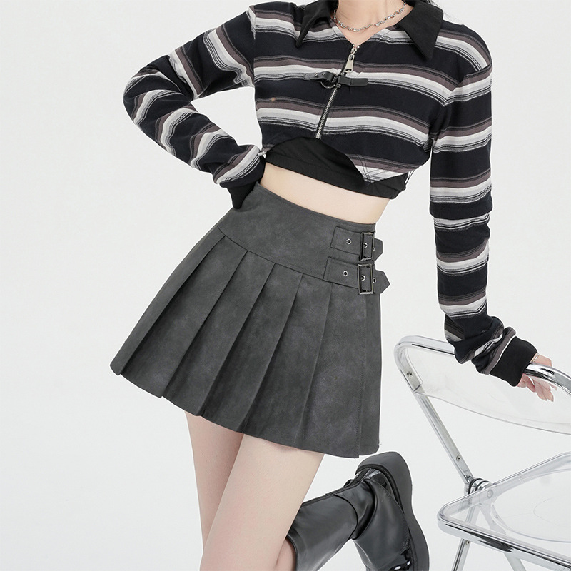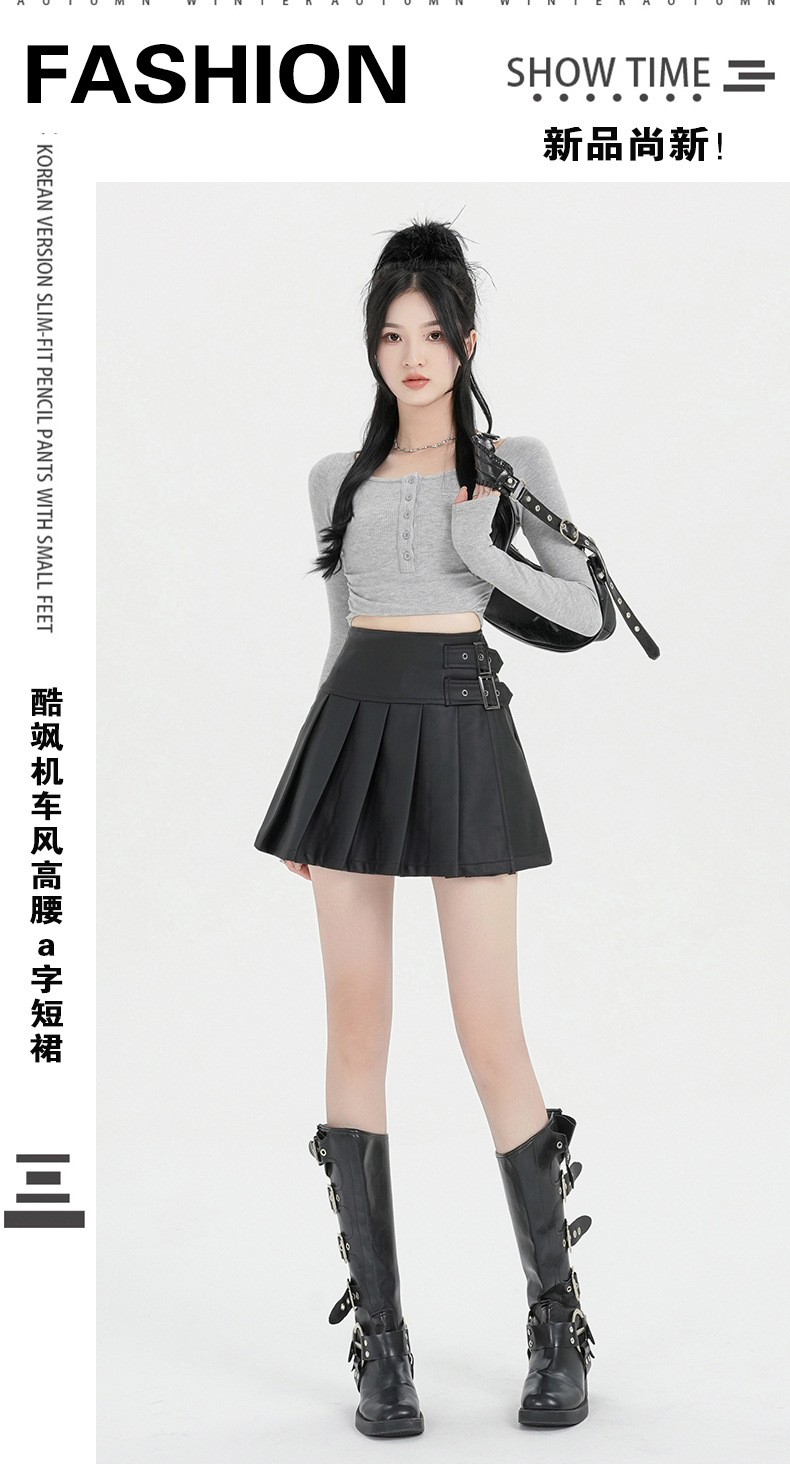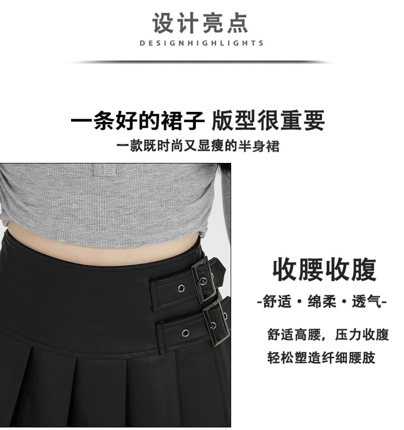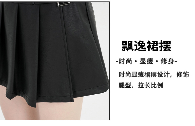 진짜 샷 재고 PU 가죽 스커트 가을과 겨울 2024 새로운 뜨거운 소녀 가죽 스커트 하이 웨이스트 슬림 단어 주름 스커트 스커트스토어 가기