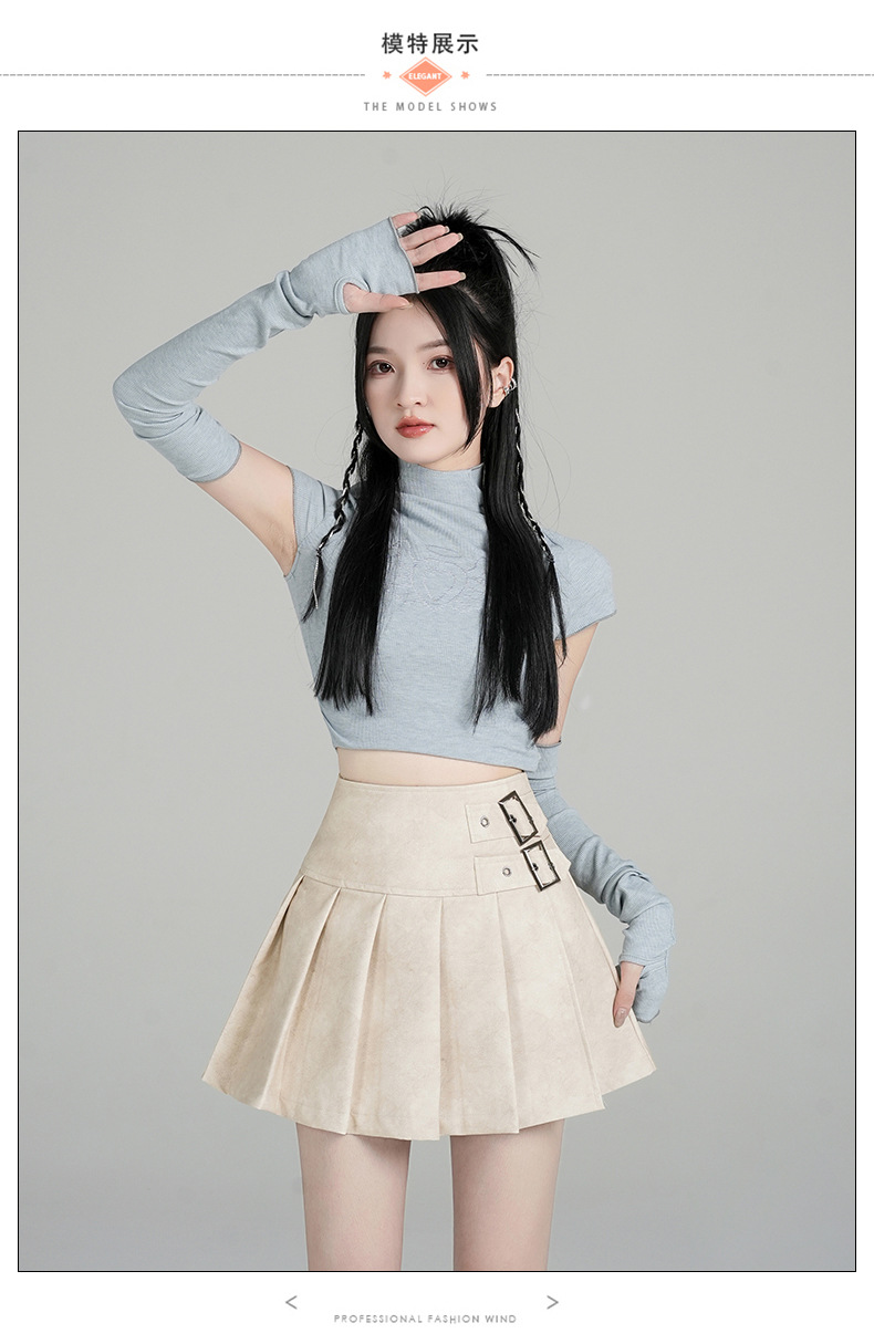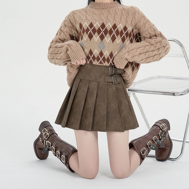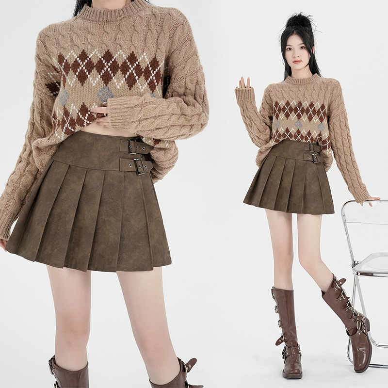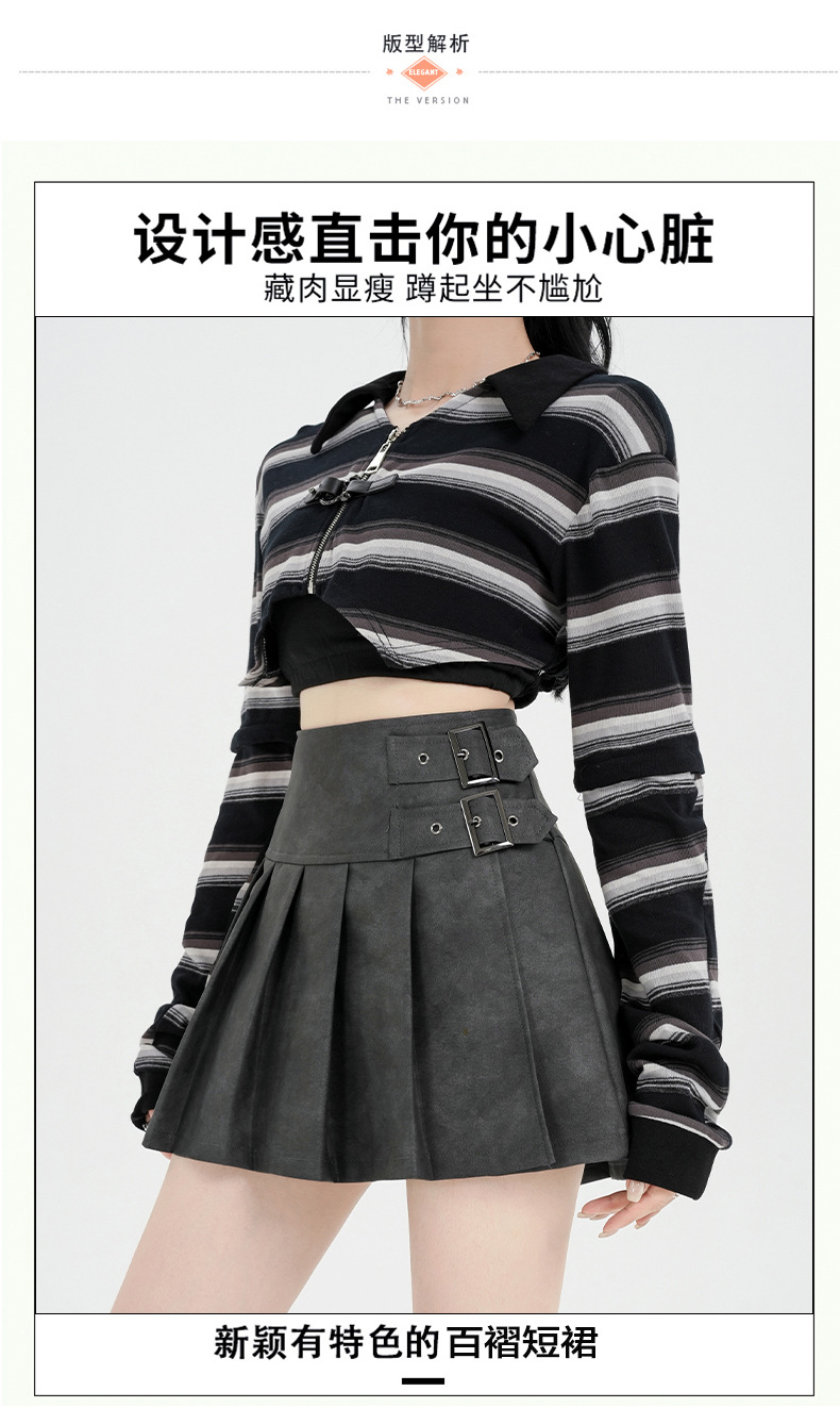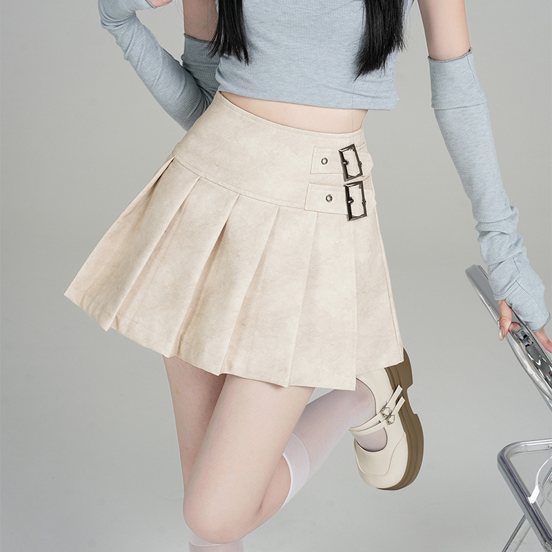 진짜 샷 재고 PU 가죽 스커트 가을과 겨울 2024 새로운 뜨거운 소녀 가죽 스커트 하이 웨이스트 슬림 단어 주름 스커트 스커트스토어 가기