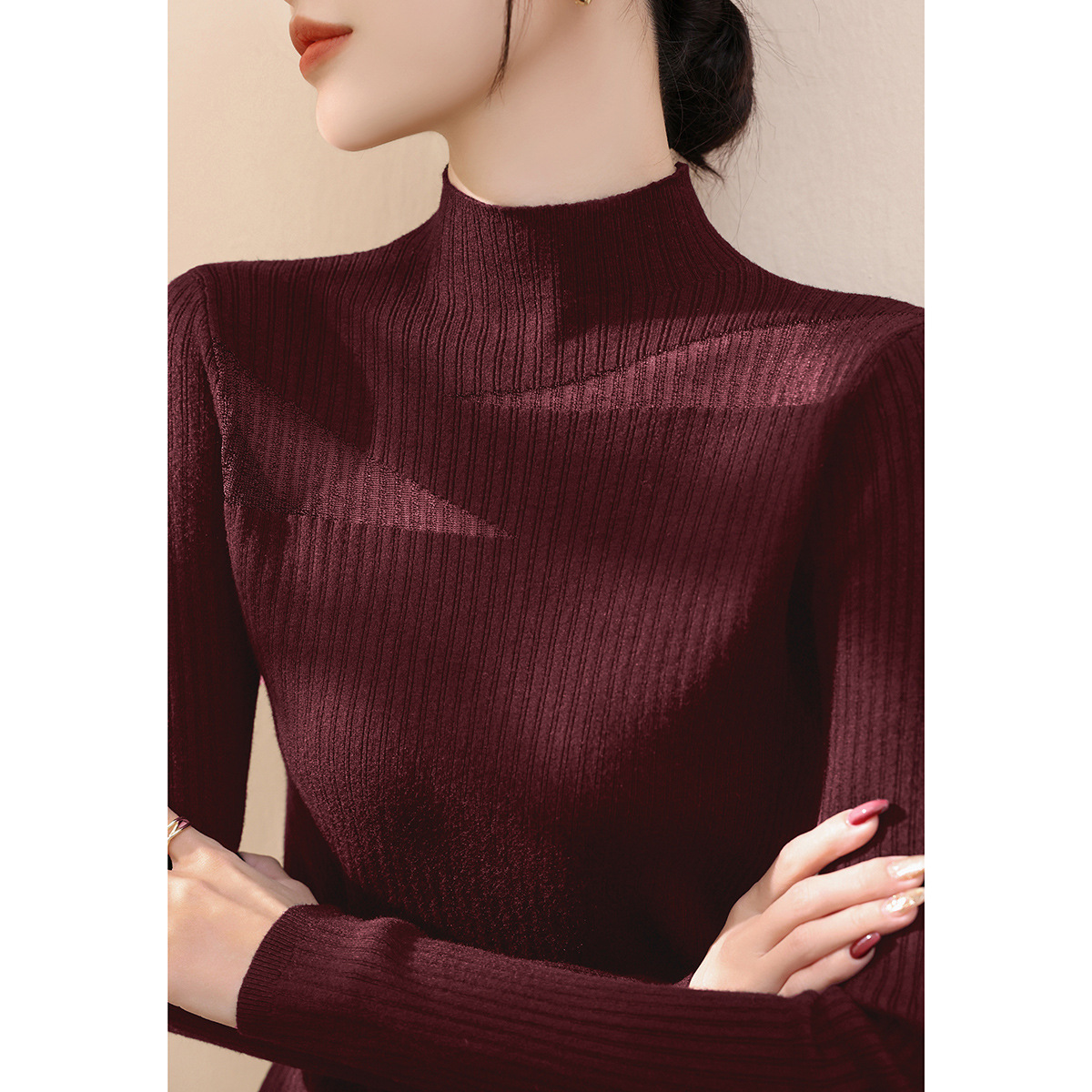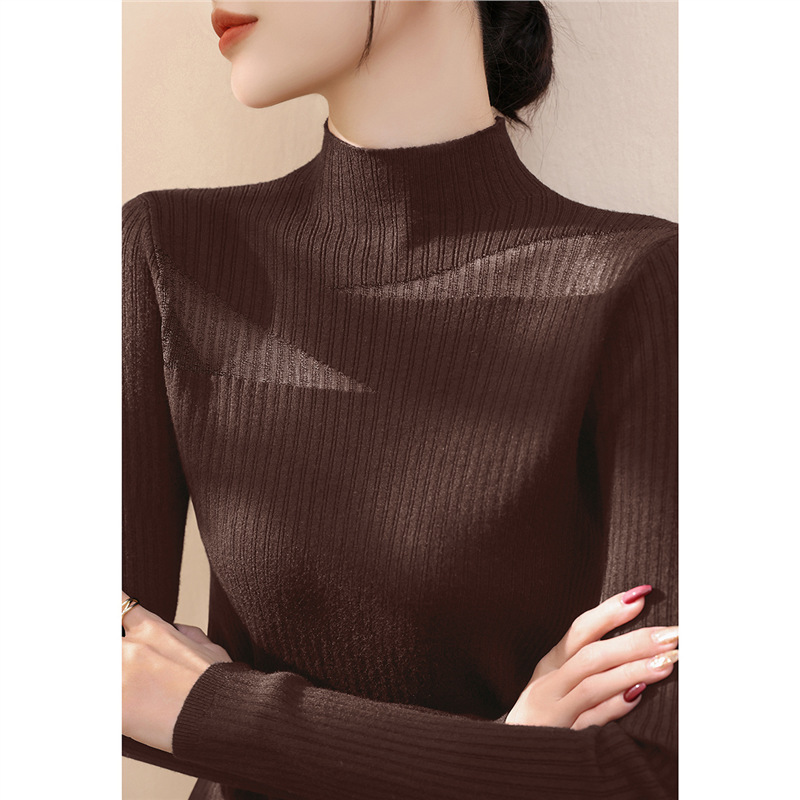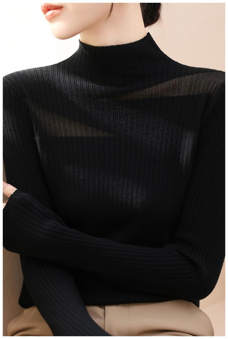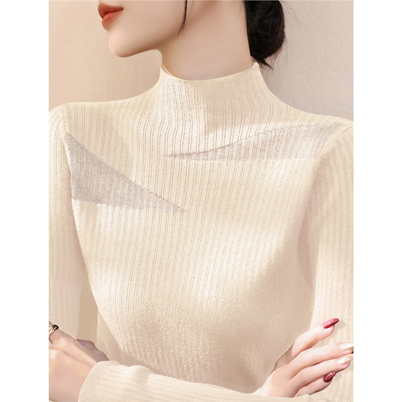 양모 봄과 가을 여성의 반 높이 칼라 레이스 메쉬 할로우 니트 2024 새로운 프랑스 스티칭베이스 탑스토어 가기
